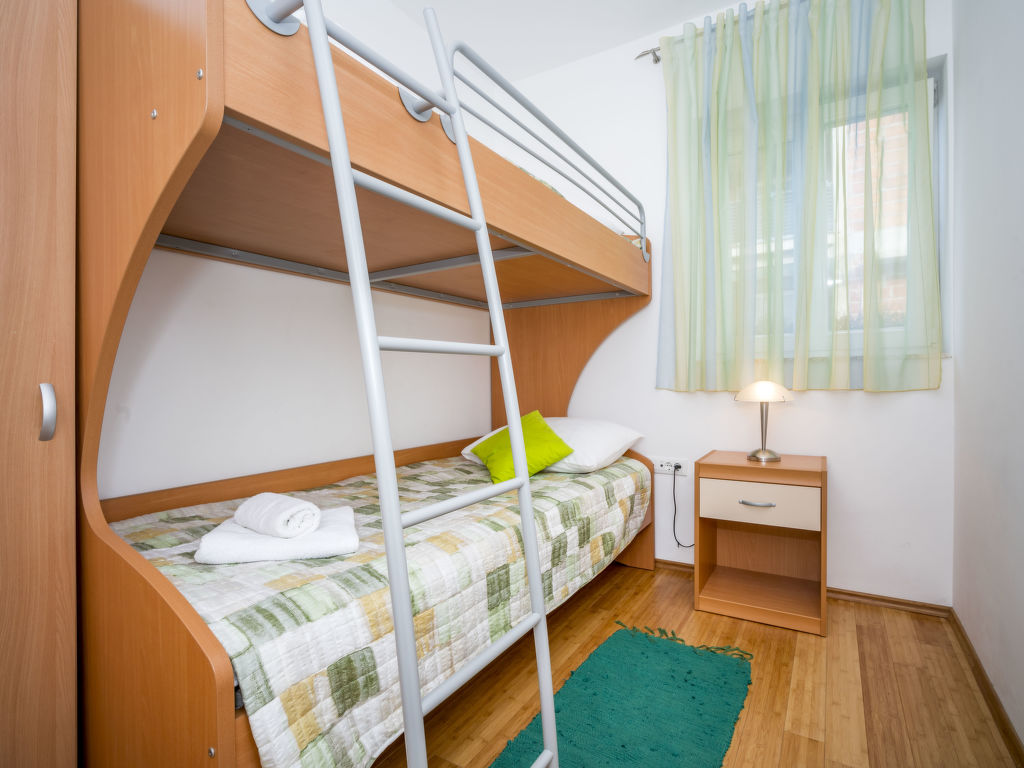 4-Zimmer-Wohnung 80 m2 im 1. Stock. Wohnzimmer mit Sat-TV (Flachbildschirm), Klimaanlage. Ausgang zum Balkon. 1 Zimmer mit 1 franz. Bett (160 cm, Länge 200 cm). Ausgang zum Balkon. 1 Zimmer mit 1 franz. Bett (140 cm, Länge 200 cm). 1 Zimmer mit 1 x 2 Etagenbetten (90 cm, Länge 200 cm). Küche (4 Glaskeramikherd Platten) mit Esstisch. Bad/WC, sep. WC. Klimaanlage (extra). Balkon 8 m2. Sicht auf das Meer. Zur Verfügung: Internet (Wireless LAN, gratis). Parkplatz (eingezäunt).
