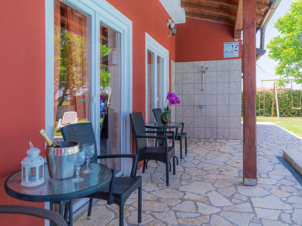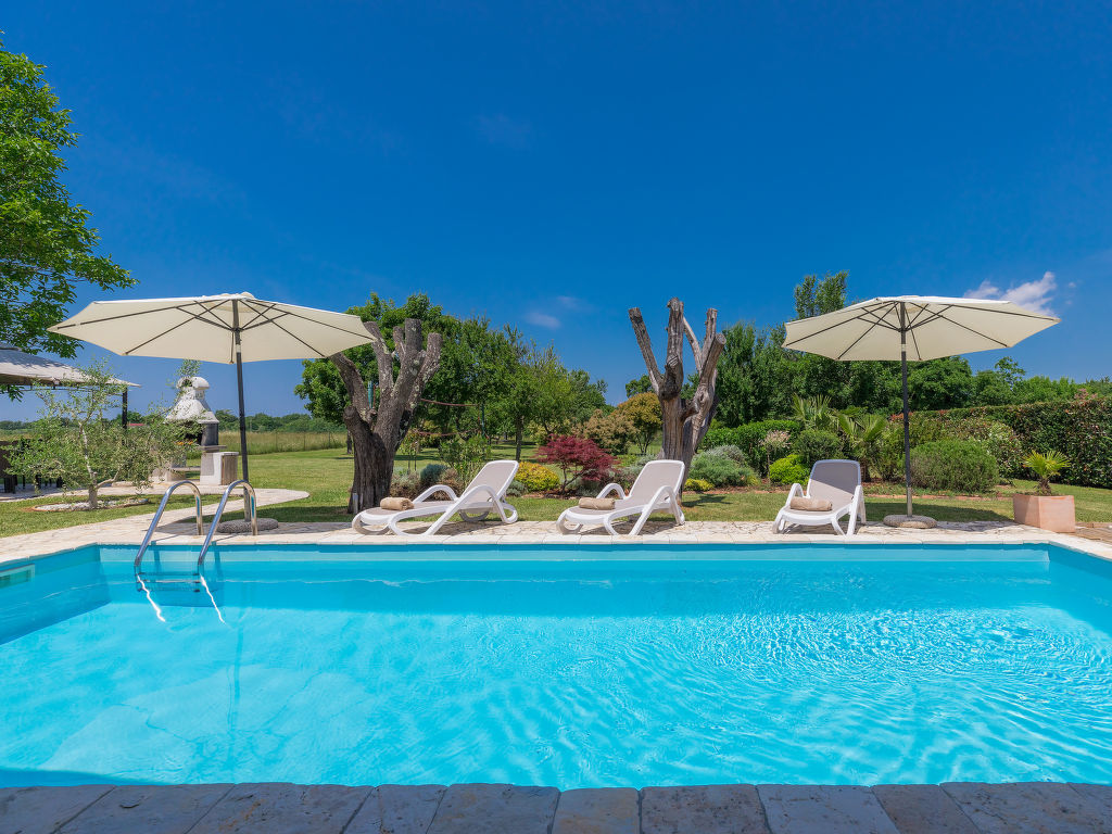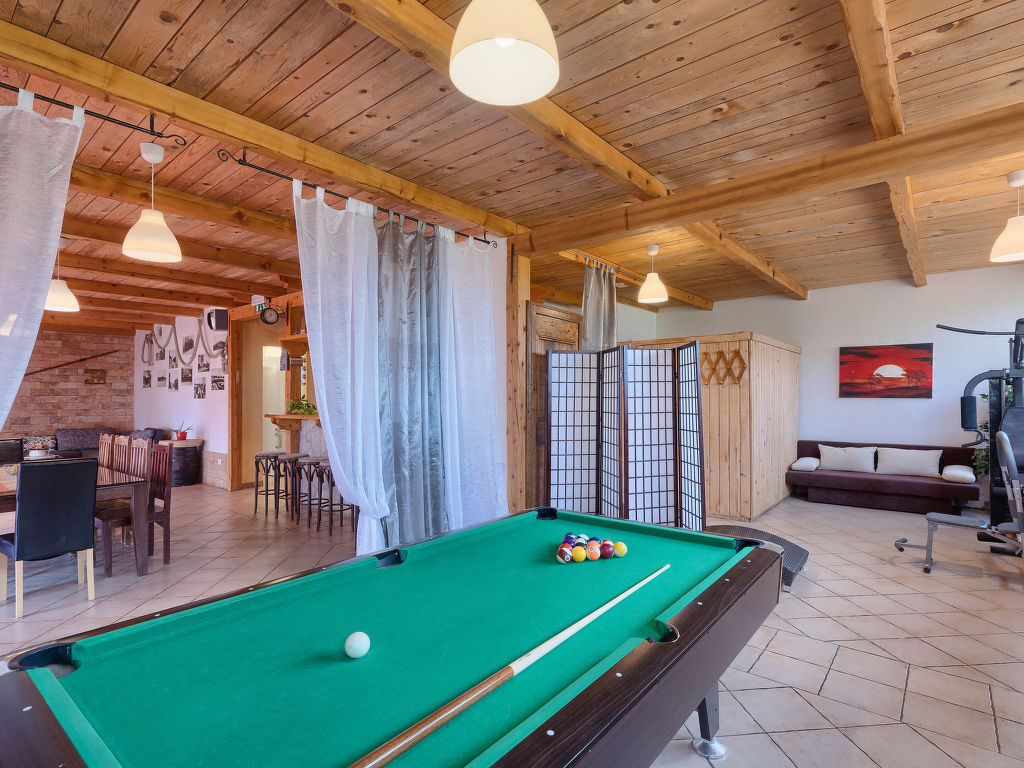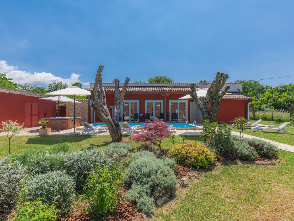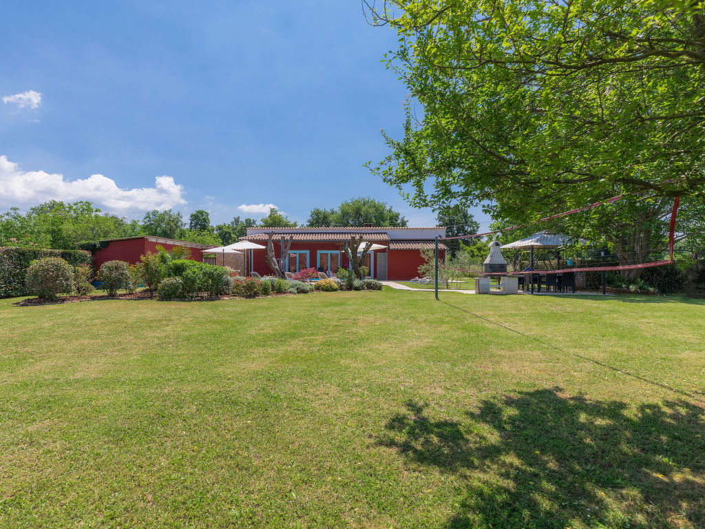 Plovanija 4 km von Buje: Einfamilienhaus "Villa Renzo". Im Weiler Simonetija, 1 km vom Zentrum von Plovanija, 10 km vom Zentrum von Umag, ruhige Lage, 5 km vom Meer, im Grünen. Zur Alleinbenutzung: Grundstück 3'000 m2 (eingezäunt), Garten mit Rasen 1'000 m2, Bäumen, Schwimmbad eckig (3 x 8 m, 140 cm tief, 11.05.-21.09.). Aussendusche, Sprudelbad, Grill, Kinderspielplatz (Schaukel). Im Hause: Internetzugang, Sauna, Billard, Waschmaschine. Parkplatz (überdacht) beim Haus auf dem Grundstück. Einkaufsgeschäft, Restaurant 500 m, Kieselstrand 5 km. Golfplatz 10 km, Tennis 7 km, Wanderwege ab Haus, Radweg 10 m. Der Besitzer akzeptiert keine Jugendgruppen.