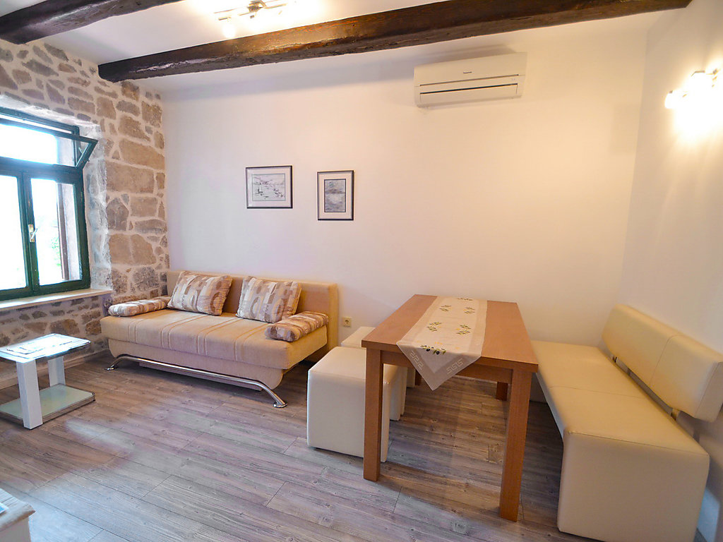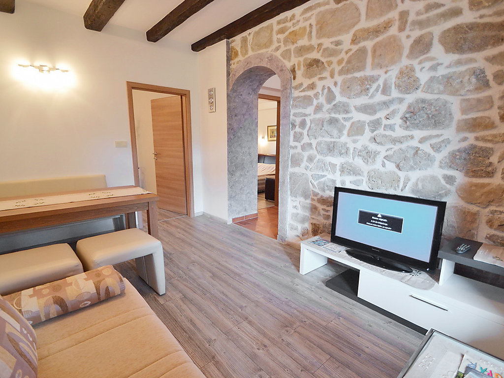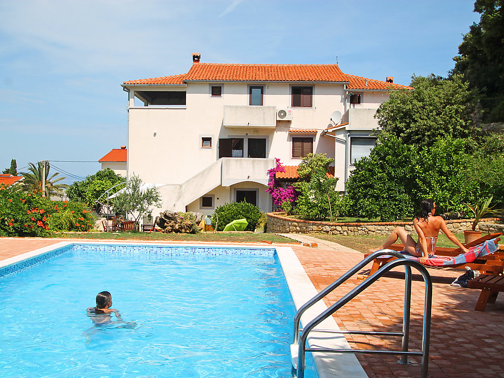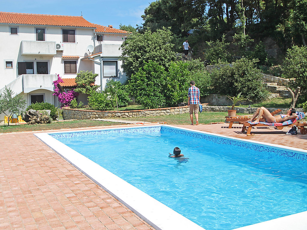 Kampor 5 km von Rab: Mehrfamilienhaus "Tennis". Sonnige, erhöhte Lage, 500 m vom Meer, 500 m vom Strand, im Grünen. Zur Mitbenutzung: Grundstück 2'000 m2, Rasen 150 m2, Schwimmbad beheizt (8 x 4 m, 140 cm tief, saisonale Verfügbarkeit: 20.Apr.-12.Okt.). Aussendusche, Tennis (1 x Sandbelag) (extra), Tischtennis, Gartenmöbel, Grill. Im Hause: Internetzugang. Parkplatz beim Haus auf dem Grundstück. Einkaufsgeschäft, Restaurant 450 m, Sandstrand 500 m. Nutzung des Tennisplatzes ist 1 Stunde pro Tag kostenlos, von 15.9. bis 15.10. unbegrenzte Nutzung. Ausrüstung und Tennislehrer sind gegen Aufpreis verfügbar. Geeignete Tennischuhe erforderlich.