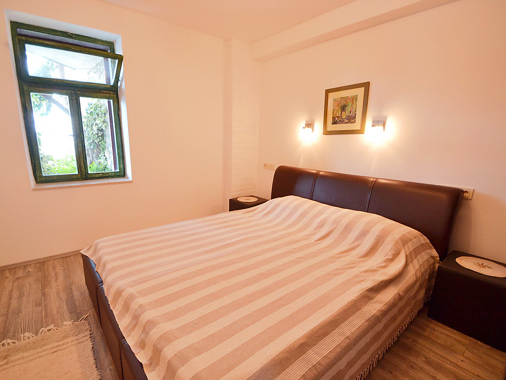 3-Zimmer-Wohnung 60 m2, im Erdgeschoss, Südostlage. Wohn-/Esszimmer mit 1 Diwanbett und Sat-TV (Flachbildschirm), Klimaanlage. 2 Zimmer, jedes Zimmer mit 1 Doppelbett (2 x 80 cm, Länge 200 cm). Offene Küche (4 Kochplatten, Backofen, Geschirrspüler, Mikrowelle). Dusche/WC. Terrasse 12 m2, überdacht. Terrassenmöbel. Zur Verfügung: Internet (Wireless LAN, gratis). Bitte beachten: eigener Eingang.