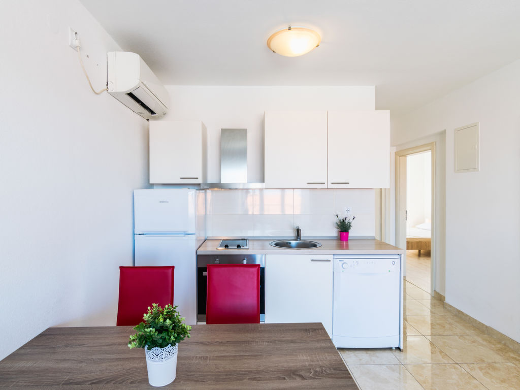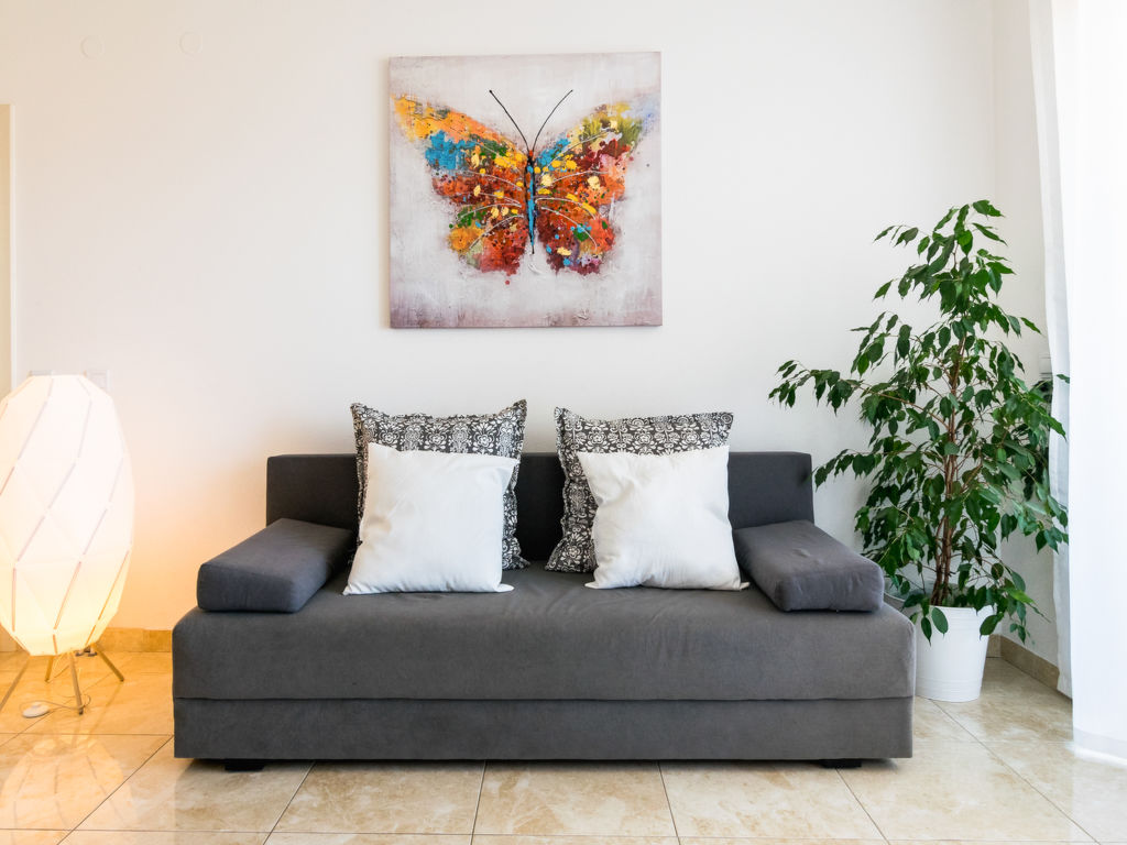 3-Zimmer-Wohnung 45 m2 im 2. Stock, Nordlage. Wohn-/Esszimmer mit 1 Diwanbett (130 cm, Länge 190 cm), Sat-TV und Klimaanlage. Ausgang zum Balkon. 1 Zimmer mit 1 Doppelbett (2 x 80 cm, Länge 200 cm), Dusche/WC. 1 Zimmer mit 1 Doppelbett (2 x 80 cm, Länge 200 cm). Offene Küche (Backofen, Geschirrspüler, 2 Glaskeramikherd Platten, Tiefkühler). Dusche/WC. Balkon 6 m2. Balkonmöbel. Zur Verfügung: Internet (Wireless LAN, gratis).
