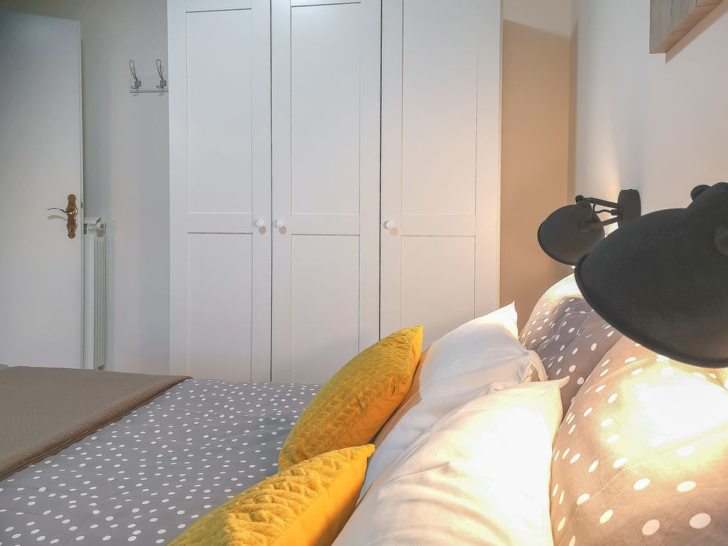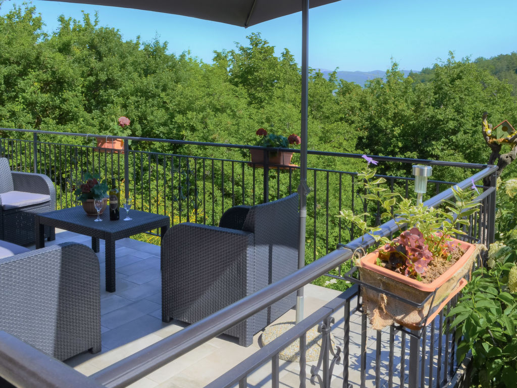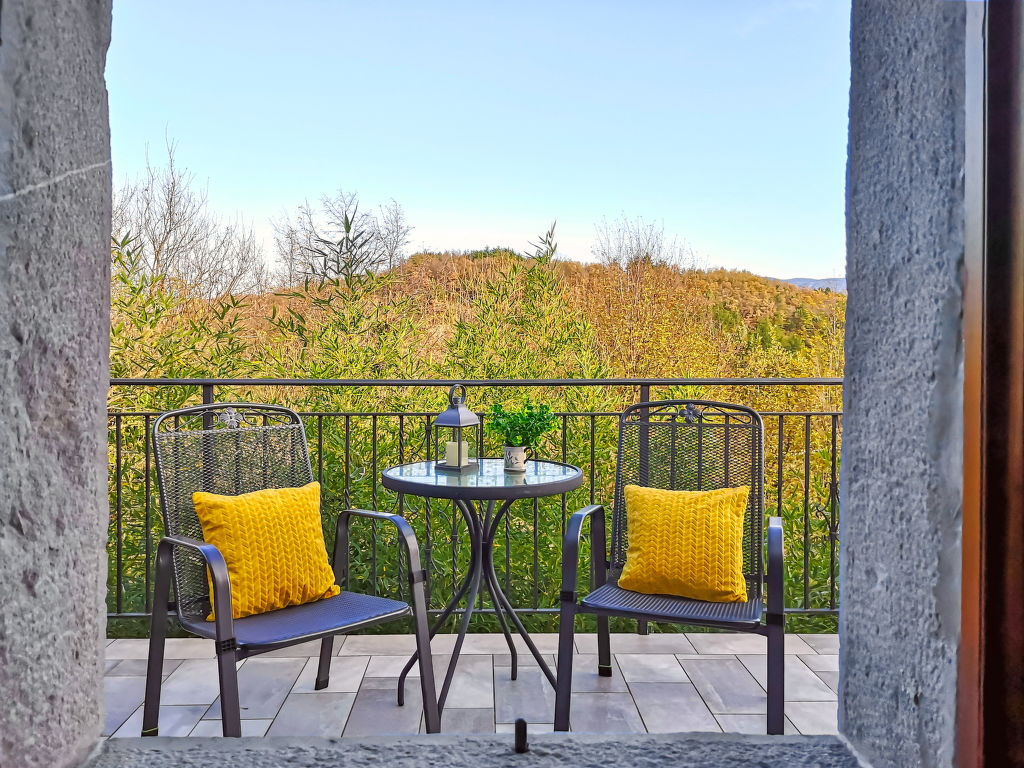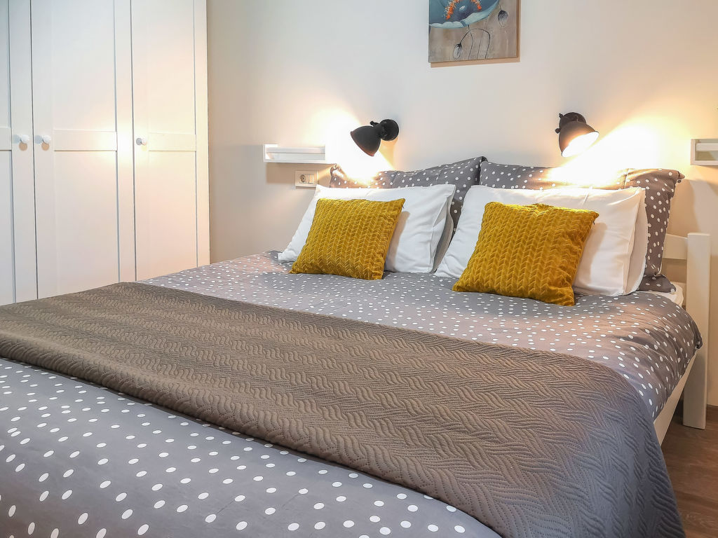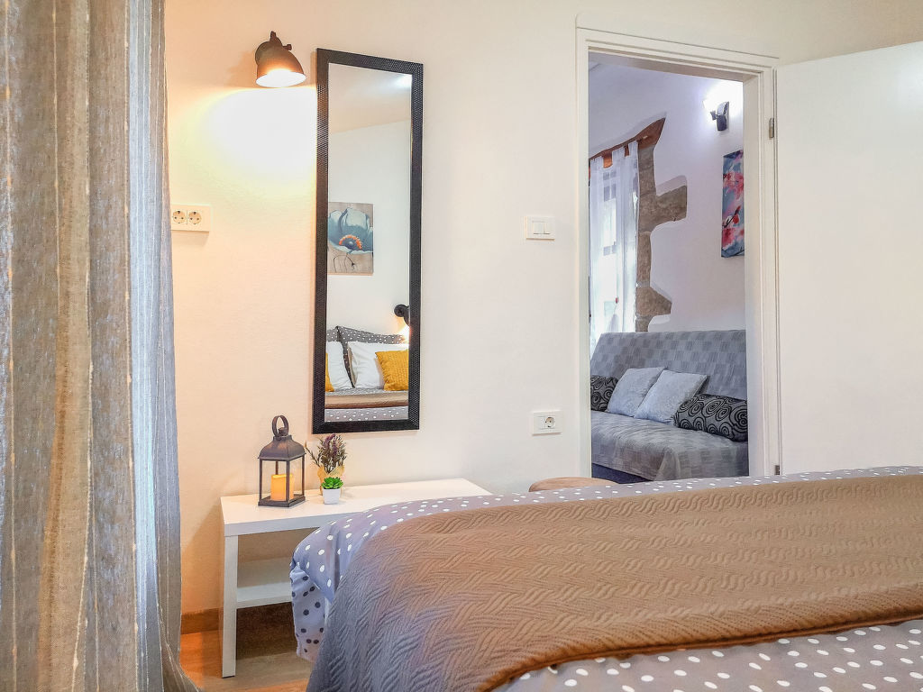 2-Zimmer-Haus 26 m2. Wohn-/Esszimmer mit Sat-TV (Flachbildschirm), Klimaanlage. Ausgang zur Terrasse. 1 Zimmer mit 1 franz. Bett (160 cm, Länge 200 cm). Offene Küche (4 Kochplatten, Backofen, elektrische Kaffeemaschine). Dusche/WC. Terrasse 20 m2. Terrassenmöbel, Gartengrill (mobil), Liegestühle. Schöne Sicht auf die Landschaft. Zur Verfügung: Haartrockner. Internet (Wireless LAN, gratis). 1 Haustier/Hund erlaubt.