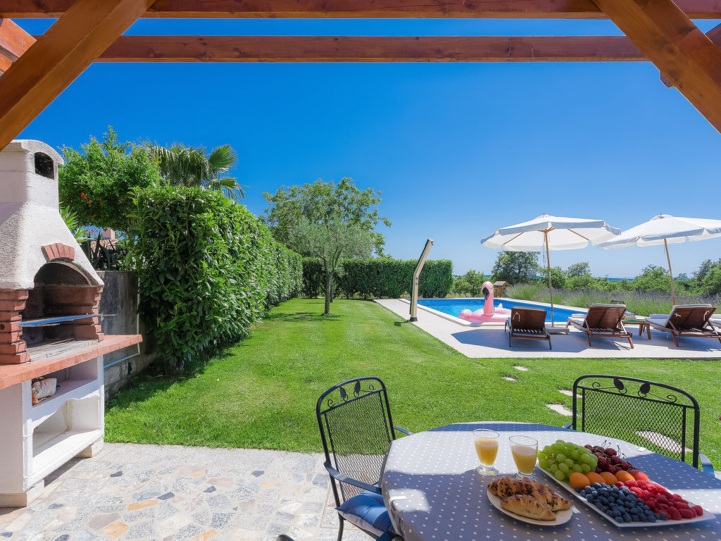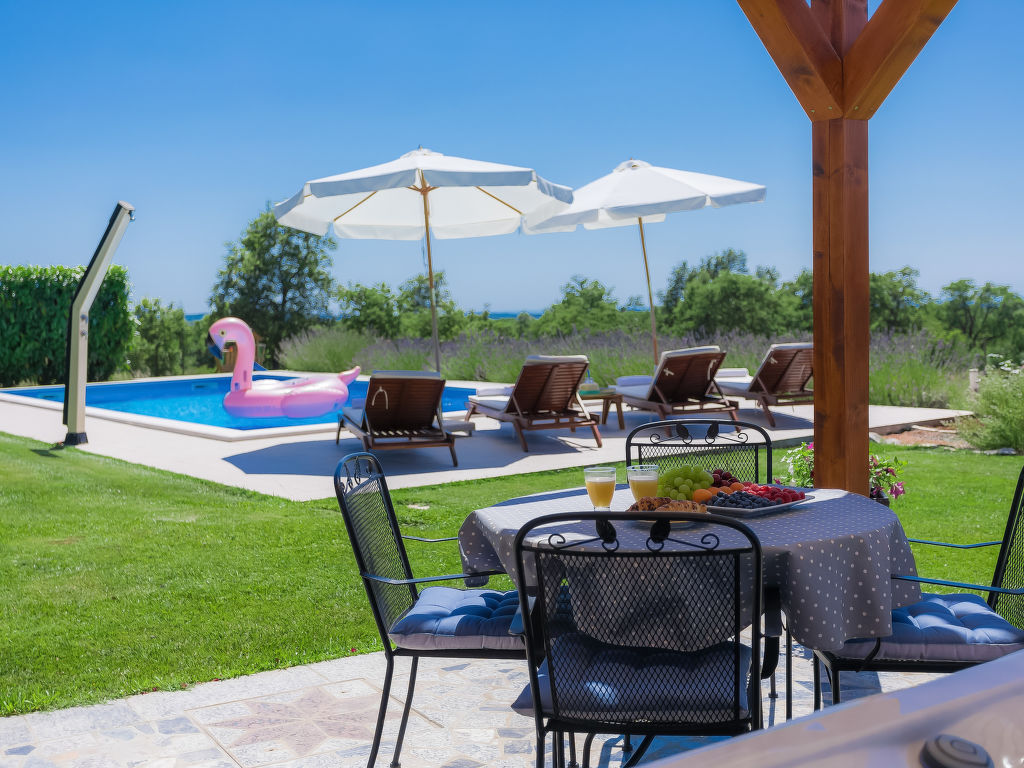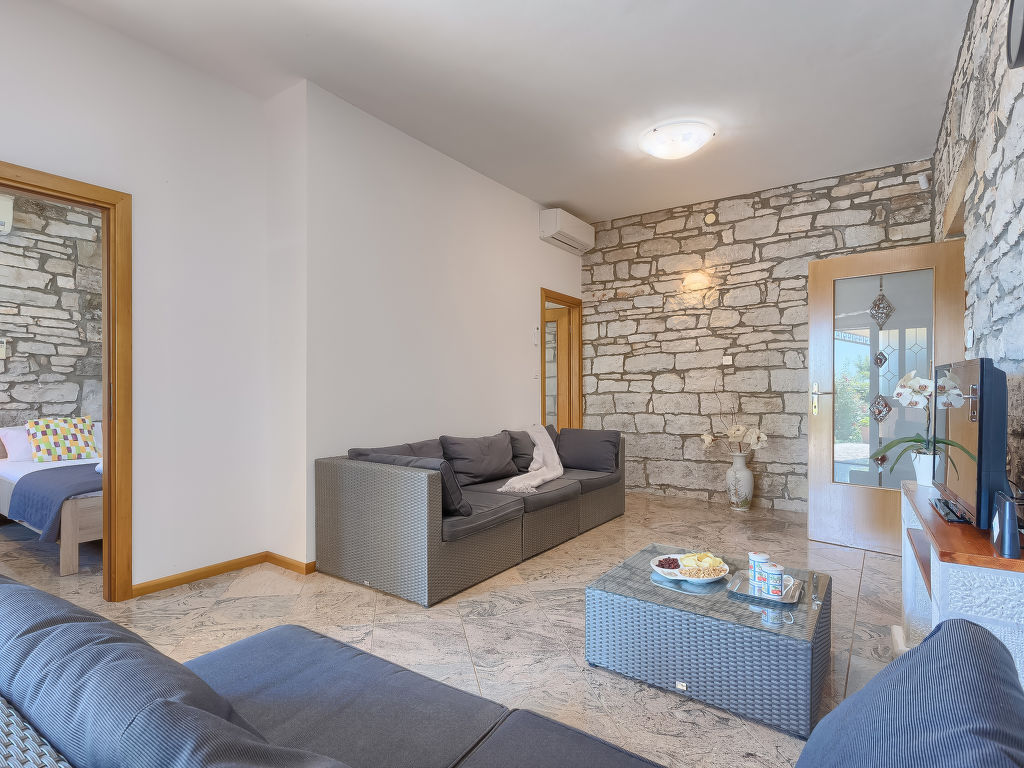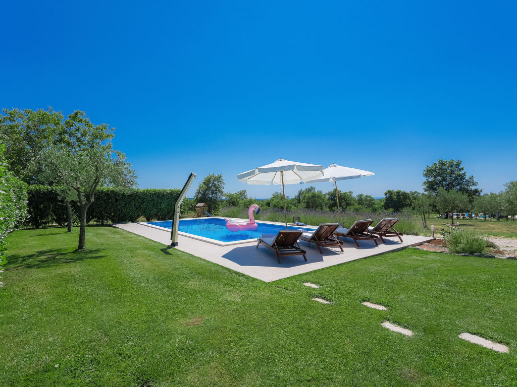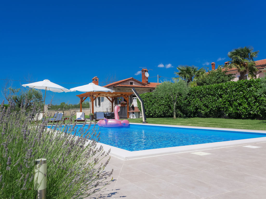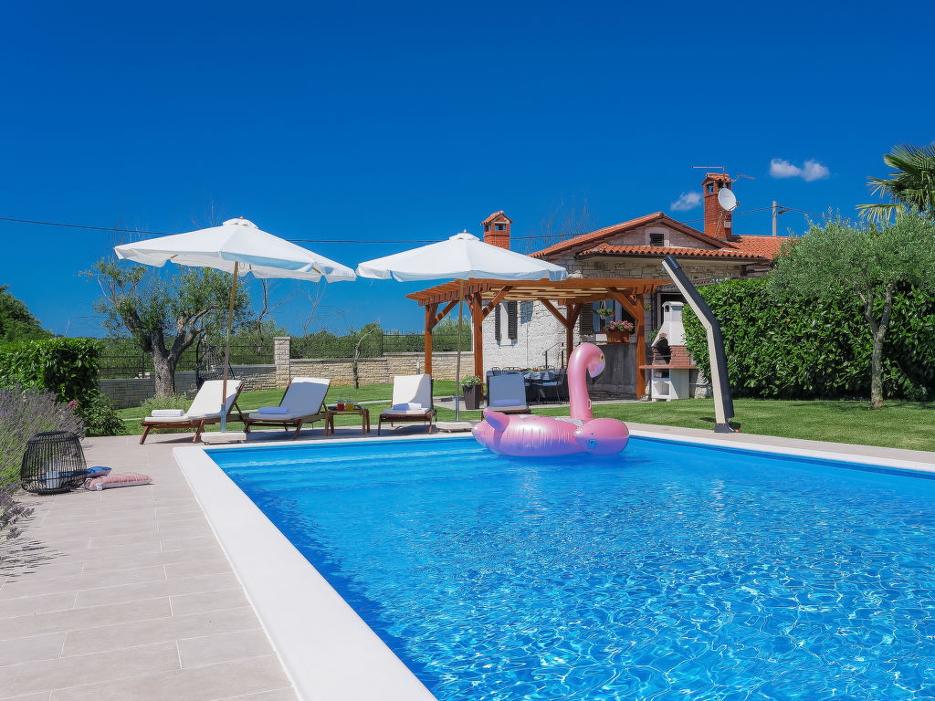 Sv.Lovreč 12 km von Poreč: Schönes Einfamilienhaus "Blog 2", renoviert im Jahre 2016. Im Weiler Vošteni, 2 km vom Zentrum von Sv. Lovreč, ruhige Lage, 7 km vom Meer, im Grünen. Zur Mitbenutzung: Kinderspielplatz (Rutschbahn, Schaukel). Zur Alleinbenutzung: Grundstück 500 m2 (eingezäunt), Garten, Schwimmbad eckig (9 x 4 m, 40 m2, 140 cm tief, 28.03.-17.10.) mit Innentreppe. Aussendusche, Sprudelbad, Grill, Kinderspielplatz. Im Hause: Internetzugang, Waschmaschine. Parkplatz beim Haus auf dem Grundstück. Einkaufsgeschäft 2 km, Supermarkt 12 km, Restaurant 150 m, Kieselstrand 12 km, Felsstrand 12 km. Wanderwege ab Haus 50 m, Radweg 100 m. Nahe gelegene Sehenswürdigkeiten: Lim valley 7 km, aquapark 17 km, amusement park 17 km. Zur Mitbenutzung: Kinderspielplatz (Rutschbahn, Schaukel) in 30 m.