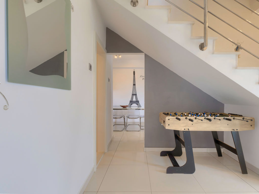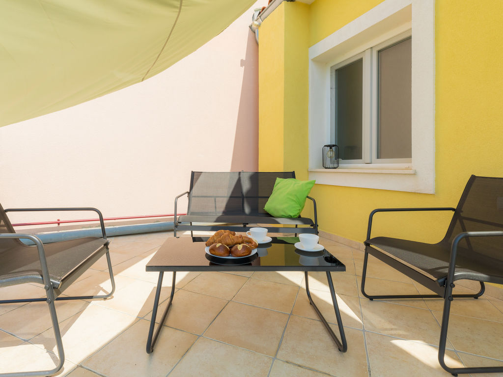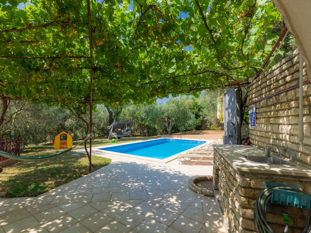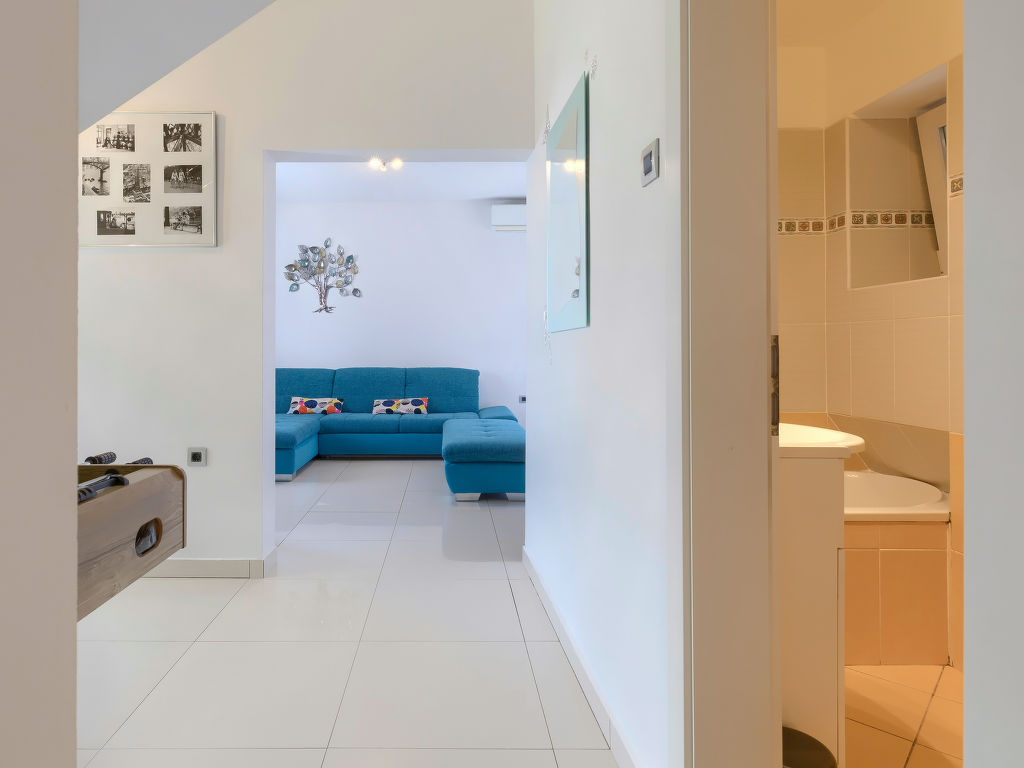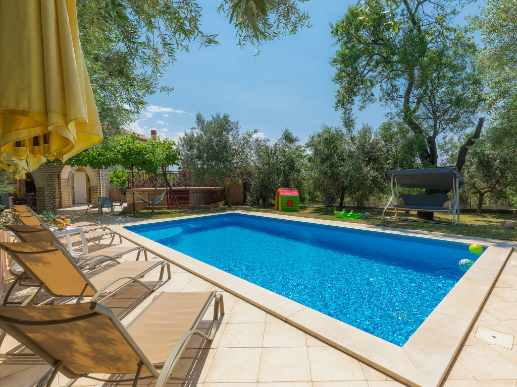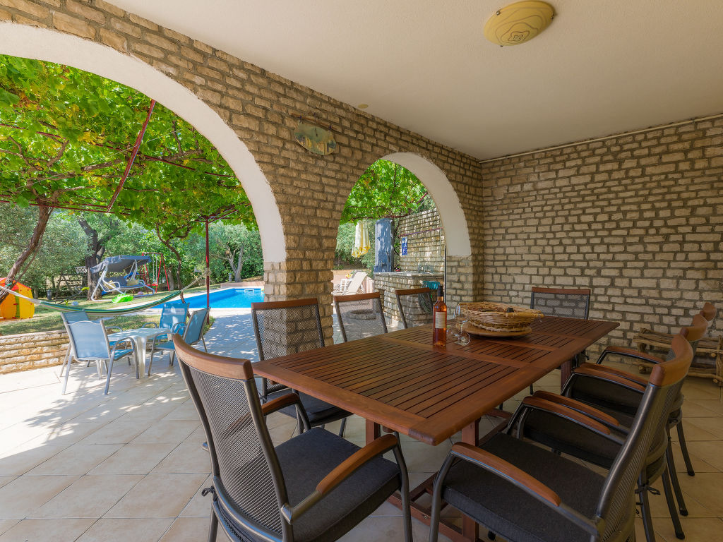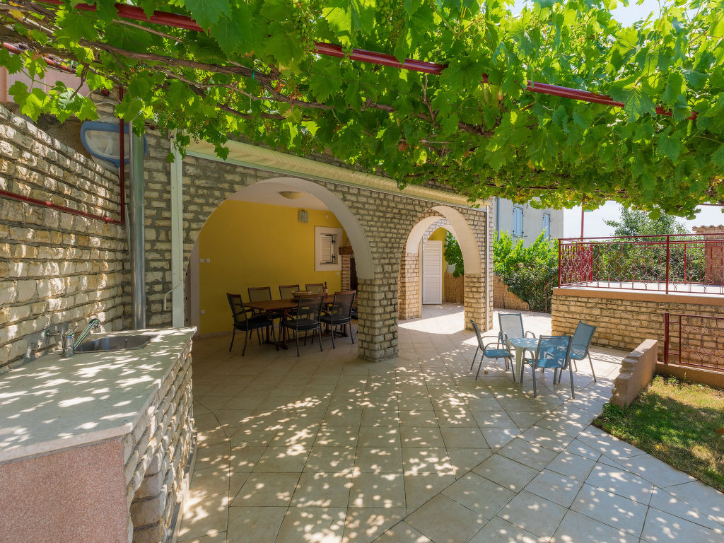 Reihenhaus "Duje & Mare (Mdn184)", auf 2 Stockwerken. 50 m vom Zentrum von Ližnjan, 3 km vom Zentrum von Medulin, 11 km vom Zentrum von Pula, 1.7 km vom Meer, 1.7 km vom Strand. Zur Alleinbenutzung: Grundstück 400 m2 (eingezäunt) mit Rasen und Bäumen, Schwimmbad eckig (8 x 4 m, 135 - 135 cm tief, 01.05.-01.10.). Aussendusche, Terrasse (15 m2), Gartenmöbel (Rutschbahn, Schaukel). Im Hause: Internetzugang, Tischfussball, Waschmaschine, Wäschetrockner. Parkplatz (für 2 Autos) auf dem Grundstück, Einzelgarage. Einkaufsgeschäft 50 m, Restaurant 3 km, Felsstrand 1.7 km. Ab Hof Verkauf von bäuerlichen Produkten.