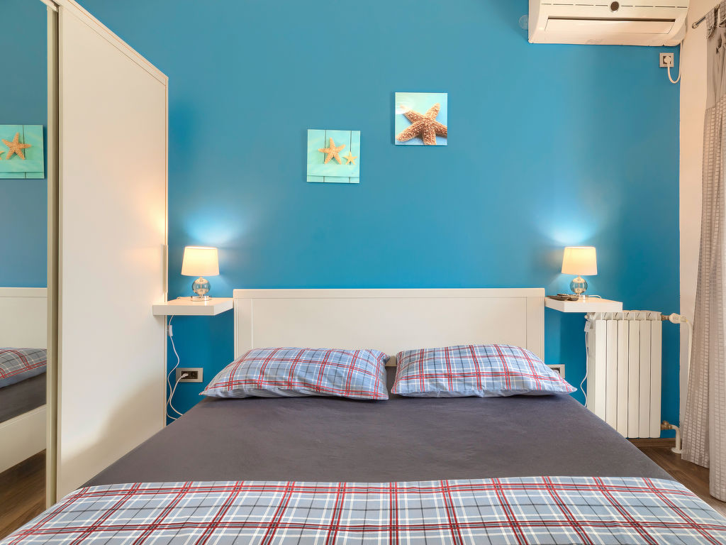 4-Zimmer-Reihenhaus 110 m2 auf 2 Stockwerken. Wohn-/Esszimmer mit 1 Diwanbett (120 cm), 1 Klappbett und offenem Kamin (nur Deko), Sat-TV und Klimaanlage. Ausgang zur Terrasse. Offene Küche (1 Kochplatte, Backofen, Geschirrspüler, 3 Flammen, Toaster, Wasserkocher, Mikrowelle, Tiefkühler, elektrische Kaffeemaschine). Bad/WC. Obergeschoss: 1 Zimmer mit 1 franz. Bett (160 cm, Länge 200 cm), Sat-TV und Klimaanlage. 1 Zimmer mit 1 franz. Bett (160 cm, Länge 200 cm), Sat-TV und Klimaanlage. Ausgang zum Balkon. 1 Zimmer mit 1 franz. Bett (180 cm, Länge 200 cm), Sat-TV und Klimaanlage. Ausgang zum Balkon. Dusche/WC. G-Heizung. Balkon, Terrasse überdacht. Terrassenmöbel. Sicht auf das Meer. Zur Verfügung: Bügeleisen, Kinderhochstuhl, Babybett (extra), Haartrockner. Internet (Wireless LAN, gratis). Bitte beachten: Nichtraucher-Haus.