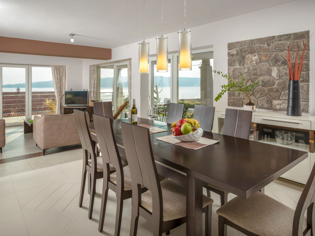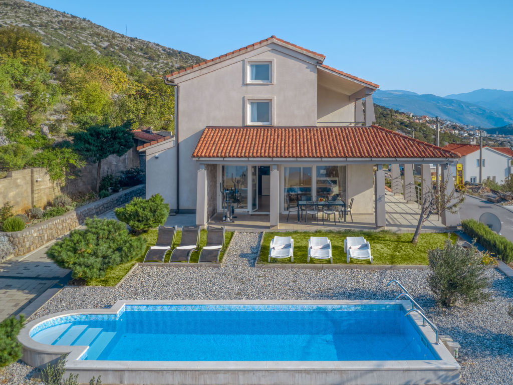 Einfamilienhaus "Senj", auf 2 Stockwerken. 2.5 km vom Zentrum von Senj, ruhige, sonnige, erhöhte Lage, 200 m vom Meer, 200 m vom Strand. Zur Alleinbenutzung: Grundstück 520 m2, Garten mit Rasen 70 m2, Schwimmbad eckig (7 x 3 m, 24 m2, 150 cm tief, 01.05.-15.10.). Aussendusche, Grill. Im Hause: Internetzugang, Zentralheizung, Waschmaschine, Wäschetrockner. Parkplatz (für 3 Autos) beim Haus auf dem Grundstück. Einkaufsgeschäft 2.5 km, Restaurant 250 m, Kieselstrand 200 m (klein), betonierter Strand 200 m. Jugendgruppen nur auf Anfrage.