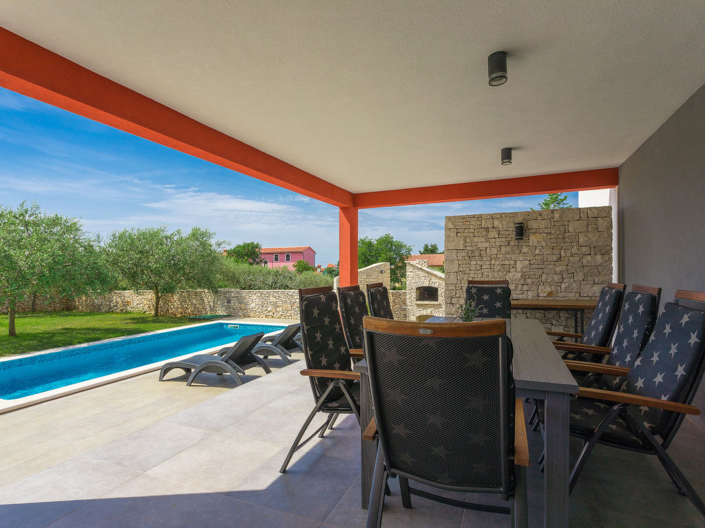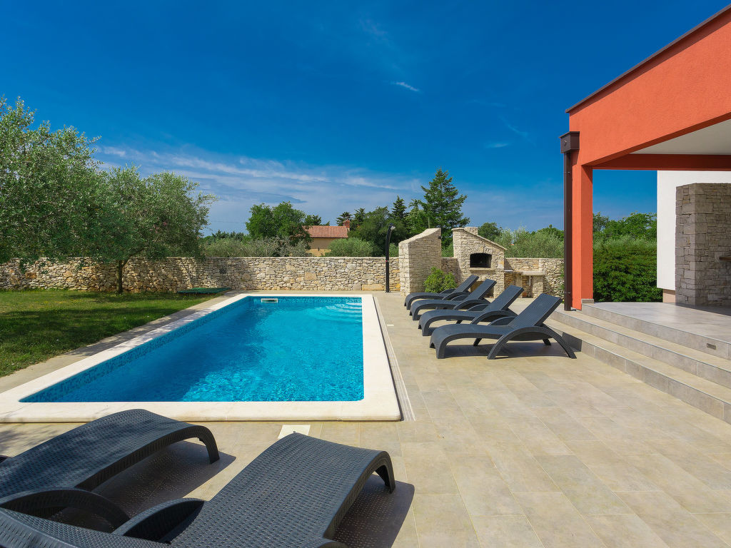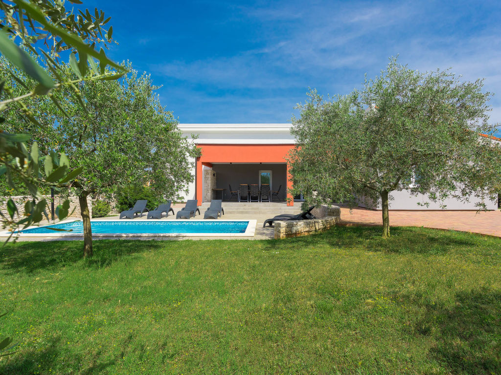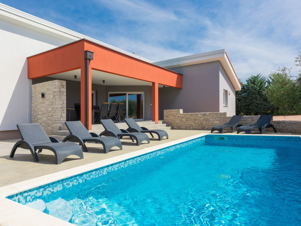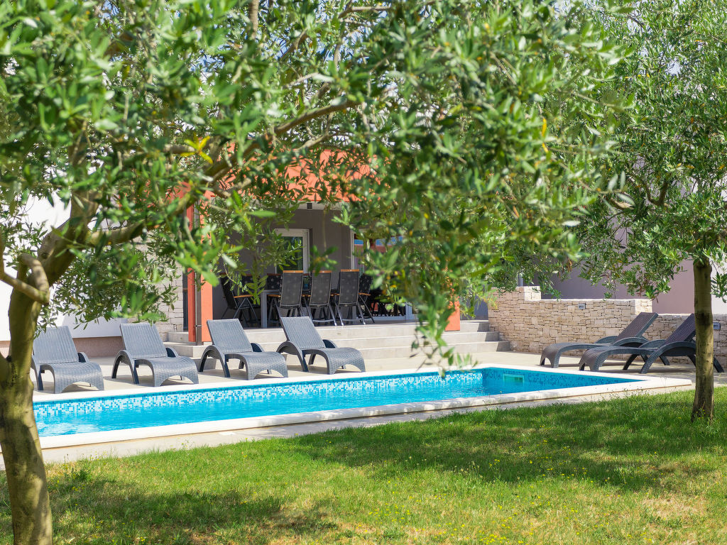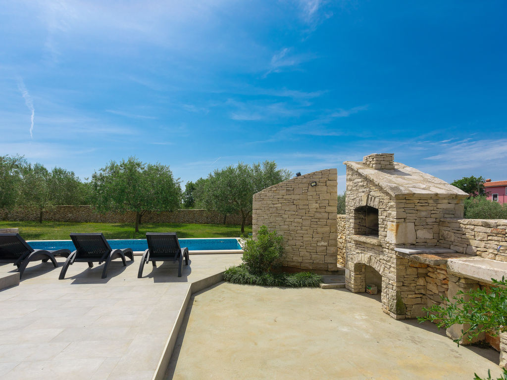 Krnica 22 km von Pula: Moderne, schöne Villa "Krnica". Ruhige, sonnige Lage, 2.5 km vom Meer, 2.5 km vom Strand. Zur Mitbenutzung: Grundstück, Wiese 3'500 m2. (Schaukel). Zur Alleinbenutzung: Grundstück 1'000 m2 (eingezäunt), Garten mit Rasen und Bäumen, Schwimmbad eckig (8 x 3 m, 24 m2, 140 cm tief, 11.05.-21.09.) mit Innentreppe. Aussendusche, Grill. Im Hause: Internetzugang, Waschmaschine. Parkplatz (für 3 Autos) beim Haus auf dem Grundstück. Einkaufsgeschäft, Restaurant 200 m, Kieselstrand 5 km, Felsstrand 2.5 km, Hallenbad 5 km. Tennis 5 km, Reitstall 6 km, Sportzentrum 5 km, Wanderwege ab Haus 3 km, Radweg 3 km.