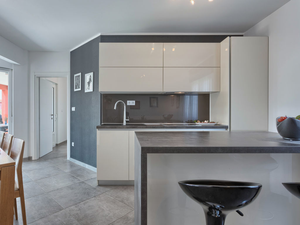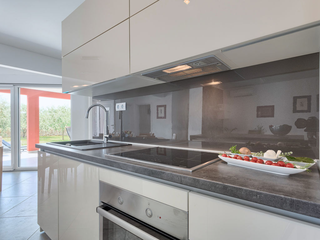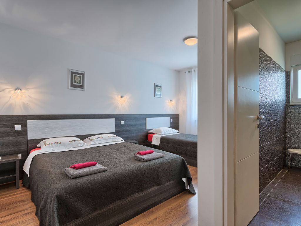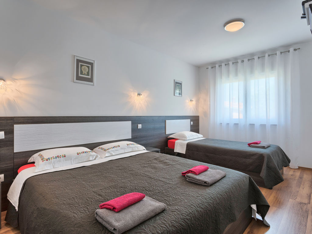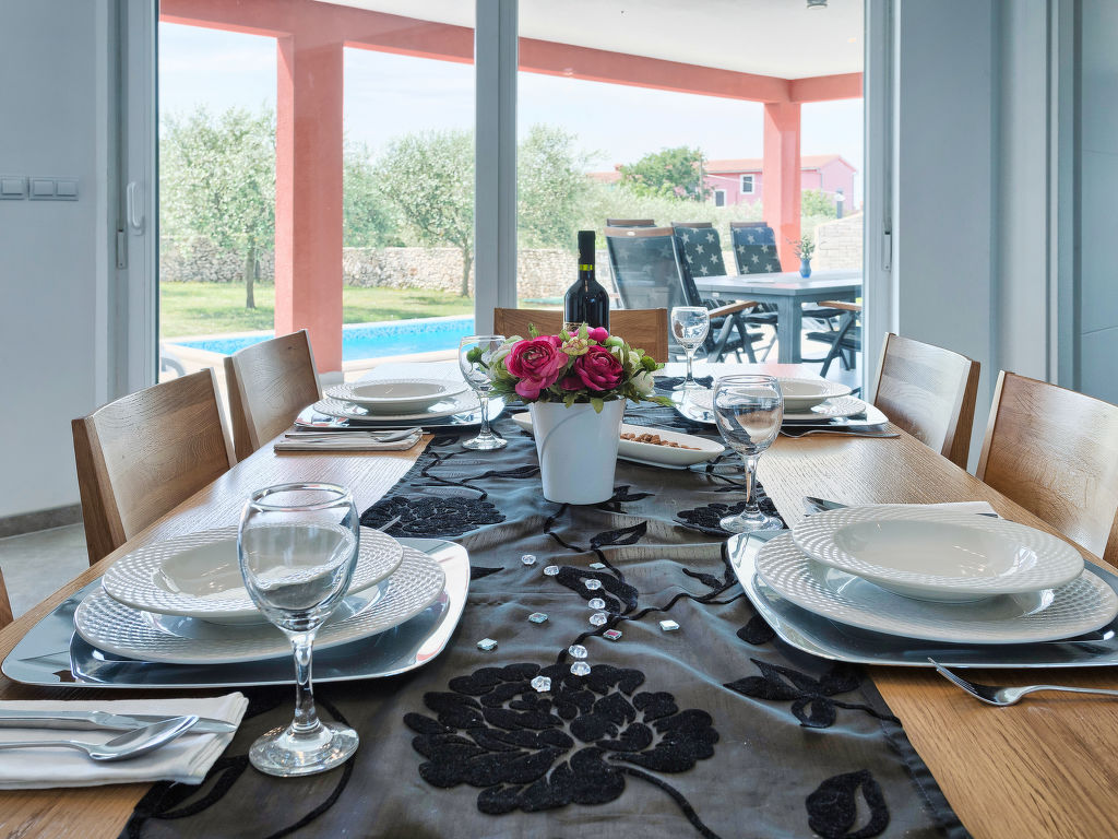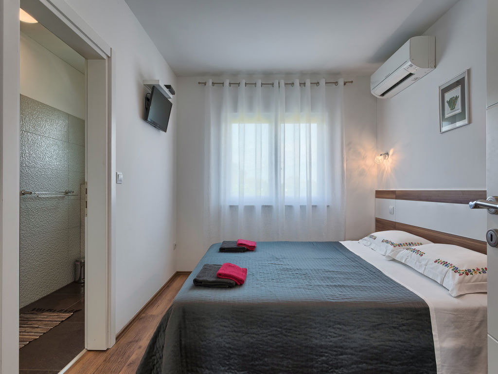 Krnica 22 km von Pula: Moderne, schöne Villa "Krnica". Ruhige, sonnige Lage, 2.5 km vom Meer, 2.5 km vom Strand. Zur Mitbenutzung: Grundstück, Wiese 3'500 m2. (Schaukel). Zur Alleinbenutzung: Grundstück 1'000 m2 (eingezäunt), Garten mit Rasen und Bäumen, Schwimmbad eckig (8 x 3 m, 24 m2, 140 cm tief, 11.05.-21.09.) mit Innentreppe. Aussendusche, Grill. Im Hause: Internetzugang, Waschmaschine. Parkplatz (für 3 Autos) beim Haus auf dem Grundstück. Einkaufsgeschäft, Restaurant 200 m, Kieselstrand 5 km, Felsstrand 2.5 km, Hallenbad 5 km. Tennis 5 km, Reitstall 6 km, Sportzentrum 5 km, Wanderwege ab Haus 3 km, Radweg 3 km.