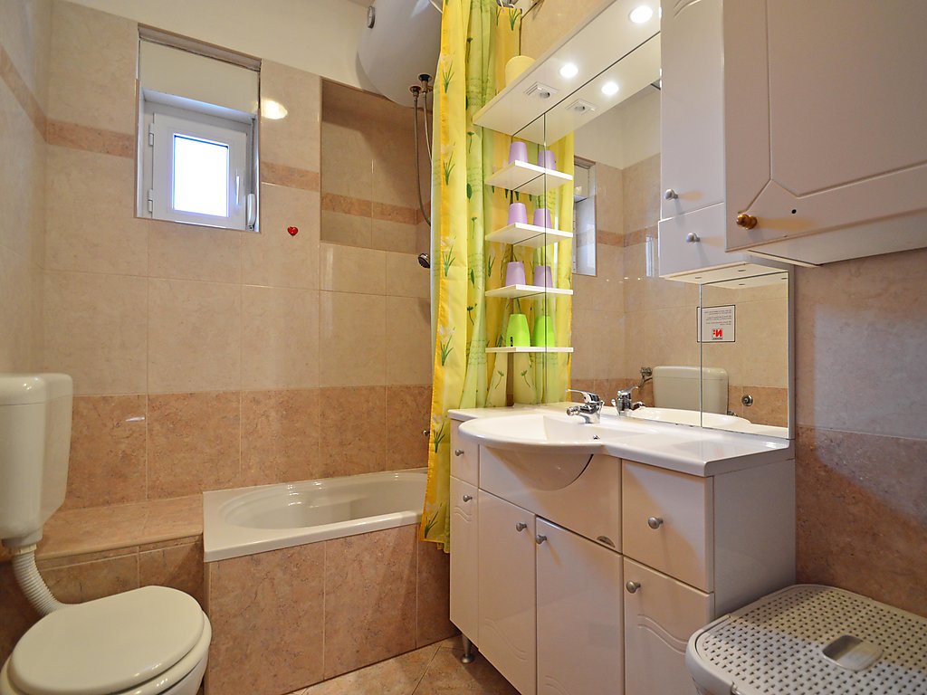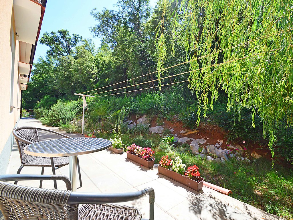 Veprinac 9 km von Opatija: Mehrfamilienhaus "Tihomir". Oberhalb von Opatija, 9 km vom Meer, in einer Sackgasse, im Grünen. Zur Mitbenutzung: Grundstück 1'100 m2, Rasen 50 m2, Schwimmbad eckig (25 m2, 160 cm tief, saisonale Verfügbarkeit: 01.Mai.-15.Okt.) mit Innentreppe. Aussendusche, Gartenmöbel, Grill. Im Hause: Internetzugang, Waschmaschine (zur Mitbenutzung). Parkplatz beim Haus auf dem Grundstück. Einkaufsgeschäft 1.2 km, Restaurant 4 km, Kieselstrand 9 km, Strandbad 9 km. Reitstall 8 km, Wanderwege ab Haus 50 m, Radweg 5 km. Schwimmbad mit Gegenstrom.