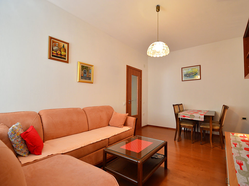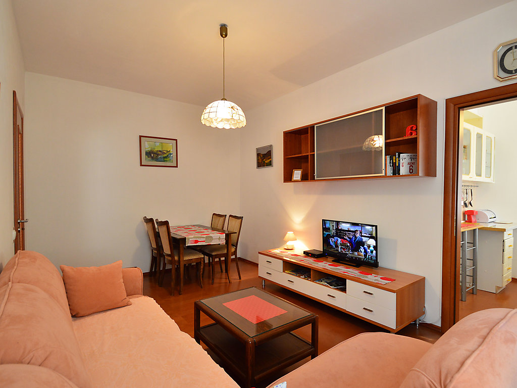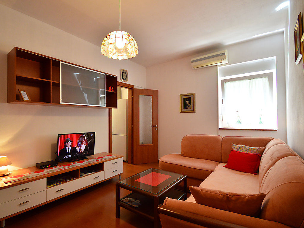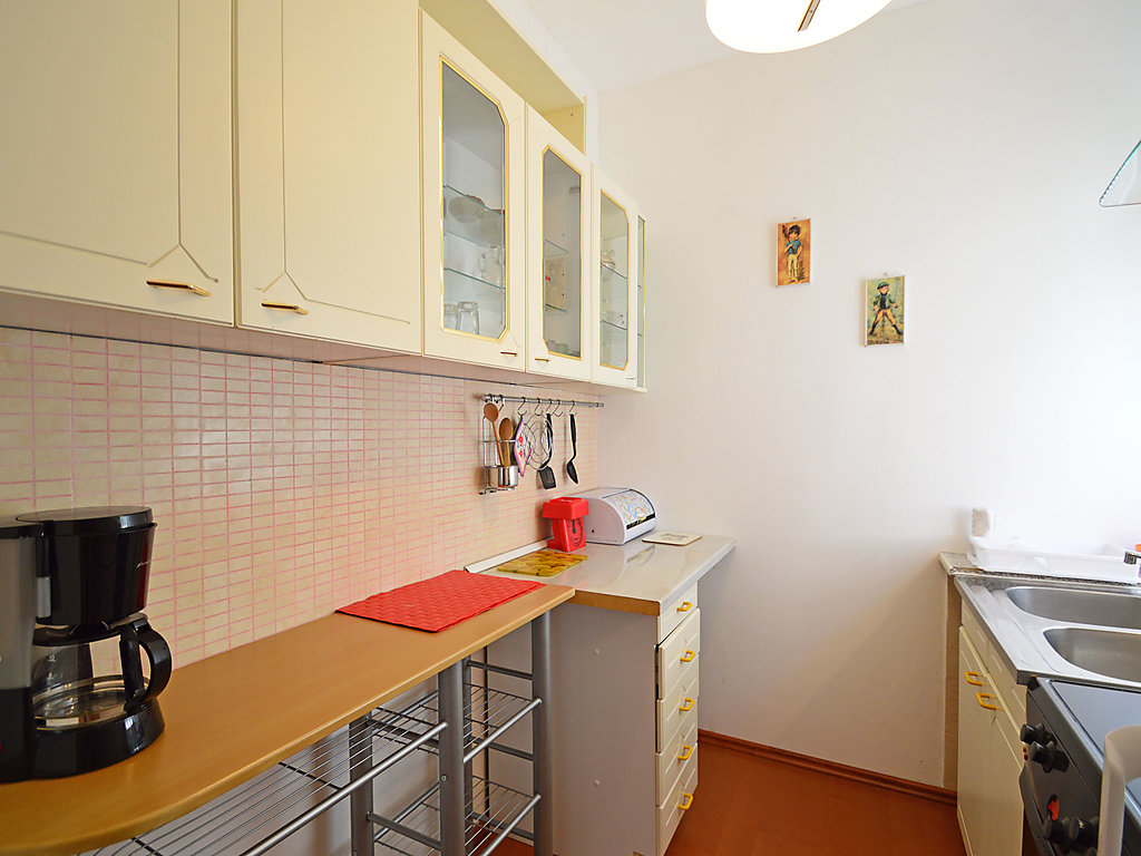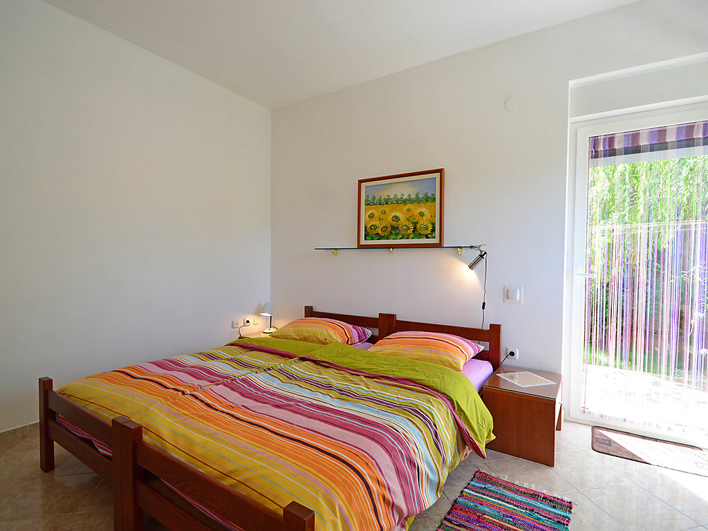 2-Zimmer-Wohnung 40 m2 im 1. Stock, Nordlage. Wohn-/Esszimmer mit 1 Doppeldiwanbett (120 cm, Länge 200 cm), Sat-TV und Klimaanlage. 1 Zimmer mit 1 Doppelbett (2 x 90 cm, Länge 200 cm). Ausgang zur Terrasse. Küche (4 Glaskeramikherd Platten, Tiefkühler). Sitzbad/WC. Heizung (extra). Terrasse 10 m2. Terrassenmöbel. Zur Verfügung: Internet (Wireless LAN, gratis).