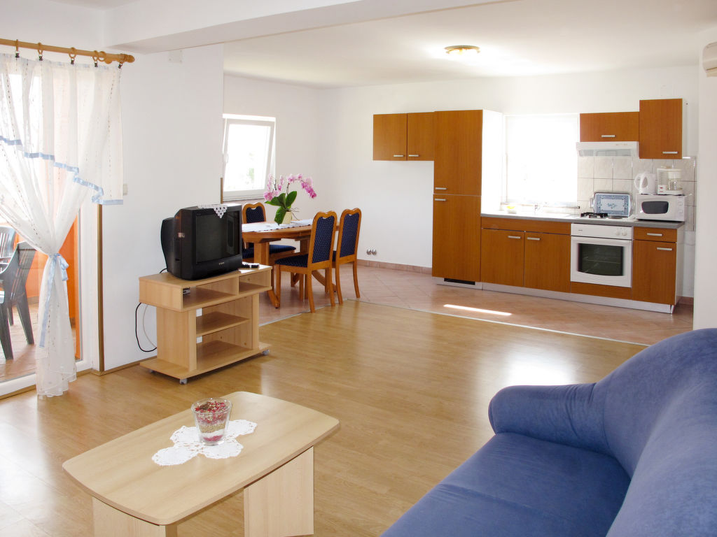 "Buljubasic (RAB147)", 3-Zimmer-Wohnung 90 m2 im 1. Stock. Wohn-/Esszimmer mit 1 Doppeldiwanbett, Sat-TV und Klimaanlage. Ausgang zum Balkon. 1 Zimmer mit 1 Doppelbett (2 x 90 cm, Länge 200 cm). 1 Zimmer mit 1 Doppelbett (2 x 90 cm, Länge 200 cm). Offene Küche (4 Kochplatten, Backofen, Geschirrspüler, Toaster, Wasserkocher, Mikrowelle, elektrische Kaffeemaschine). Bad/WC, sep. WC. Balkon 8 m2. Balkonmöbel. Eingeschränkte Sicht auf das Meer. Zur Verfügung: Internet (Wireless LAN, gratis). Maximal 1 Haustier/Hund erlaubt. Maximale Belegung: 4 Erwachsene und 2 Kinder bis 12 Jahre.