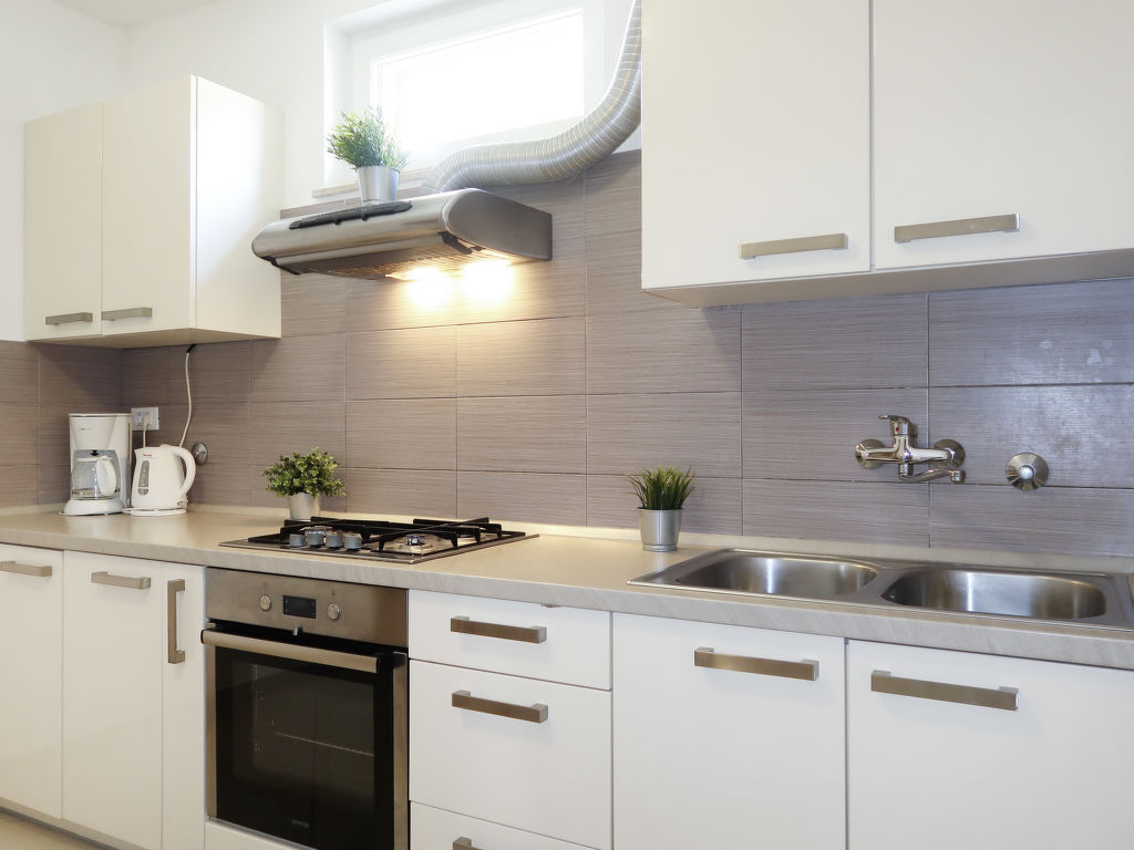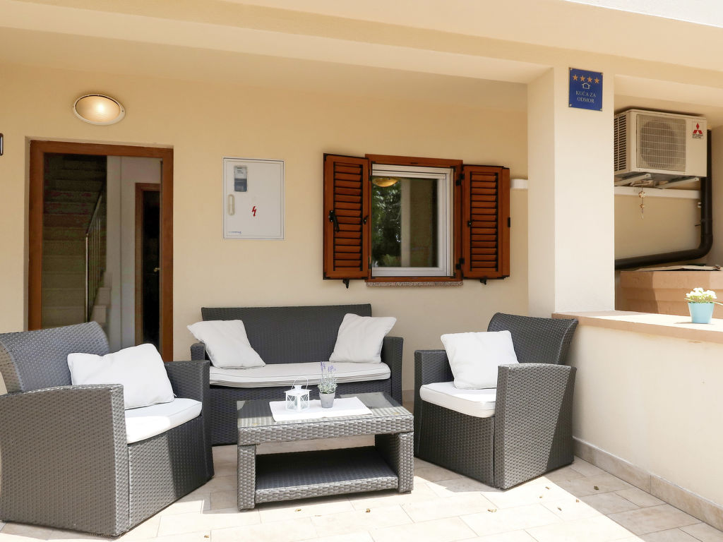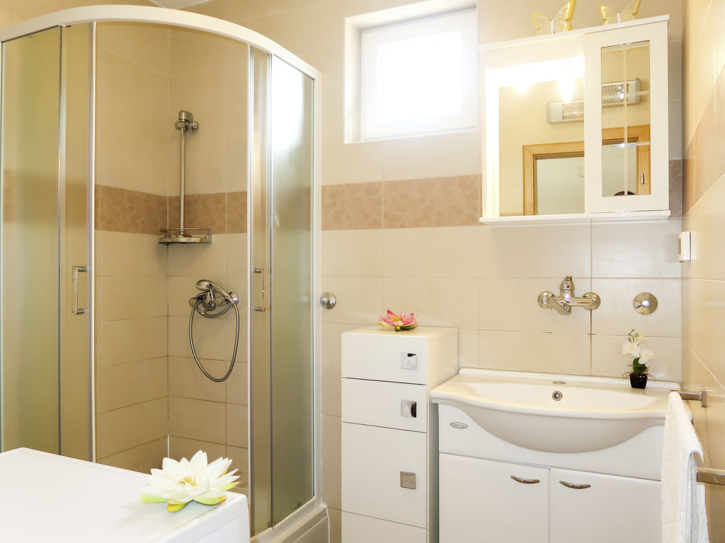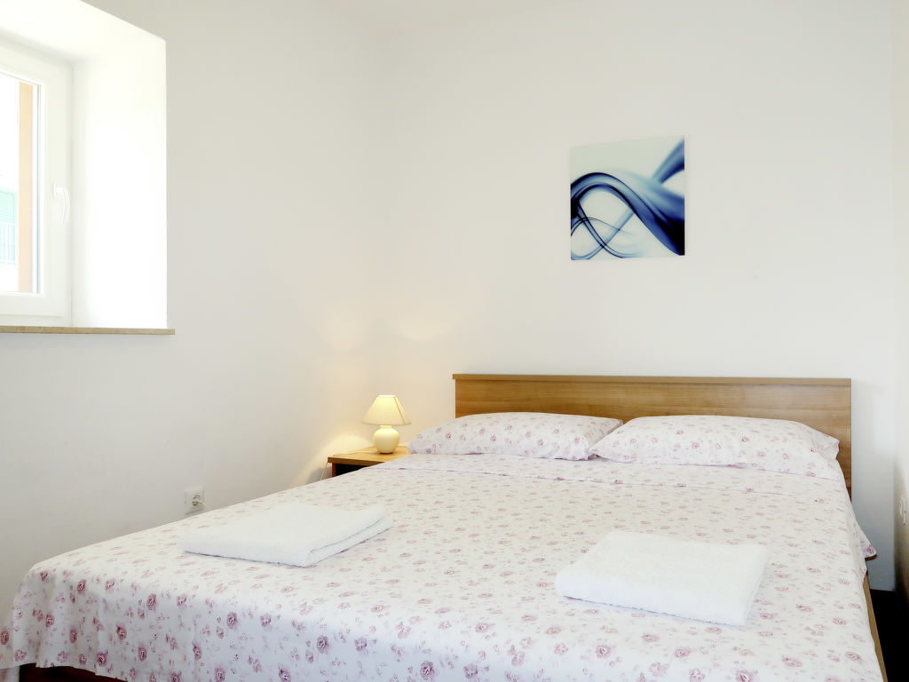 Haus FRANCIC steht, an ein weiteres Gebäude angrenzend, in einem Wohn- und Ferienhausgebiet, ca. 400 m von der Ortsmitte Punat mit Einkaufsmöglichkeit entfernt. Meer ca. 400 m. Kiesstrand und Wasserpark, jeweils 1 km. Krk 8 km. Baska 17 km. Baska 18 km. Malinska 21 km. Gepflegtes, teilweise von Mauer umgebenes, ca. 600 m² großes Grundstück. Teilüberdachte Terrasse mit Mobiliar, 2 Sonnenliegen und Sonnenschirm. Gemauerter Grill. Balkon. 3 Privatparkplätze an der Straße beim Haus. Der Hausanbau bleibt verschlossen. Gute Einrichtung. Fliesen-, Laminatboden. Sat-TV (deutsche Programme). Internetzugang (WLAN, inklusive). Waschmaschine. Klimaanlage mit Kühl-/Heizfunktion im Wohnraum. Hinweis: Rauchen ist im Haus nicht gestattet.
