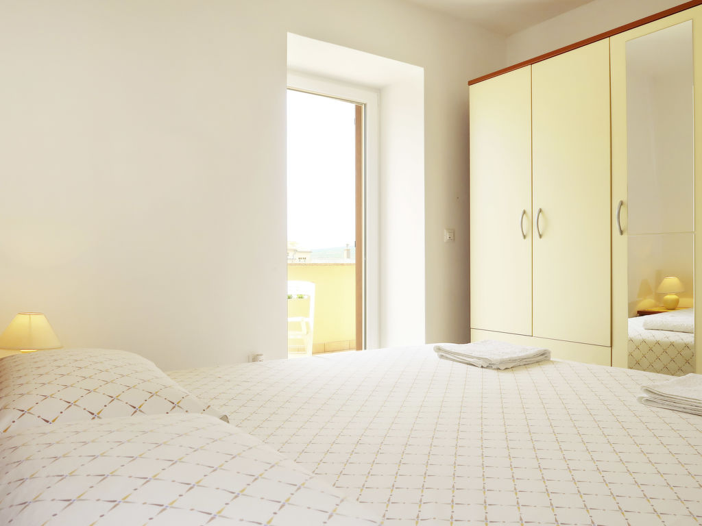 4-Zimmer-Haus, 2 Etagen, ca. 110 m². Erdgeschoss: Wohnraum mit Sitzcouch. Küche (3 Flammen, 1 Platte, Backofen, Kühl-/Gefrierkombination, Kaffeemaschine, Wasserkocher, Toaster) mit Essplatz. Dusche/WC. Obergeschoss: 2 Schlafzimmer, jeweils mit franz. Bett (1,60 oder 1,80 m breit), ein Schlafzimmer mit Balkonausgang. Einzelzimmer. Sep.WC.