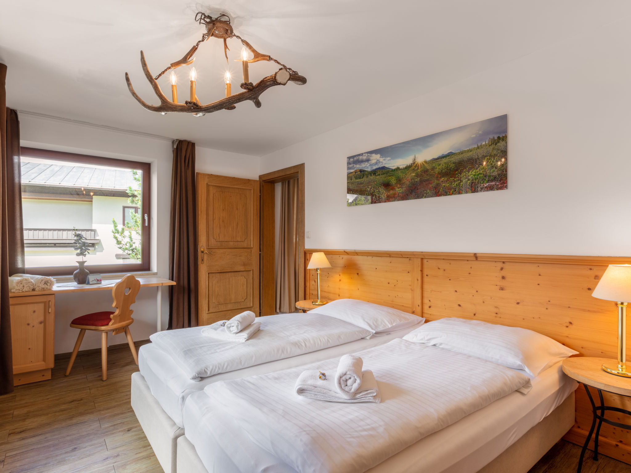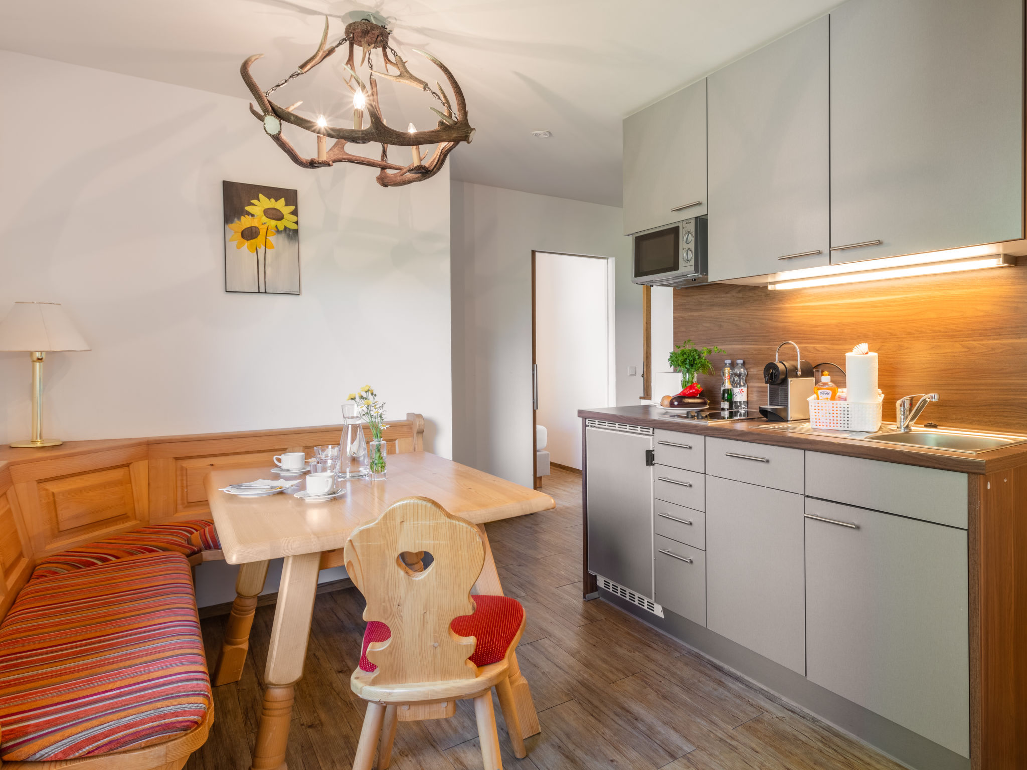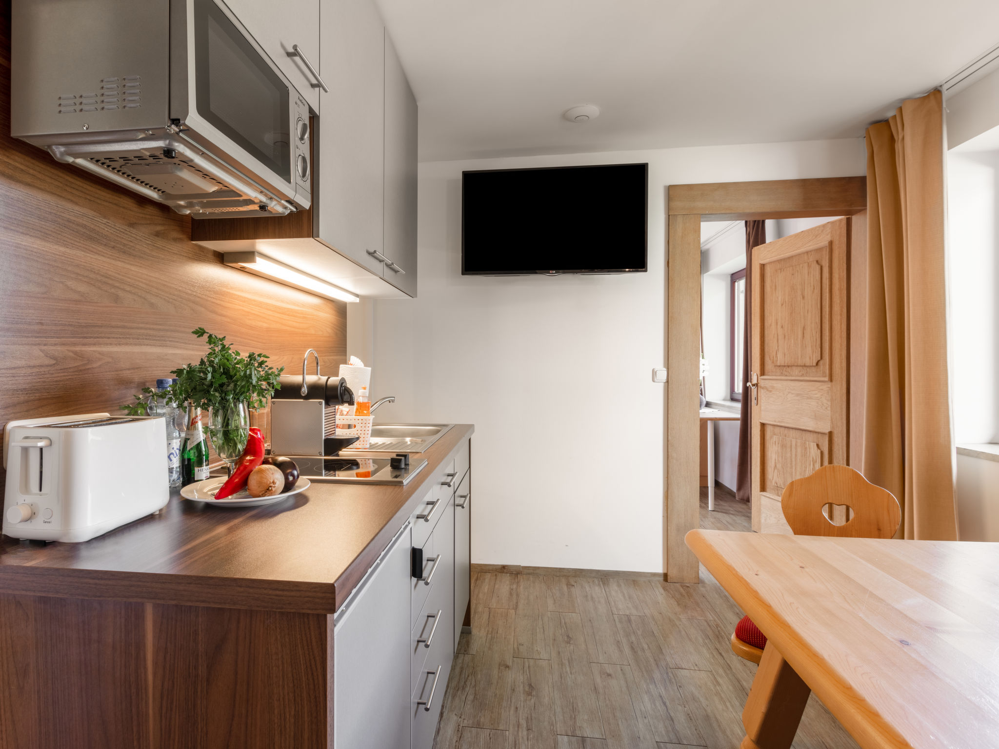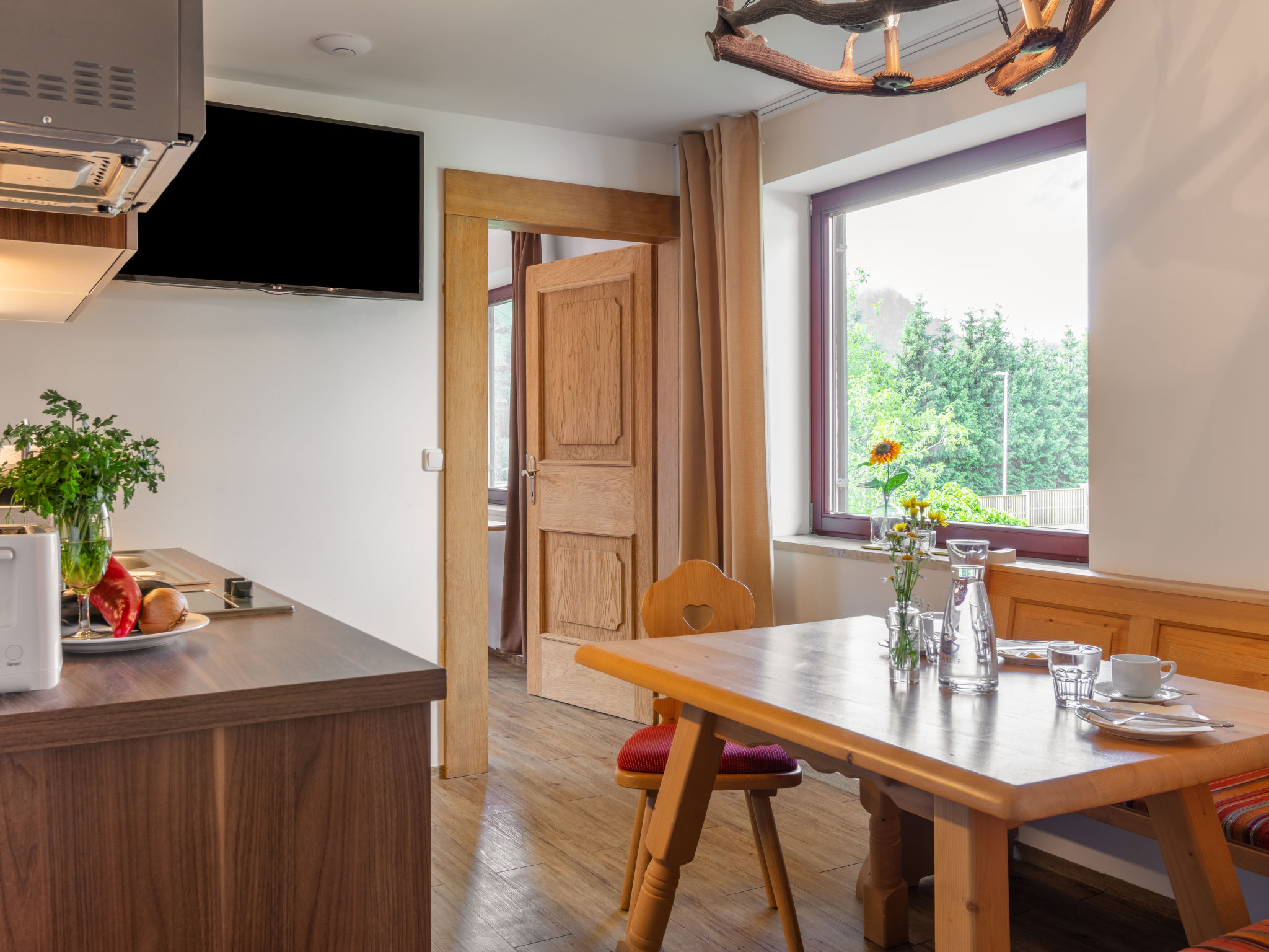 "Apartment Abendsonne", 3-Zimmer-Wohnung 70 m2 im 1. Stock. Hell, komfortabel eingerichtet: 1 Zimmer mit 1 Bett und 1 Doppelbett. 1 Doppelzimmer. Ausgang zum Balkon. Wohnküche (Geschirrspüler, 4 Glaskeramikherd Platten, Wasserkocher, elektrische Kaffeemaschine, Kombinationsmikrowelle) mit Essecke und Sat-TV (Flachbildschirm). Dusche/WC. Balkon 7 m2, Südlage. Balkonmöbel. Schöne Panoramasicht auf die Hohen Tauern. Zur Verfügung: Kinderhochstuhl, Babybett bis 2 Jahre, Haartrockner. Internet (Wireless LAN, gratis). Bitte beachten: Nichtraucher-Unterkunft. 50614-006260-2021