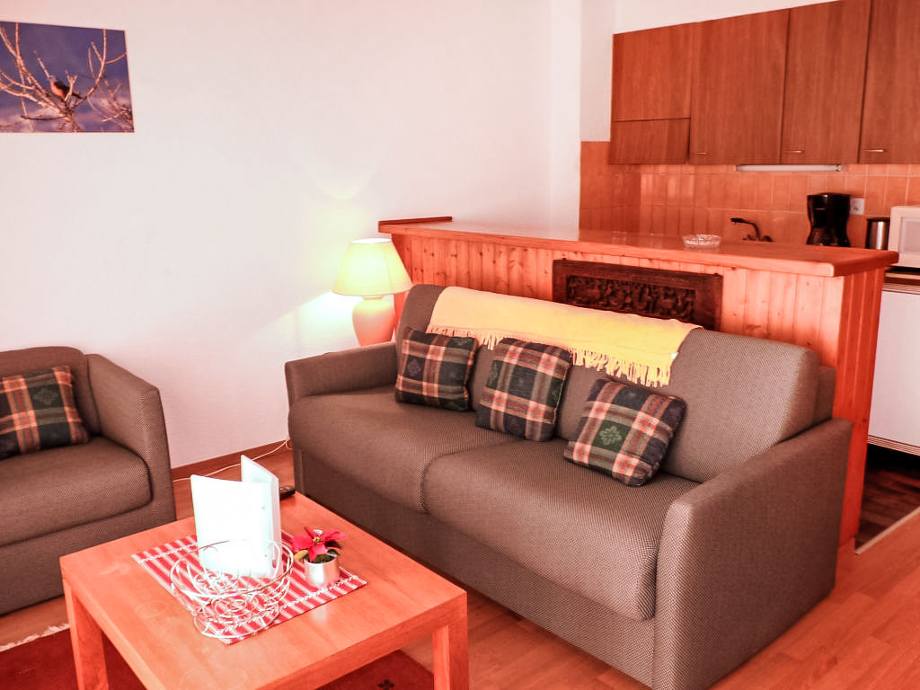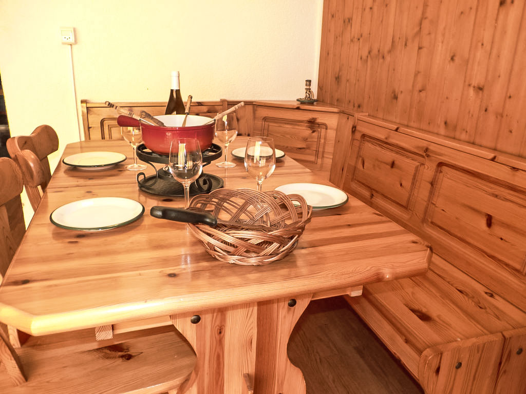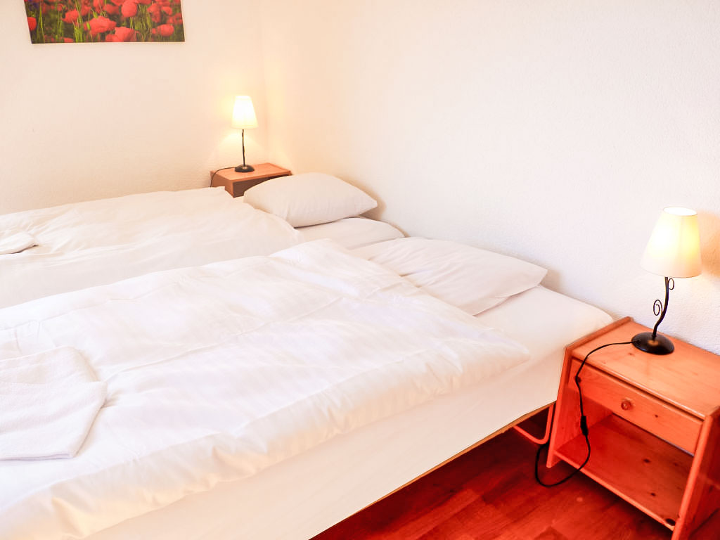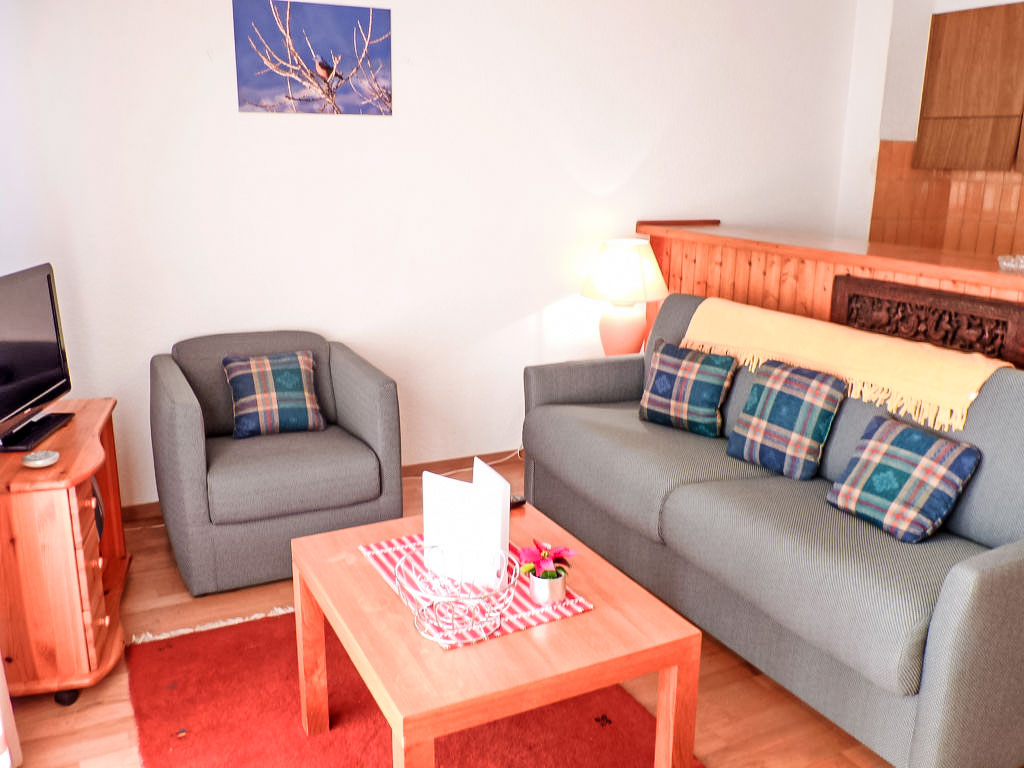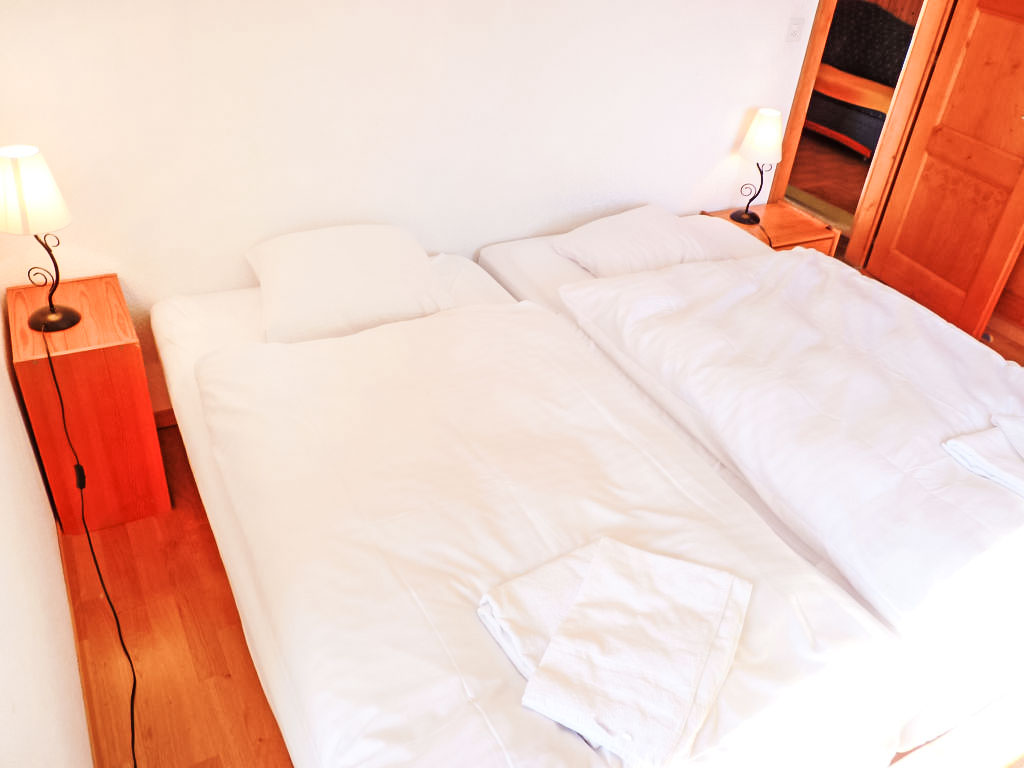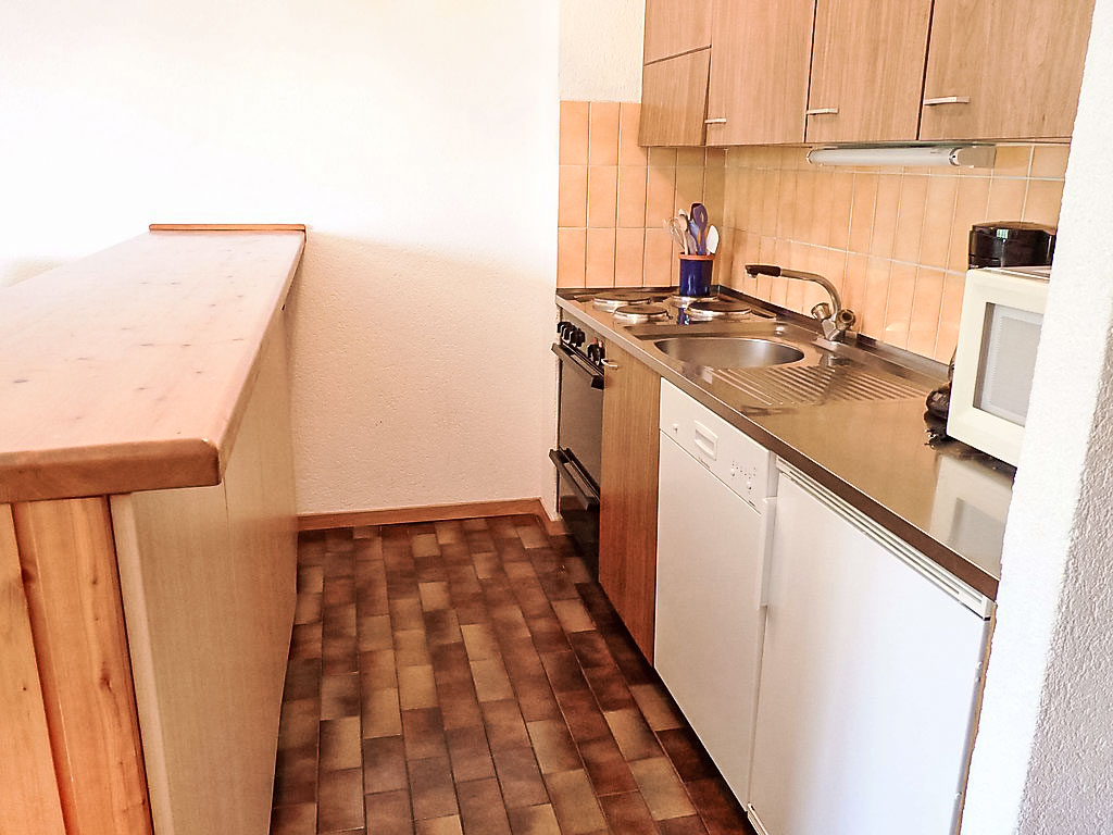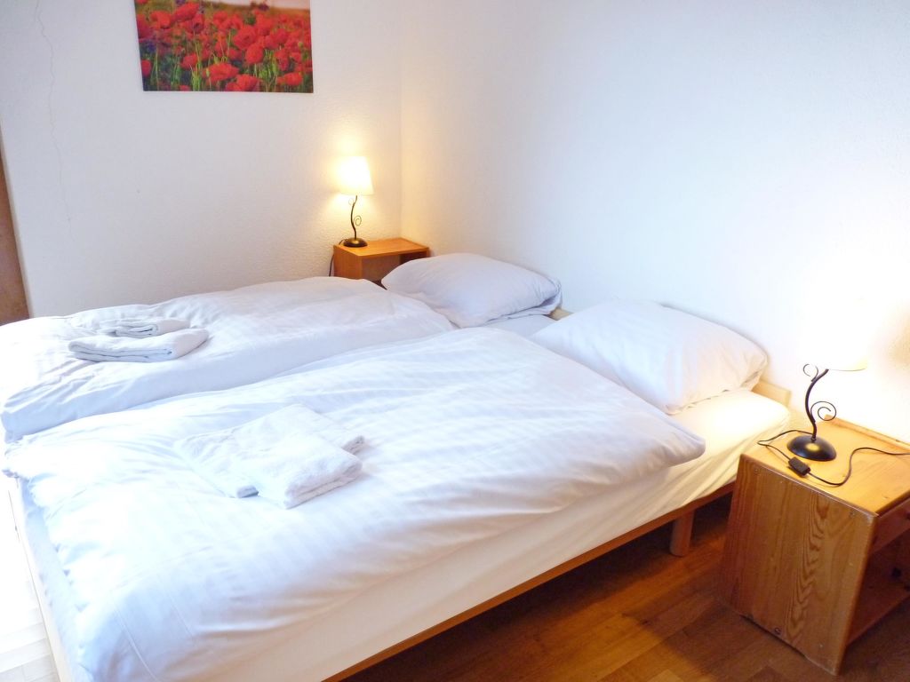 "Tourbillon B 27", 2-Zimmer-Wohnung 45 m2 im 2. Stock, Südwestlage. Komfortabel und geschmackvoll eingerichtet: Wohn-/Esszimmer mit 1 Doppeldiwanbett (1 x 160 cm, Länge 190 cm), Kabel-TV und Stereoanlage. Ausgang zum Balkon. 1 Zimmer mit 2 Betten (90 cm). Kochnische (3 Kochplatten, Backofen, Geschirrspüler, Mikrowelle). Dusche/WC. Balkon 8 m2, Südlage. Terrassenmöbel, Liegestühle (2), Abstellkammer. Schöne Sicht auf die Berge. Zur Verfügung: Bügeleisen. Internet (Wireless LAN, gratis). Parkplatz. Bitte beachten: Nichtraucher-Unterkunft. Maximal 1 kleines Haustier/Hund erlaubt. Im Haus "Tourbillon B".