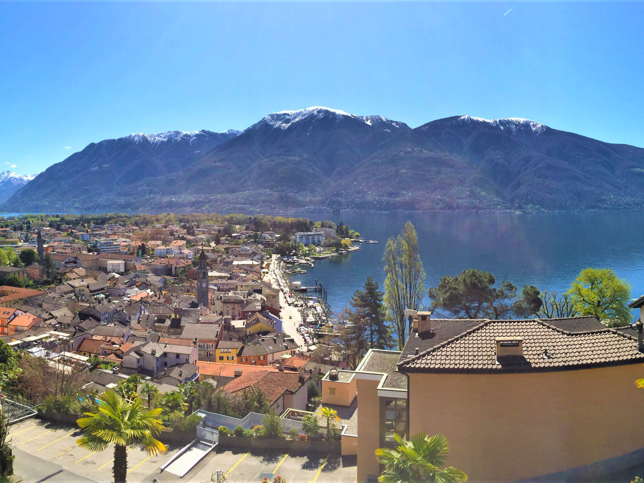 Ascona: Modernes Haus. Oberhalb von Ascona, im Ort, 400 m vom Zentrum, im Bezirk Lago Maggiore, ruhige Lage am Hang, 400 m vom See. Im Hause: Fahrstuhl. Brötchenservice. Parkplatz (beschränkte Anzahl, extra) auf dem Grundstück, Gemeinschaftsgarage (extra). Einkaufsgeschäft, Restaurant 400 m, Bahnstation "Locarno-Muralto" 4 km, Strandbad 1 km. Golfplatz (18 Loch) 1 km, Tennis 1 km. Bitte beachten: geeignet für Familien, geeignet für Senioren. In diesem Haus sind weitere Ferienwohnungen mietbar. Ein öffentlicher Parkplatz ist über eine steile Treppe innert 5 Gehminuten erreichbar. Ein weiterer öffentlicher Parkplatz befindet sich im Zentrum. Minigolf 1 km.