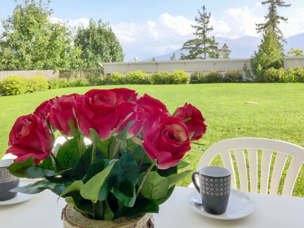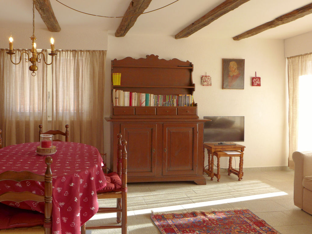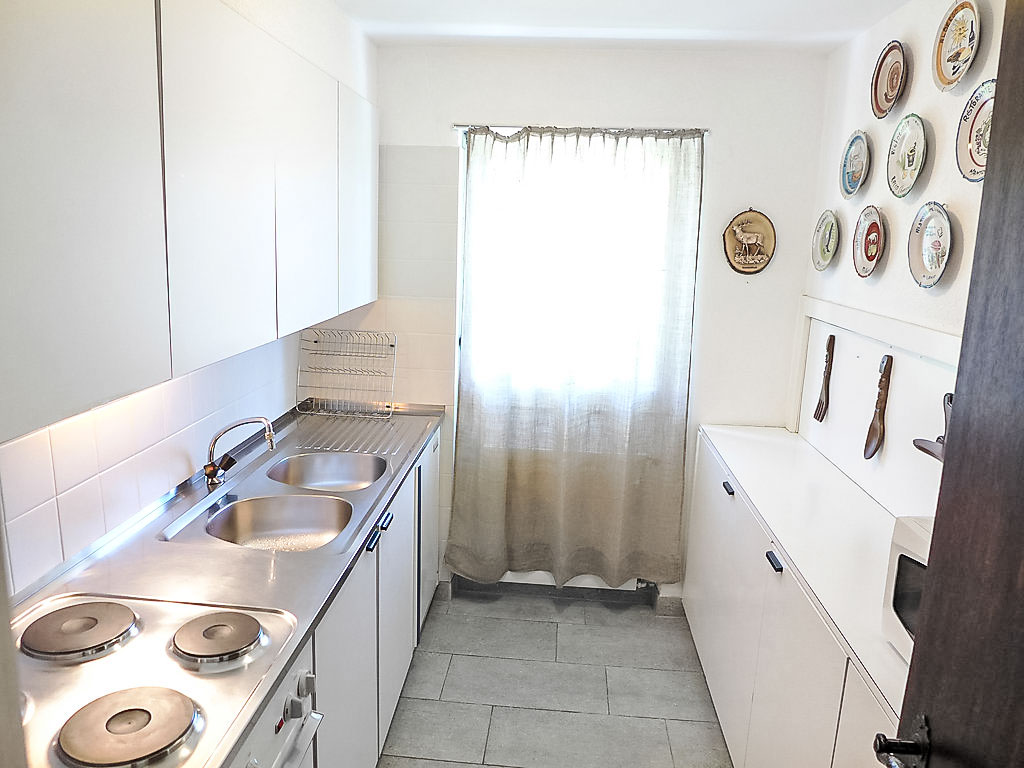 "Andrea A", 2-Zimmer-Wohnung 65 m2, im Erdgeschoss. Objekt geeignet für 2 Erwachsene + 2 Kinder. Rustikal eingerichtet: Wohn-/Esszimmer mit 1 Doppeldiwanbett (140 cm, Länge 200 cm), Kabel-TV (Flachbildschirm). Ausgang zum Garten, Richtung Süden und Richtung Osten. 1 Zimmer, Richtung Norden mit 1 franz. Bett (160 cm, Länge 200 cm). Küche (3 Kochplatten, Backofen, Toaster, Wasserkocher, Mikrowelle, elektrische Kaffeemaschine, Fondue Set (Chinoise, Käse)). Bad/Bidet/WC. Terrasse, Südlage und Ostlage, Rasen. Terrassenmöbel, Liegestühle (2). Schöne Sicht. Zur Verfügung: Haartrockner. Internet (Wireless LAN, gratis). Garage Nr. 1, Höhe 205 cm, Breite 210 cm. Bitte beachten: Nichtraucher-Unterkunft.