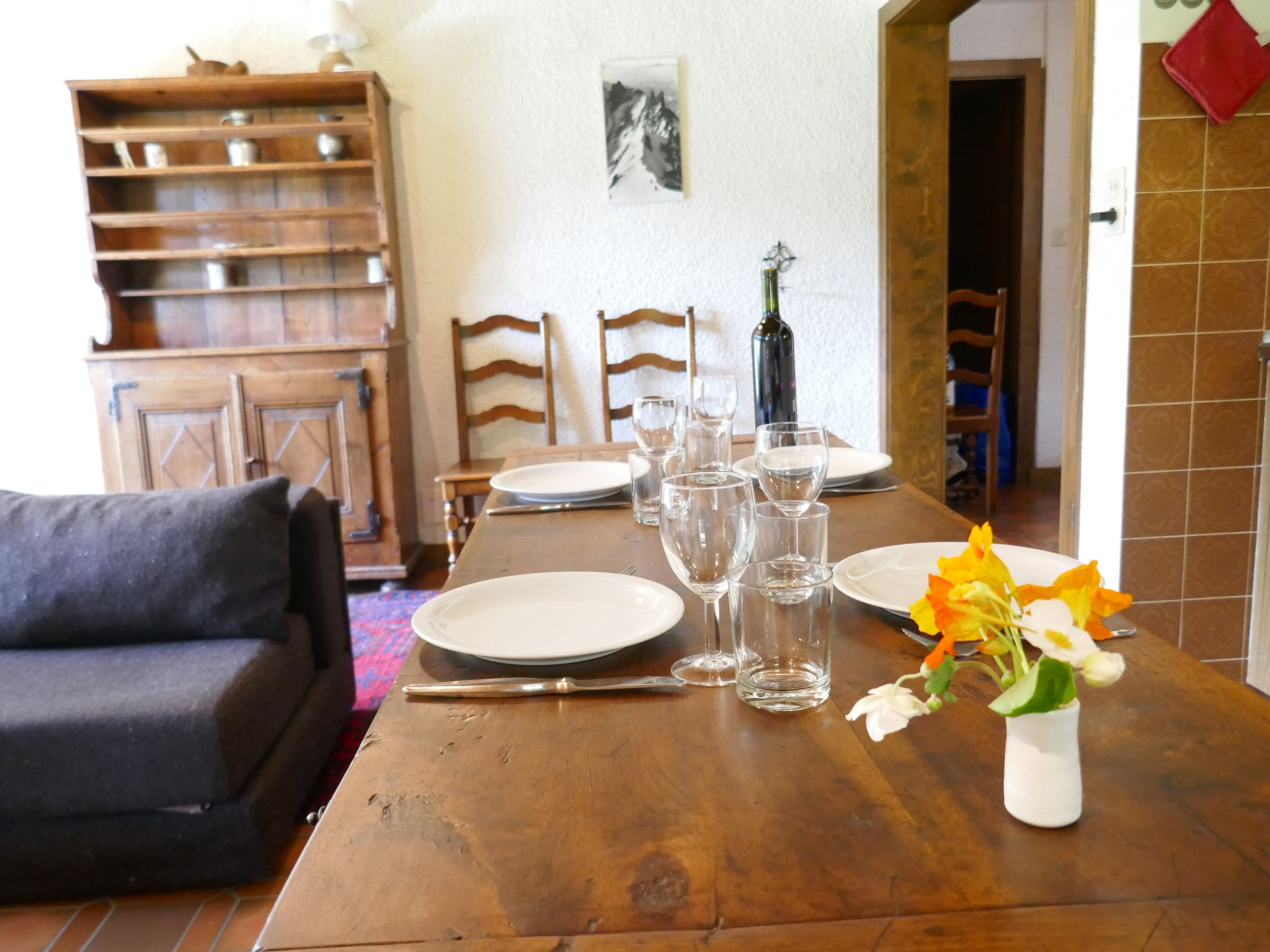 "Breya 2", 3-Zimmer-Wohnung 60 m2, im Erdgeschoss. Einfach und zweckmässig eingerichtet: Wohn-/Esszimmer mit Kabel-TV. Ausgang zur Terrasse. 1 Zimmer mit 1 Doppelbett. Ausgang zur Terrasse. 1 Zimmer mit 1 x 2 Etagenbetten. Kochnische (4 Kochplatten, Backofen, Geschirrspüler, Tiefkühler, Racletteofen, Fondue Set (Käse)). Bad, sep. WC. Kleine Terrasse, Rasen. Terrassenmöbel, Balkonmöbel. Schöne Sicht auf die Berge. Zur Verfügung: Kinderhochstuhl bis 2 Jahre, Haartrockner. Internet (Wireless LAN, gratis). Bitte beachten: Nichtraucher-Unterkunft. 1 Haustier/Hund erlaubt.