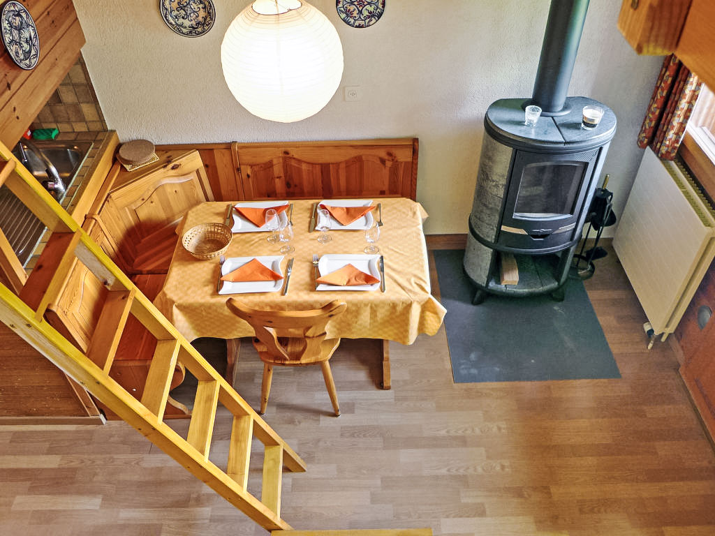 "Tarcianne Apt A6", 2-Zimmer-Wohnung 40 m2 auf 2 Stockwerken im 1. Stock. Einfach und zweckmässig eingerichtet: Wohn-/Esszimmer mit Schwedenofen, Esstisch und Kabel-TV. Ausgang zum Balkon. Kleine, offene Küche (4 Kochplatten, Backofen, Geschirrspüler, elektrische Kaffeemaschine, Kapseln für die Kaffeemaschine (Nespresso), Racletteofen, Fondue Set (Chinoise, Käse)). Bad/WC. Obergeschoss: (geländerlose Treppe) 1 Zimmer mit 1 Doppelbett. Ausgang zum Balkon. (Leiter) Galerie mit 2 Betten. 2 Balkone. Balkonmöbel. Sehr schöne Sicht auf die Berge und die Landschaft. Zur Verfügung: Internet (Wireless LAN, gratis). Garage (extra). Bitte beachten: für Kleinkinder nicht geeignet. Nichtraucher-Unterkunft.