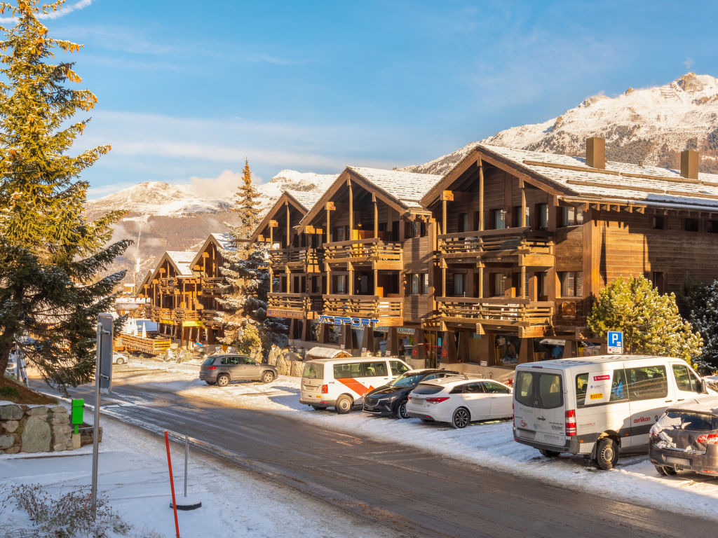 Grimentz: Kinderfreundliche, gemütliche, komfortable Residenz "Tarcianne A6", 1'570 m.ü.M.. Im Ort, zentrale, ruhige, sonnige Lage. Im Hause: Skiraum, Zentralheizung. Zufahrt bis zum Haus. Gemeinschaftsgarage (extra), extra. Einkaufsgeschäft, Lebensmittelgeschäft, Supermarkt 1 m, Restaurant, Bäckerei, Bushaltestelle 10 m, Thermalbad "Zinal" 8 km. Tennis 50 m, Wanderwege ab Haus 1 m, Luftseilbahn 50 m, Skischule 10 m, Schlittelbahn, Langlaufloipe 20 m, Eisfeld, Kinderspielplatz 50 m. Nahe gelegene Sehenswürdigkeiten: Zinal (Trail Sierre-Zinal) 7 km, Vtt Grand-Raid Grimentz.