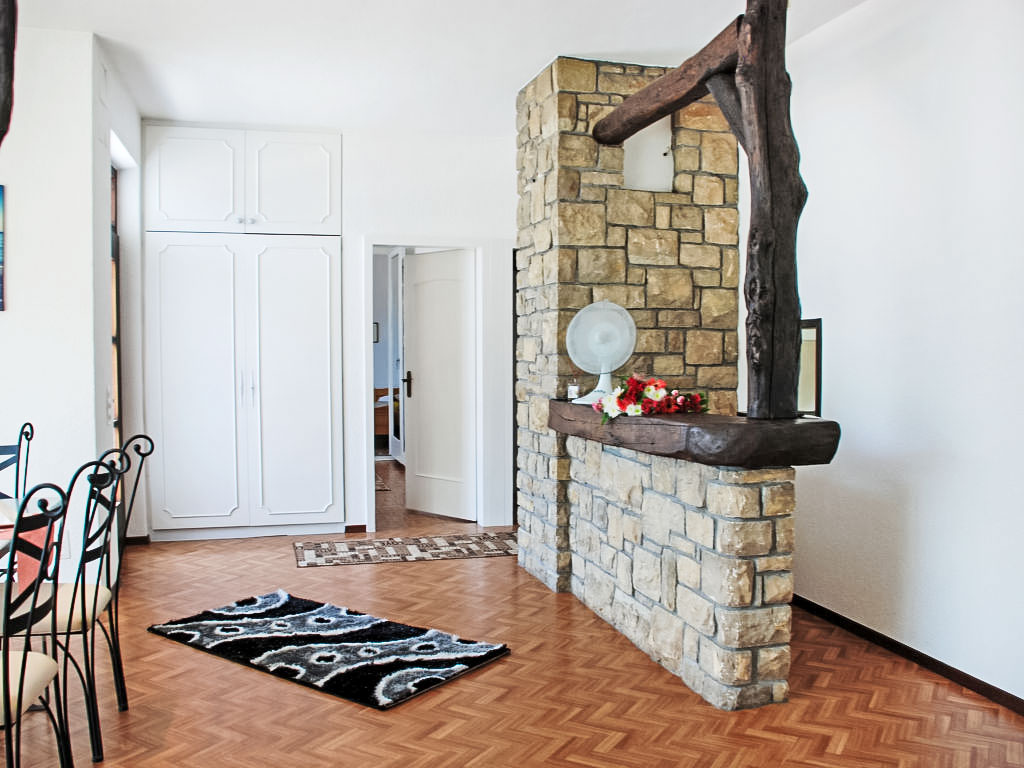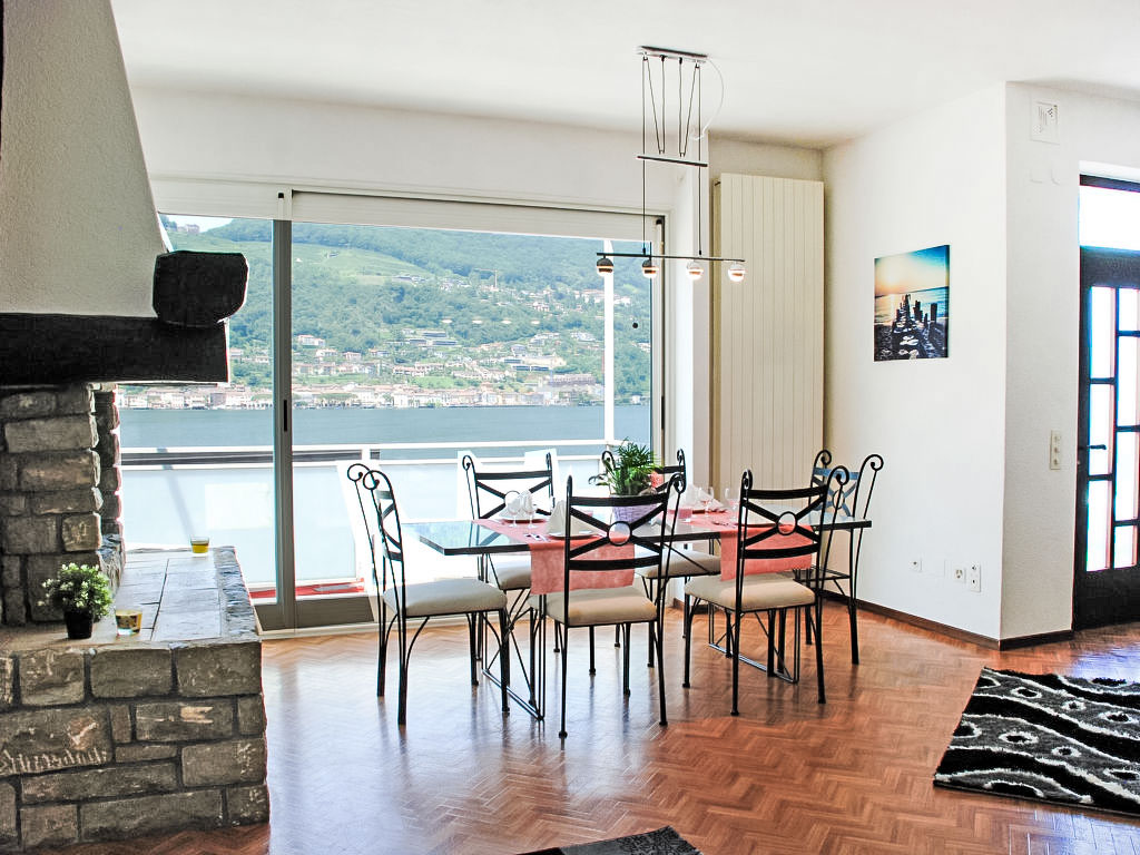 "App. Zappa (1 piano)", 5-Zimmer-Wohnung 125 m2 im 1. Stock. Geräumig und hell, komfortabel und gemütlich eingerichtet: offenes grosses Wohn-/Esszimmer mit Schiebetür, Panoramafenster mit offenem Kamin, Esstisch und Sat-TV (Flachbildschirm), Radio. Ausgang zum Balkon. 1 Doppelzimmer mit 1 Doppelbett (2 x 90 cm, Länge 200 cm). Ausgang zum Balkon. 1 Doppelzimmer mit 1 franz. Bett (160 cm, Länge 200 cm). 1 Zimmer mit 1 Bett (90 cm, Länge 200 cm). Verbundenes Zimmer mit 2 Betten (90 cm, Länge 200 cm). Küche (Backofen, Geschirrspüler, 4 Glaskeramikherd Platten, elektrische Kaffeemaschine, Kapseln für die Kaffeemaschine (DOLCE GUSTO) extra) mit Durchreiche. Bad/WC, Dusche/WC. Heizung. Grosser Balkon, grosse Terrasse 100 m2. Terrassenmöbel, Liegestühle (4). Herrliche Panoramasicht auf den See, die Berge, die Landschaft und die Ortschaft. Zur Verfügung: Waschmaschine, Kinderhochstuhl, Babybett bis 2 Jahre (extra). Internet (Wireless LAN, gratis). Bitte beachten: Nichtraucher-Unterkunft. Maximal 1 Haustier/Hund erlaubt.