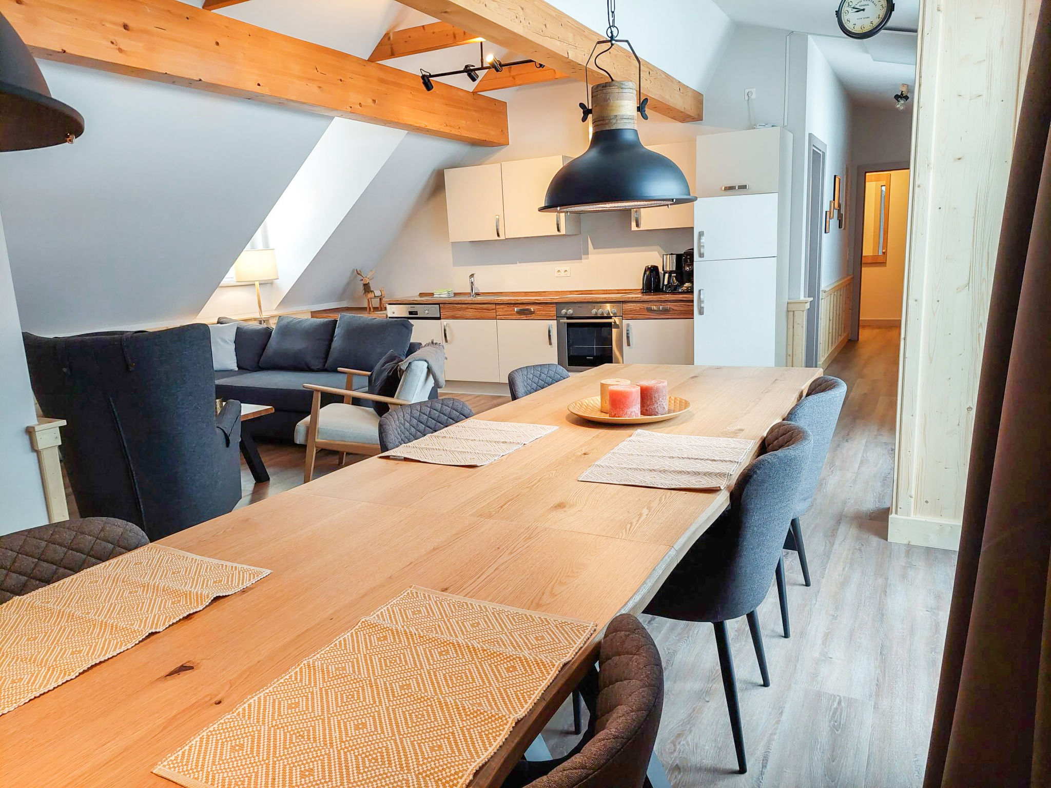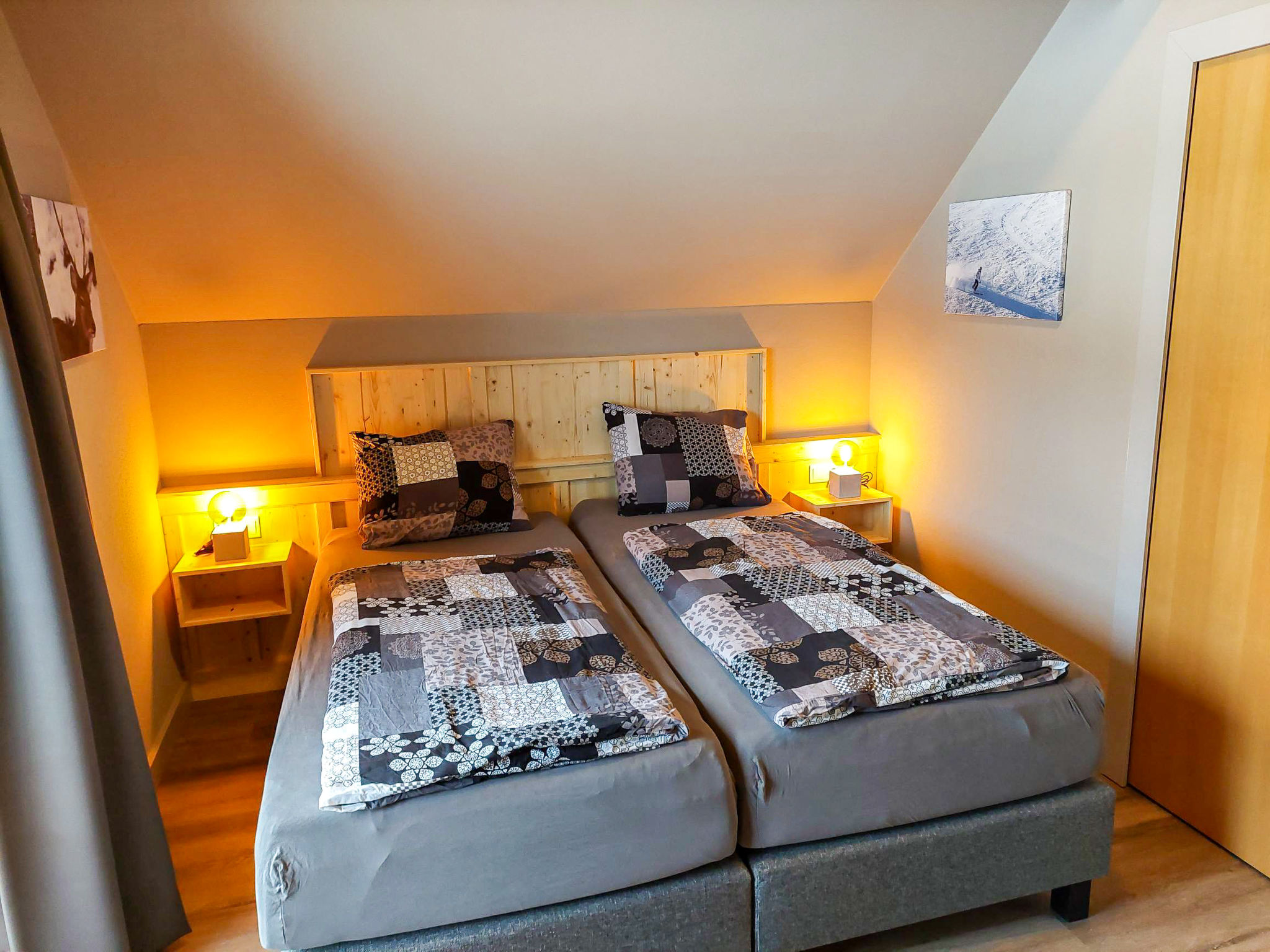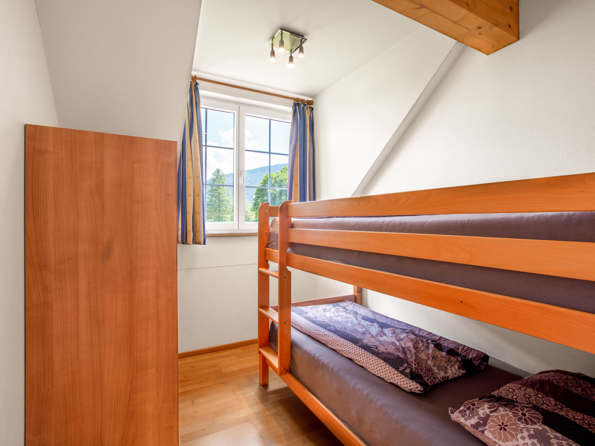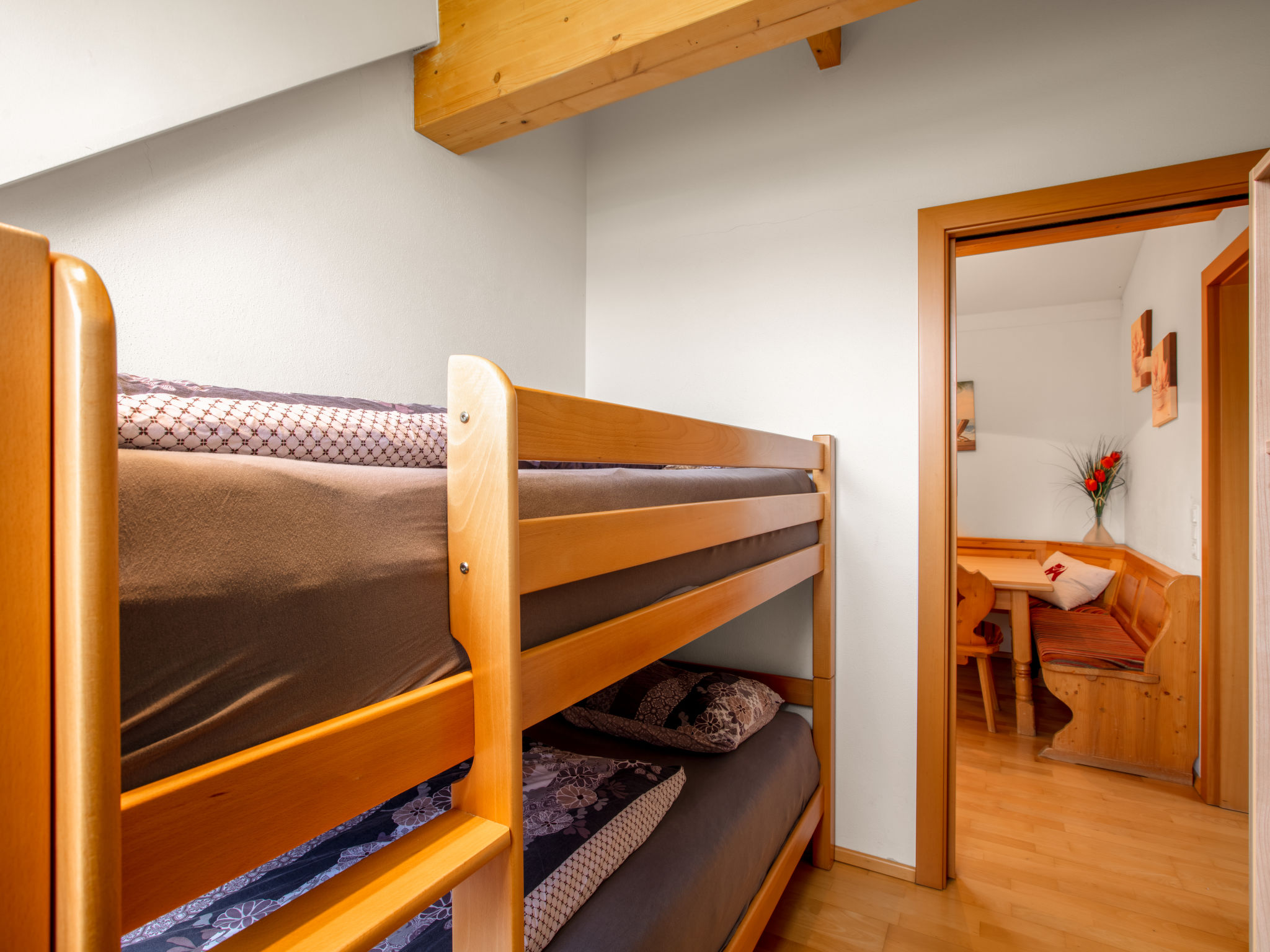 "Top 13", 4-Zimmer-Dachterrassenwohnung 81 m2. Teilweise abgeschrägt, komfortabel und gemütlich eingerichtet: Eingang. Grosses Wohn-/Esszimmer mit 1 Doppeldiwanbett (160 cm), Schwedenofen, Esstisch, Essecke und Sat-TV. Ausgang zur Terrasse. 1 Doppelzimmer mit Schiebetür. Ausgang zum Balkon. 1 Doppelzimmer. 1 Kinderzimmer mit Schiebetür mit 1 x 2 Etagenbetten. Offene Küche (Backofen, Geschirrspüler, 4 Glaskeramikherd Platten, Tiefkühler, elektrische Kaffeemaschine). Bad/Dusche, sep. WC, Doppelwaschbecken. Parkettböden. Terrasse 13 m2. Terrassenmöbel. Panoramasicht auf die Skipiste und die Landschaft. Zur Verfügung: Internet (Wireless LAN, gratis). Garage Nr. 13. Bitte beachten: Nichtraucher-Unterkunft. Feuerlöscher. 50508-025013-2020