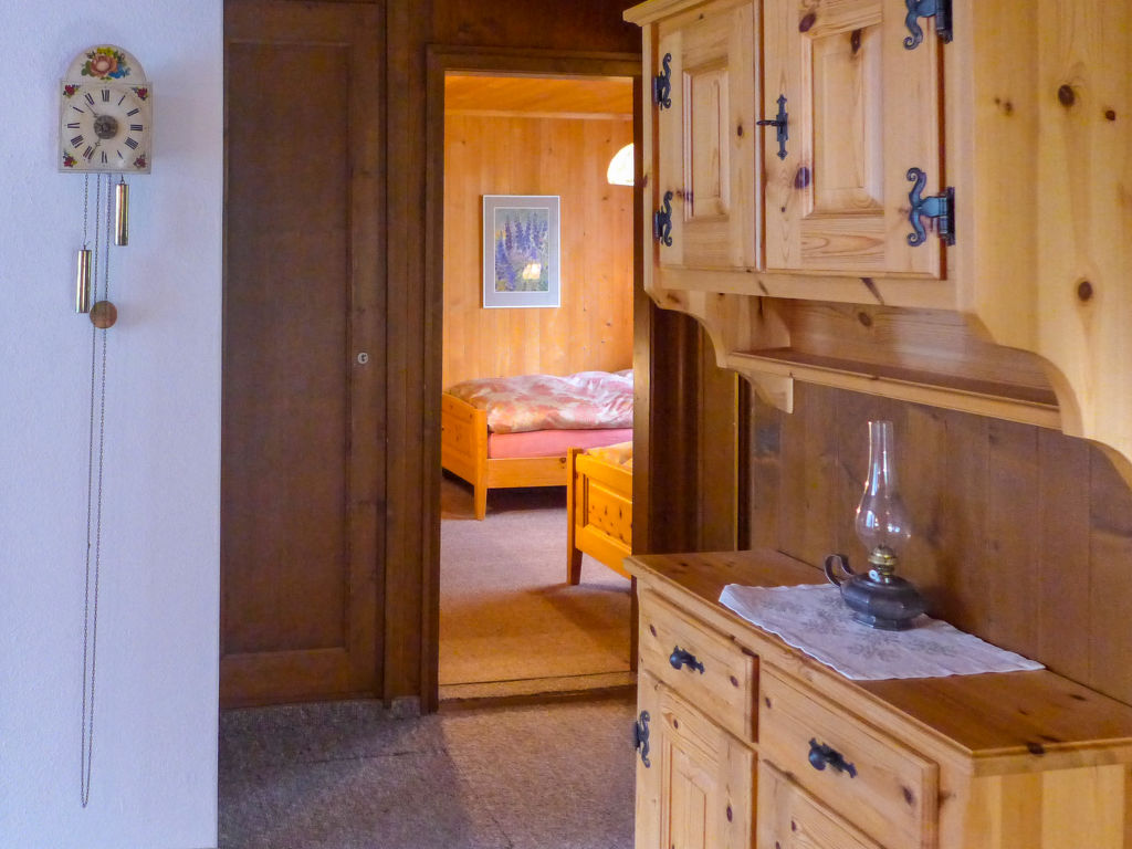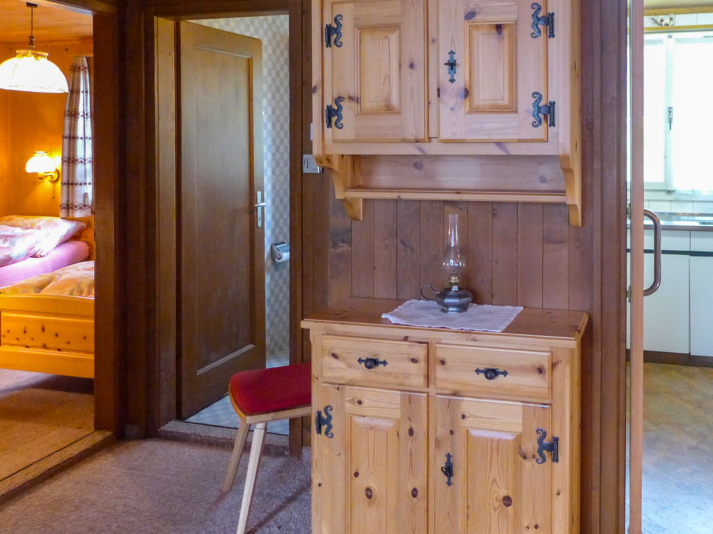 3-Zimmer-Wohnung 50 m2. Objekt geeignet für 2 Erwachsene + 2 Kinder. Gemütlich und mit viel Holz eingerichtet: Wohn-/Esszimmer. Ausgang zum Balkon, Richtung Osten und Richtung Süden. 2 Zimmer, jedes Zimmer mit 2 Betten (90 cm, Länge 200 cm). Offene Küche (3 Kochplatten, Backofen, elektrische Kaffeemaschine, Kapseln für die Kaffeemaschine (Nespresso) extra, Fondue Set (Käse)). Bad/WC. Grosser Balkon. Balkonmöbel. Herrliche Sicht auf die Berge und Fiescherlücke und Eigernordwand. Bitte beachten: geeignet für Familien. Nichtraucher-Unterkunft. Feuerlöscher.