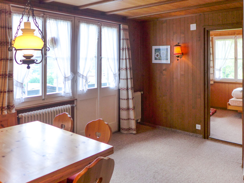 Gemütliches Einfamilienhaus "Chalet Waldhüsli". 1 km vom Zentrum, sonnige Lage, an einer Strasse, Richtung Osten. Zur Alleinbenutzung: naturbelassenes Grundstück. Im Hause: Zentralheizung. Wäschewechsel (zusätzlich extra). Wohnungsreinigung (extra). Im Winter bitte Schneeketten mitbringen. Parkplatz, Einzelgarage. Einkaufszentrum 1 km, Restaurant 1 km, Bäckerei 800 m, Zentrum zu Fuss in 10 Minuten erreichbar, Bushaltestelle "Lauberhorn" 50 m, Bahnstation "Grindelwald Dorf" 1.4 km, Freibad 2.5 km, Hallenbad 1.3 km. Golfplatz (9 Loch) 2.5 km, Tennis 2 km, Minigolf 1.2 km, Sportzentrum 1.3 km, Bergbahn 1.4 km, Gondelbahn 1 km, Skibushaltestelle 50 m, Langlaufloipe 2 km, Kinderspielplatz 1.3 km. Bekannte Seen in der Umgebung sind gut erreichbar: Thuner-/Brienzersee 19 km. Bitte beachten: Gratis Skibus.