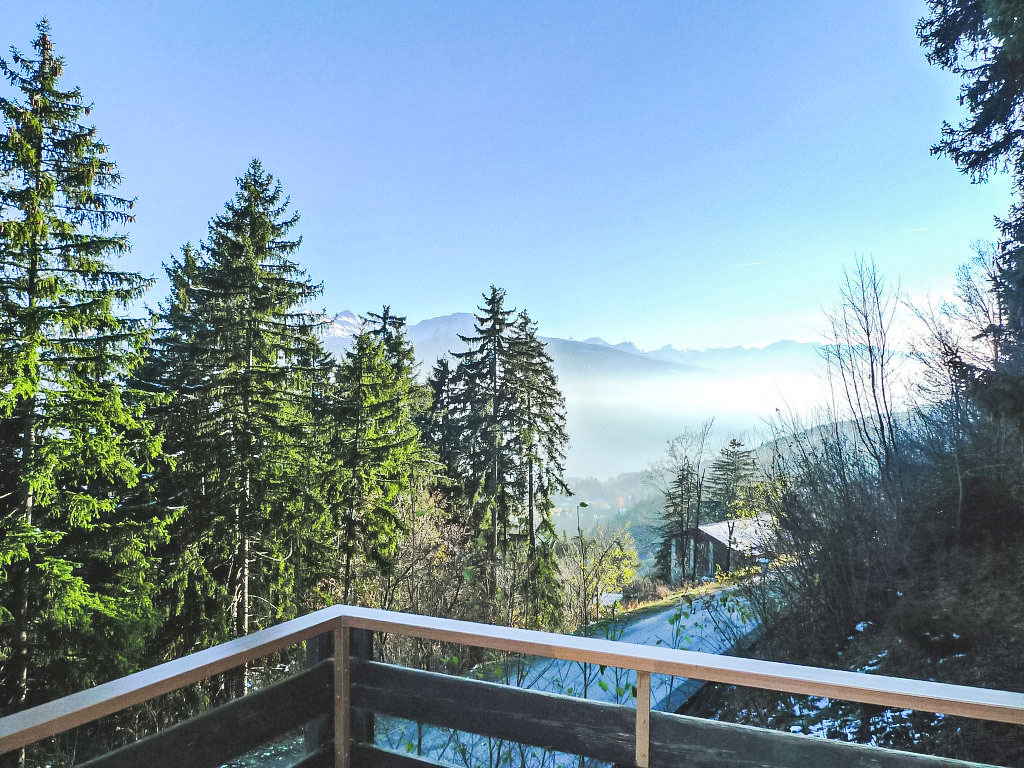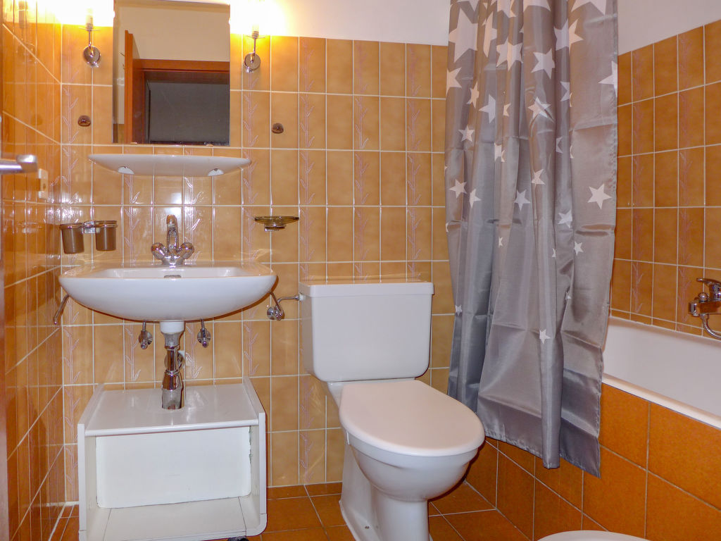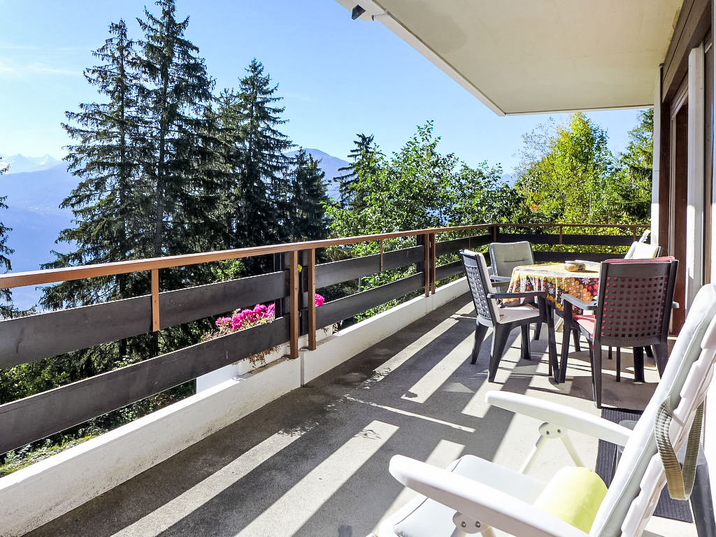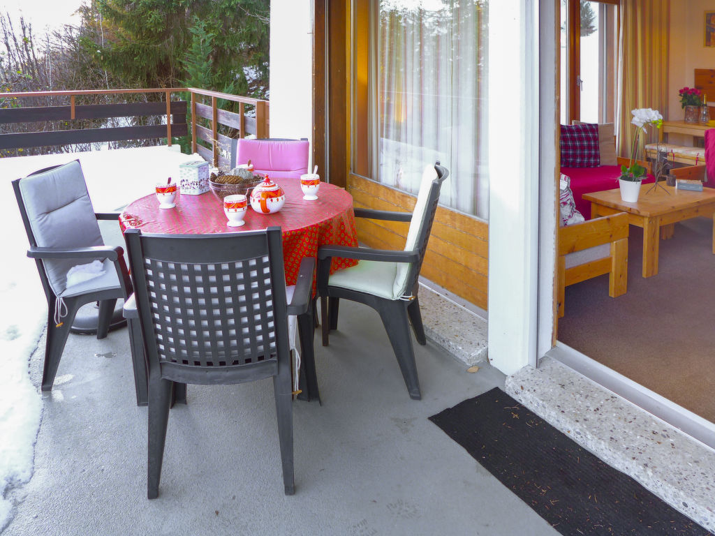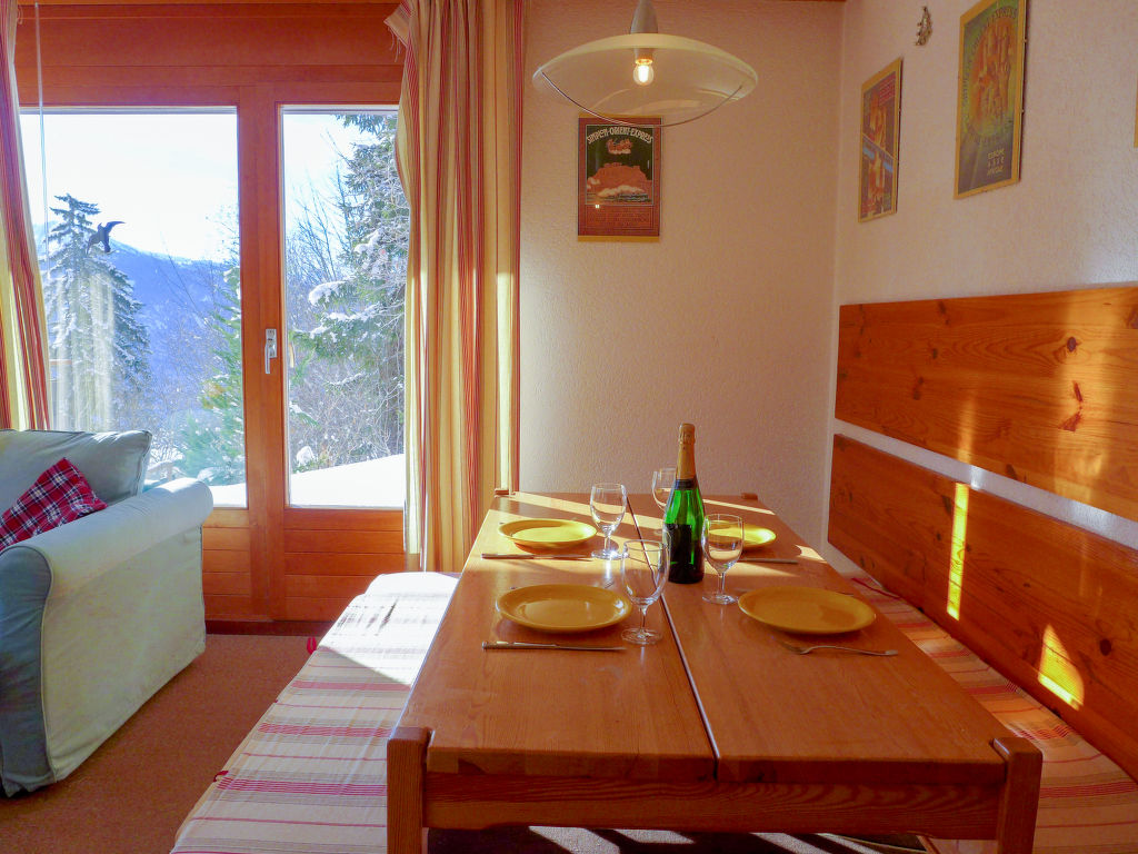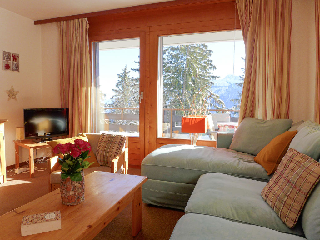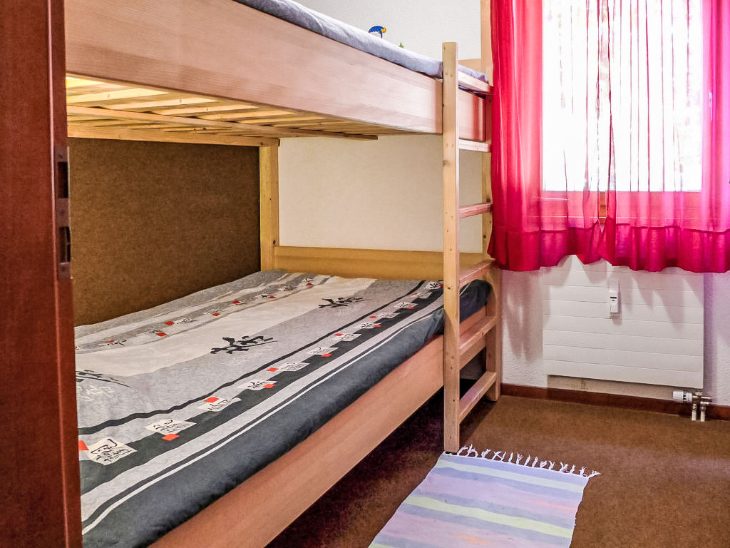 3-Zimmer-Wohnung 70 m2, im erhöhten Erdgeschoss. Wohn-/Esszimmer mit Kabel-TV und Flachbildschirm. Ausgang zum Balkon, Richtung Süden und Richtung Westen. 1 Zimmer mit 1 franz. Bett (180 cm, Länge 200 cm). Ausgang zum Balkon, Richtung Süden und Richtung Westen. 1 kleines Zimmer mit 1 x 2 Etagenbetten (120 cm, Länge 200 cm). Kochnische (3 Kochplatten, Backofen, Geschirrspüler, Toaster, Wasserkocher, Mikrowelle, elektrische Kaffeemaschine, Kapseln für die Kaffeemaschine (Nespresso) extra, Racletteofen, Fondue Set (Chinoise, Käse)). Bad/Bidet/WC, Dusche/WC. Grosser Balkon, Südlage und Westlage. Terrassenmöbel. Sicht auf den Wald. Zur Verfügung: Haartrockner. Internet (Wireless LAN, gratis). Bitte beachten: Nichtraucher-Unterkunft. Maximal 1 Haustier/Hund erlaubt. Westausgang über den Balkon: direkter Zugang zum Wald.