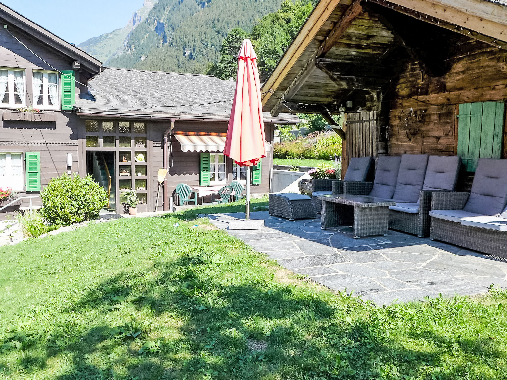 Schönes, gemütliches Mehrfamilienhaus "Chalet Schwendihus". Im Ortsteil Schwendi, ausserhalb des Ortes, 2.6 km vom Zentrum, an einer Hauptstrasse, Richtung Süden. Zur Mitbenutzung: Garten. Sitzplatz. Im Hause: Wireless LAN, Skiraum, Zentralheizung. Wäschewechsel (zusätzlich extra). Handtuchwechsel (zusätzlich extra). Im Winter bitte Schneeketten mitbringen. Parkplatz beim Haus, Gemeinschaftsgarage (extra). Einkaufszentrum 2.6 km, Fahrradverleih 3 km, Bahnstation "Schwendi" 300 m, Freibad 2 km, Hallenbad 2.7 km. Golfplatz (9 Loch) 4 km, Tennis 3.5 km, Minigolf 2.9 km, Sportzentrum 2.7 km, Bergbahn 2 km, Gondelbahn 2 km, Skiverleih 2 km, Langlaufloipe 300 m, Kinderspielplatz 2.7 km. Bekannte Seen in der Umgebung sind gut erreichbar: Thuner-/Brienzersee 15 km. Bitte beachten: Fahrzeug empfohlen. In diesem Haus sind weitere Ferienwohnungen mietbar. Die Nachbarschaft ist sehr lärmempfindlich. Ruhe und gutes Benehmen wird erwartet.
