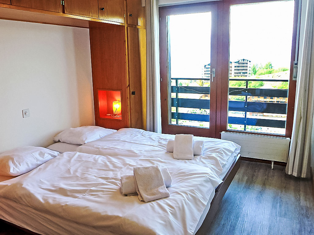 "Christiania I F6", 3-Zimmer-Wohnung 70 m2 im 6. Stock. Eingang mit 1 x 2 Etagenbetten (90 cm, Länge 190 cm). Wohn-/Esszimmer mit offenem Kamin (nur Deko), Kabel-TV und Flachbildschirm. 1 Zimmer mit 2 Betten (90 cm, Länge 190 cm). Ausgang zum Balkon, Richtung Norden. 1 kleines Zimmer mit 2 Betten (90 cm, Länge 190 cm). Küche (3 Kochplatten, Backofen, Mikrowelle, Fondue Set (Käse)). Bad/WC, sep. WC. Balkon, Nordlage Balkon, Ostlage. Schöne Sicht auf die Berge und die Ortschaft. Zur Verfügung: Internet (Wireless LAN, gratis). Garage Nr. 6A, Höhe 190 cm, Breite 210 cm. Bitte beachten: Kühlschrank ohne Gefrierfach, Nichtraucher-Unterkunft. Maximal 1 Haustier/Hund erlaubt.