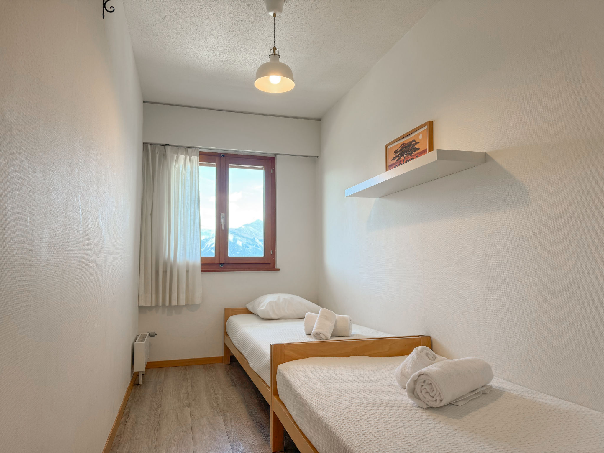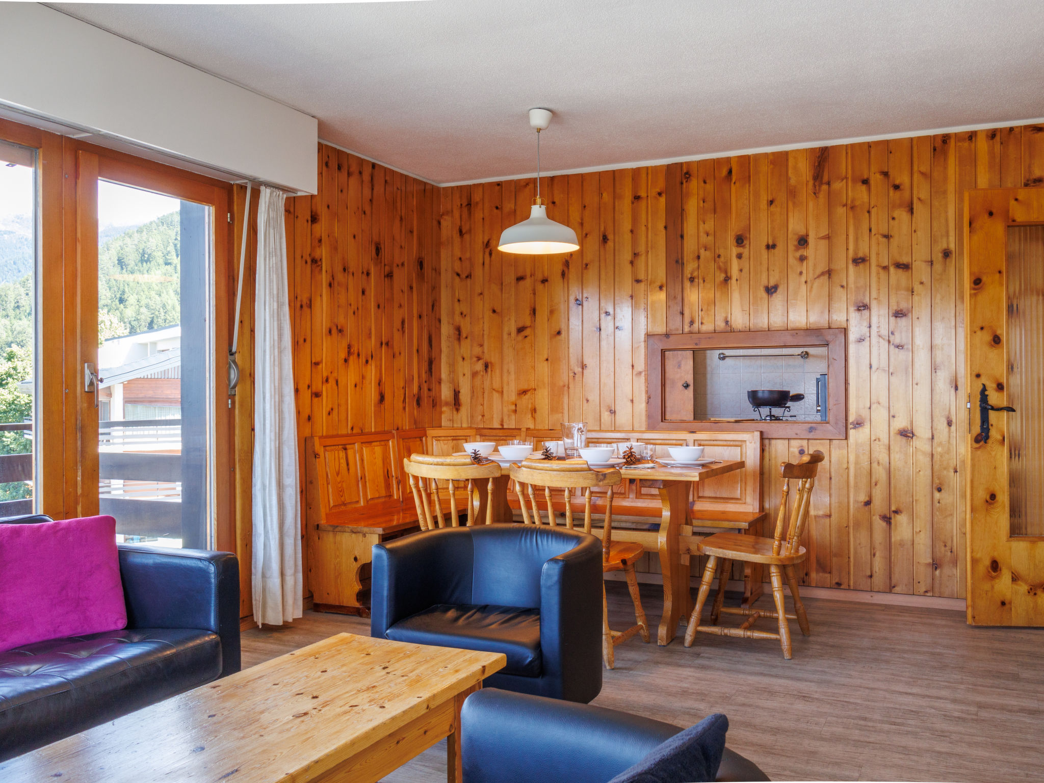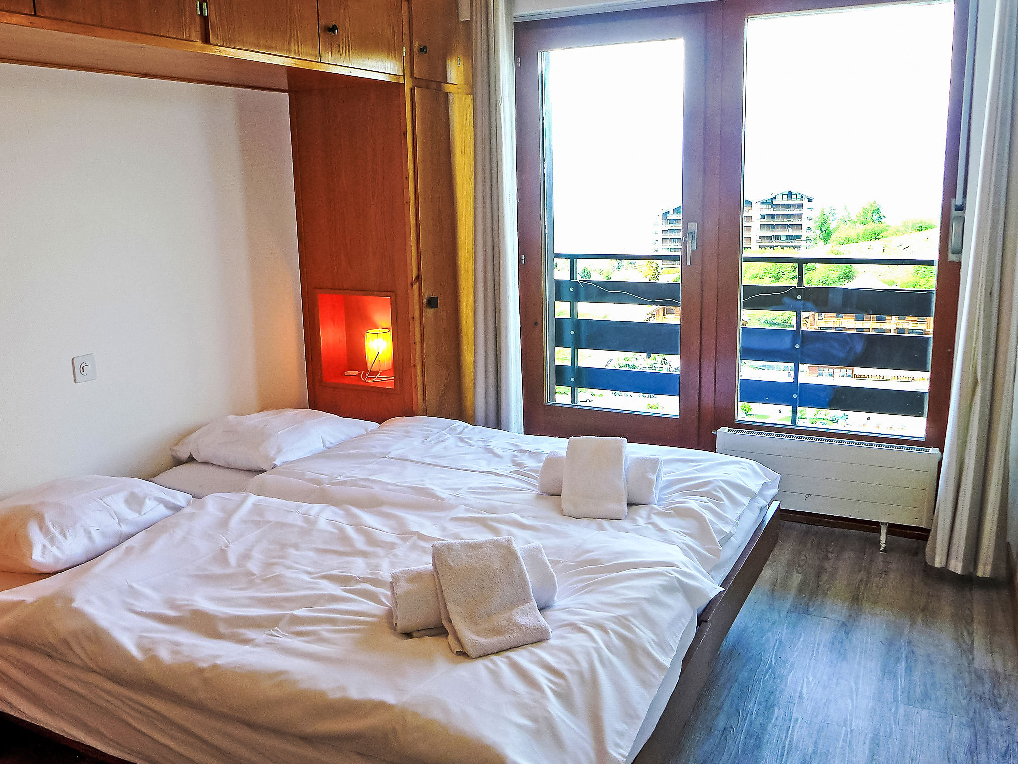 "Christiania I F6", 3-Zimmer-Wohnung 70 m2 im 6. Stock. Eingang mit 1 x 2 Etagenbetten (90 cm, Länge 190 cm). Wohn-/Esszimmer mit offenem Kamin (nur Deko), Kabel-TV und Flachbildschirm. 1 Zimmer mit 2 Betten (90 cm, Länge 190 cm). Ausgang zum Balkon, Richtung Norden. 1 kleines Zimmer mit 2 Betten (90 cm, Länge 190 cm). Küche (3 Kochplatten, Backofen, Mikrowelle, Fondue Set (Käse)). Bad/WC, sep. WC. Balkon, Nordlage Balkon, Ostlage. Schöne Sicht auf die Berge und die Ortschaft. Zur Verfügung: Internet (Wireless LAN, gratis). Garage Nr. 6A, Höhe 190 cm, Breite 210 cm. Bitte beachten: Kühlschrank ohne Gefrierfach, Nichtraucher-Unterkunft. Maximal 1 Haustier/Hund erlaubt.