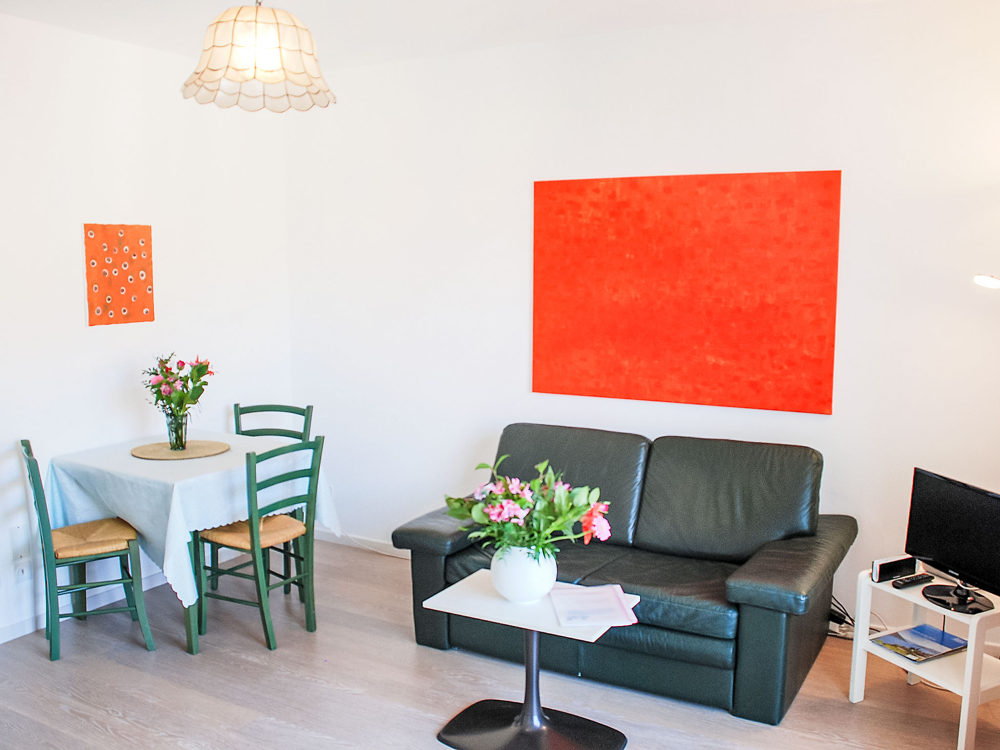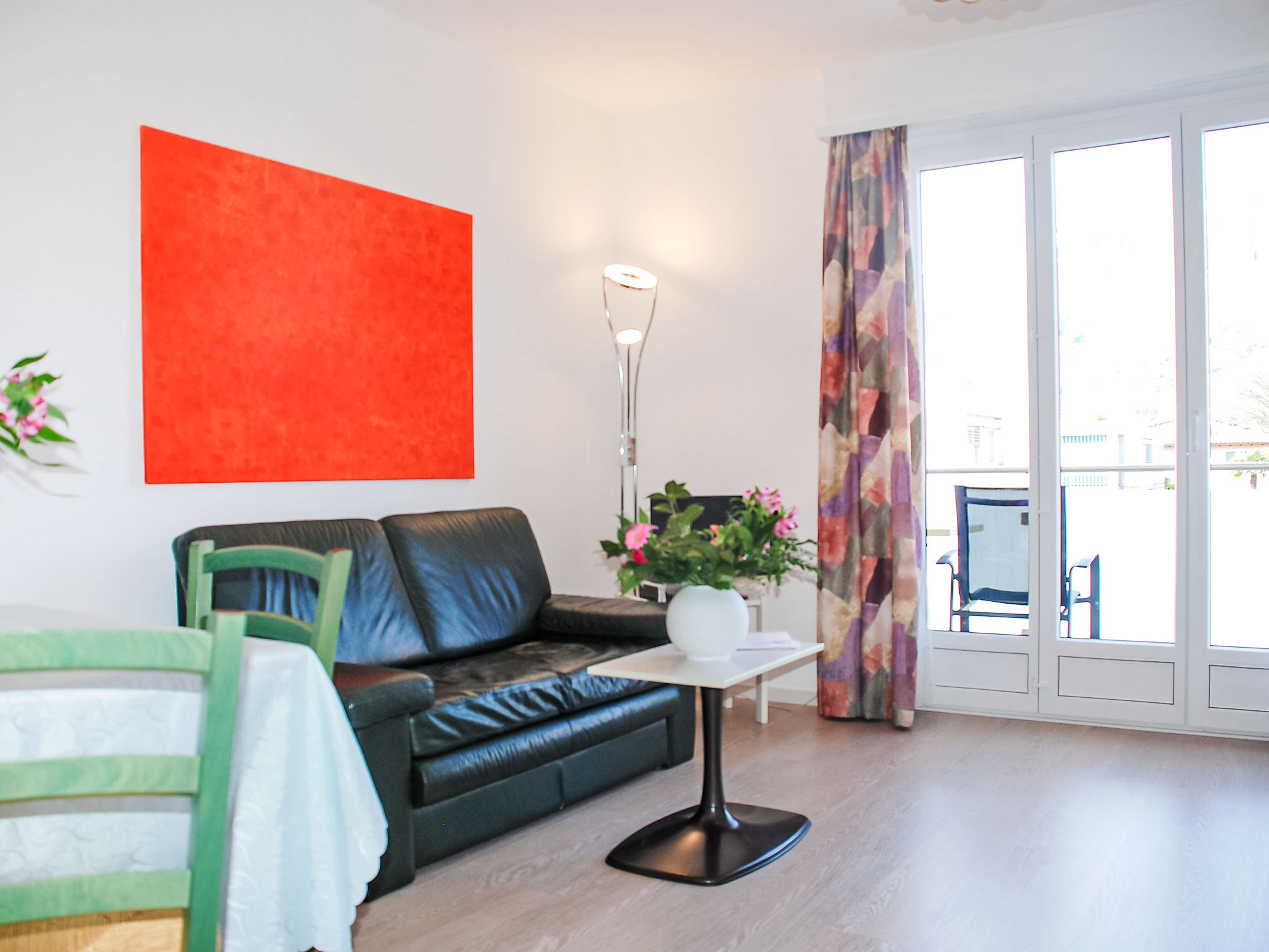 1-Zimmer-Wohnung 29 m2 im 2. Stock. Hell, teilweise renoviert im Jahre 2015, komfortabel und gemütlich eingerichtet: Wohn-/Esszimmer mit 2 Wandschrankbetten (90 cm, Länge 200 cm), Esstisch, Kabel-TV, Flachbildschirm und Radio. Ausgang zum Balkon. Kochnische im Eingang (2 Glaskeramikherd Platten). Dusche/WC. Heizung. Balkon. Balkonmöbel. Bitte beachten: Nichtraucher-Unterkunft. Maximal 1 Haustier/Hund erlaubt. Eine Kaffeemaschine von Tassimo kann an der Reception zu einem Mietpreis von CHF 10.- (exclusiv Kapseln) gemietet werden.
