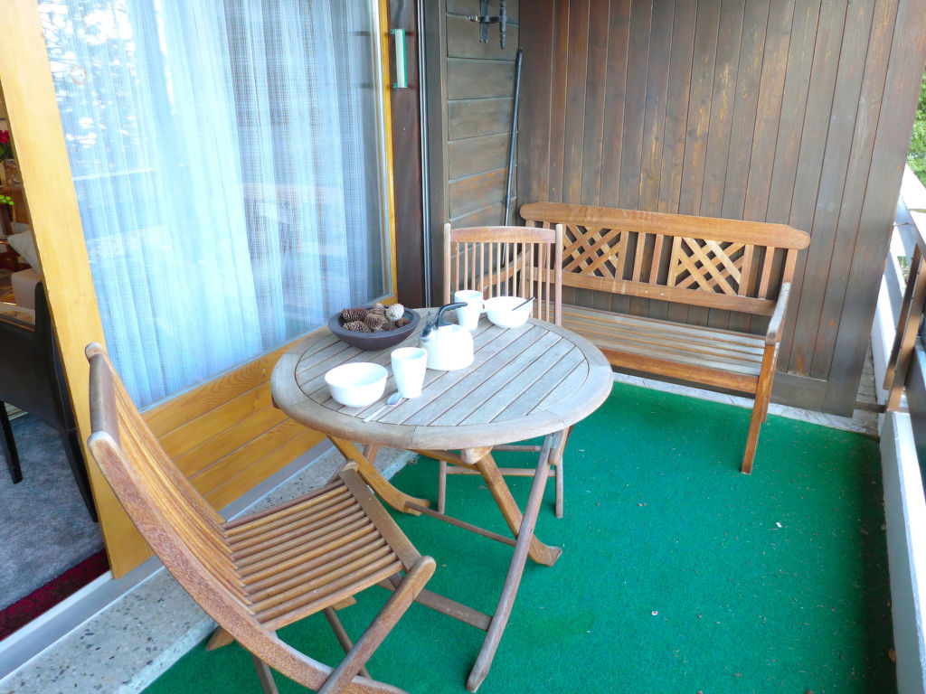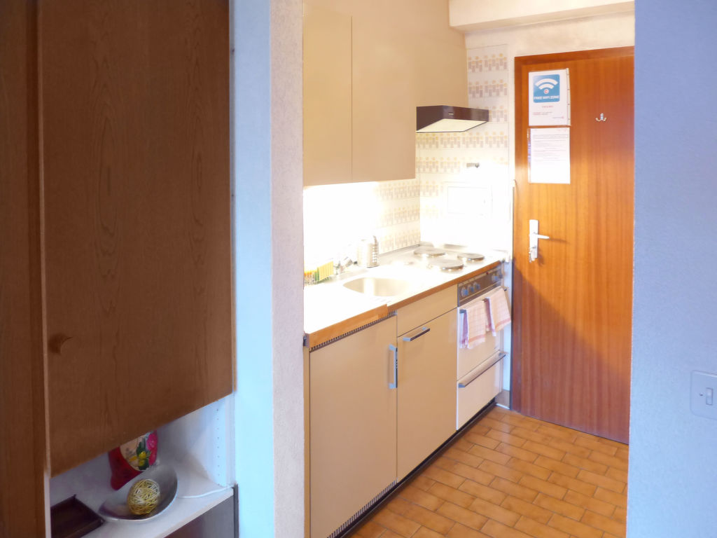 1-Zimmer-Wohnung 28 m2 im 2. Stock. Wohn-/Esszimmer mit 1 Doppelwandschrankbett (2 x 90 cm, Länge 190 cm), Kabel-TV (Flachbildschirm), Radio und DVD. Kochnische im Eingang (3 Kochplatten, Backofen, Toaster, Wasserkocher, elektrische Kaffeemaschine, Kapseln für die Kaffeemaschine (Nespresso) extra, Fondue Set (Chinoise)). Dusche/WC. Balkon, Südlage. Zur Verfügung: Haartrockner. Internet (Wireless LAN, gratis). Bitte beachten: Nichtraucher-Unterkunft. Nespresso-Kaffemaschine.