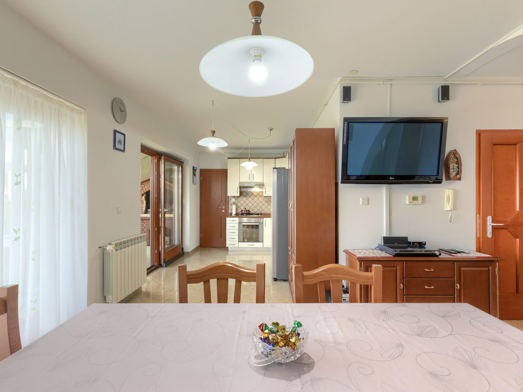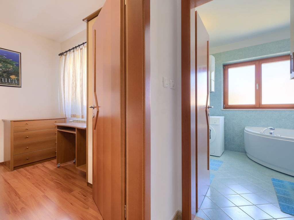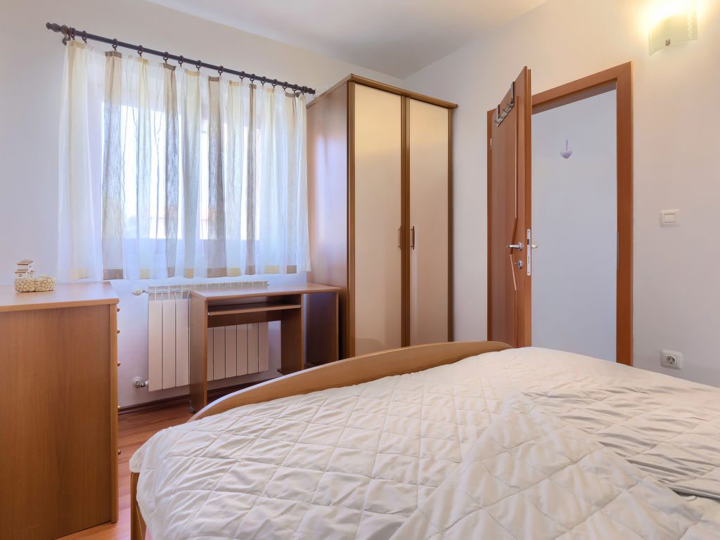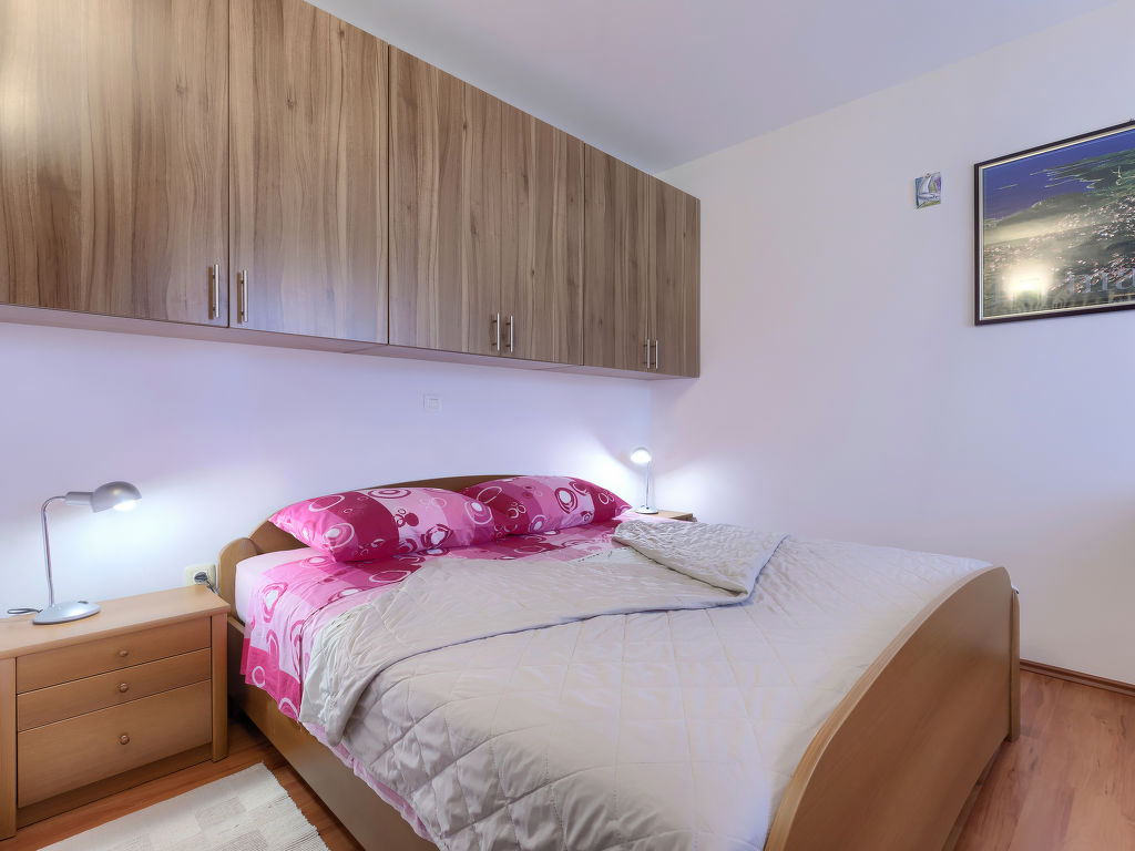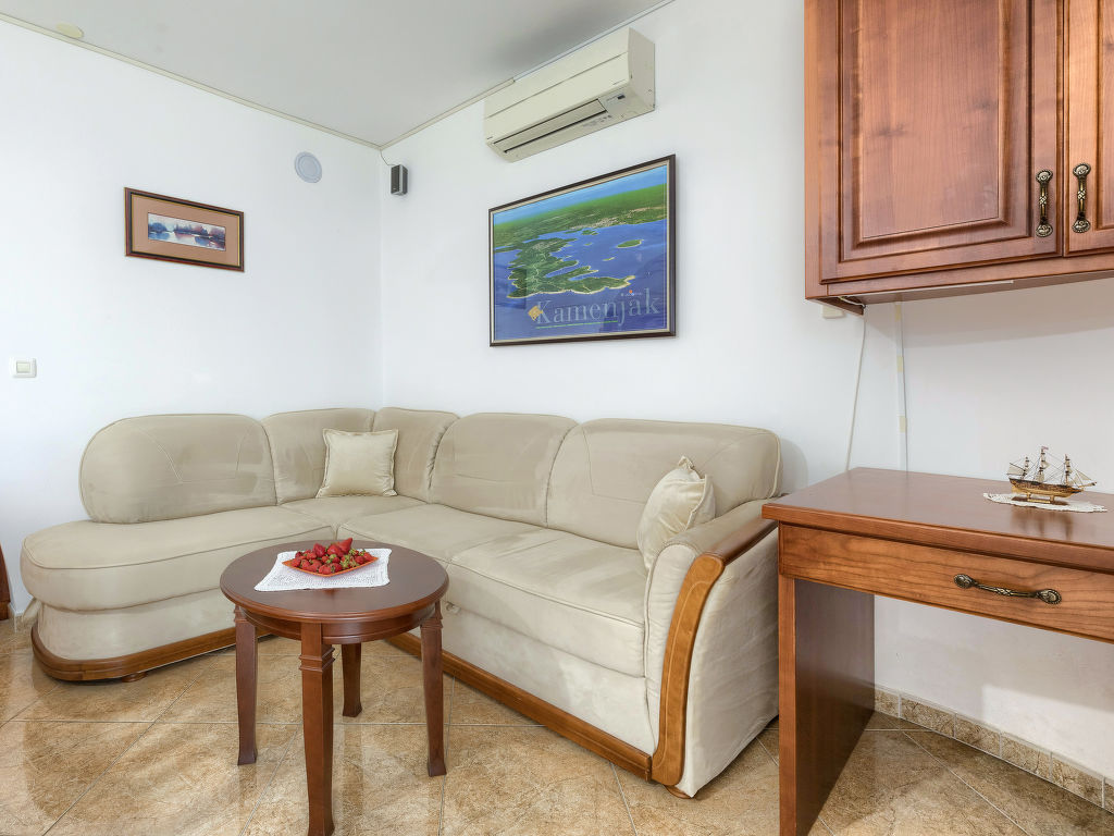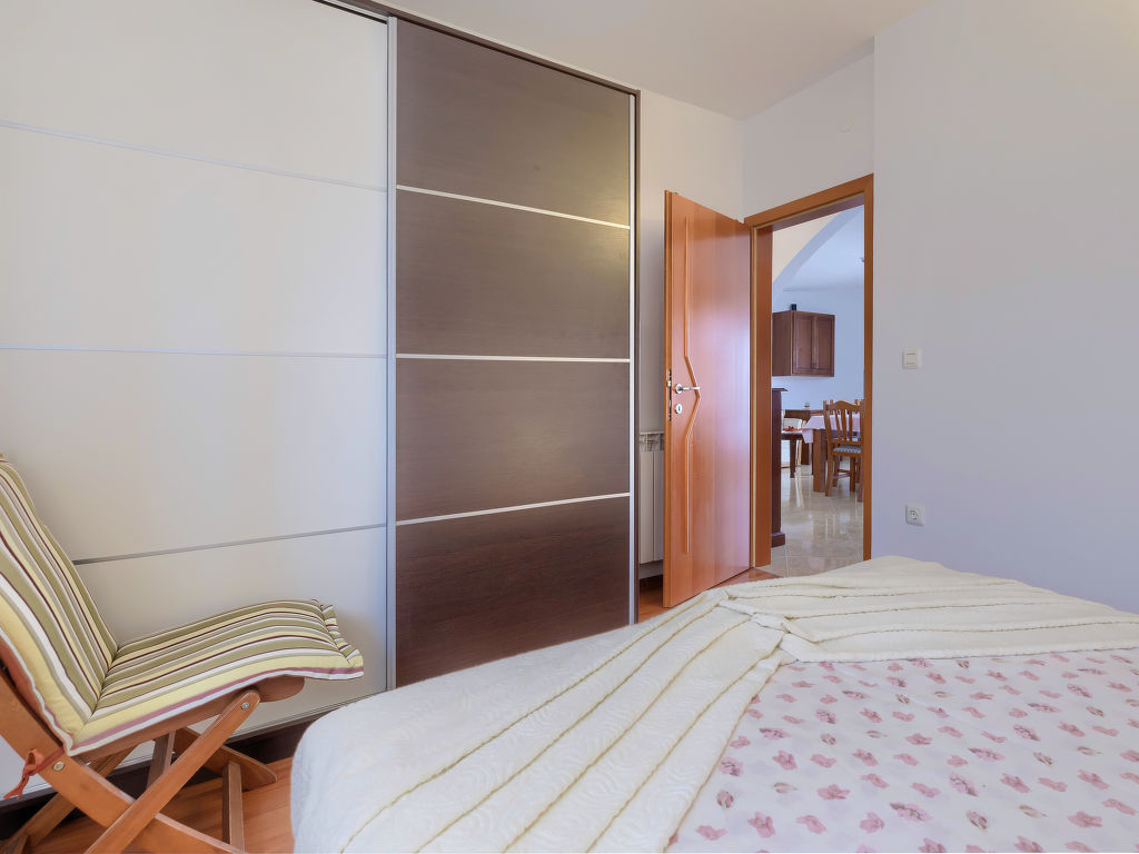 3-Zimmer-Wohnung 70 m2 im 2. Stock. Wohn-/Esszimmer 35 m2 mit 1 Doppeldiwanbett (140 cm, Länge 200 cm), Sat-TV (Flachbildschirm), Klimaanlage. Ausgang zur Terrasse. 1 Zimmer mit 1 franz. Bett (160 cm, Länge 200 cm). 1 Zimmer mit 1 franz. Bett (180 cm, Länge 200 cm). Offene Küche (1 Kochplatte, Backofen, Geschirrspüler, 3 Flammen, Wasserkocher, Mikrowelle, Tiefkühler, elektrische Kaffeemaschine). Ausgang zur Veranda. Bad/Bidet/WC, Whirlbadewanne. Terrasse 15 m2, überdacht. Terrassenmöbel, Gartengrill. Eingeschränkte Sicht auf das Meer. Zur Verfügung: Waschmaschine, Haartrockner. Internet (Wireless LAN, gratis). Parkplatz (2 Autos). 1 Haustier/Hund erlaubt.