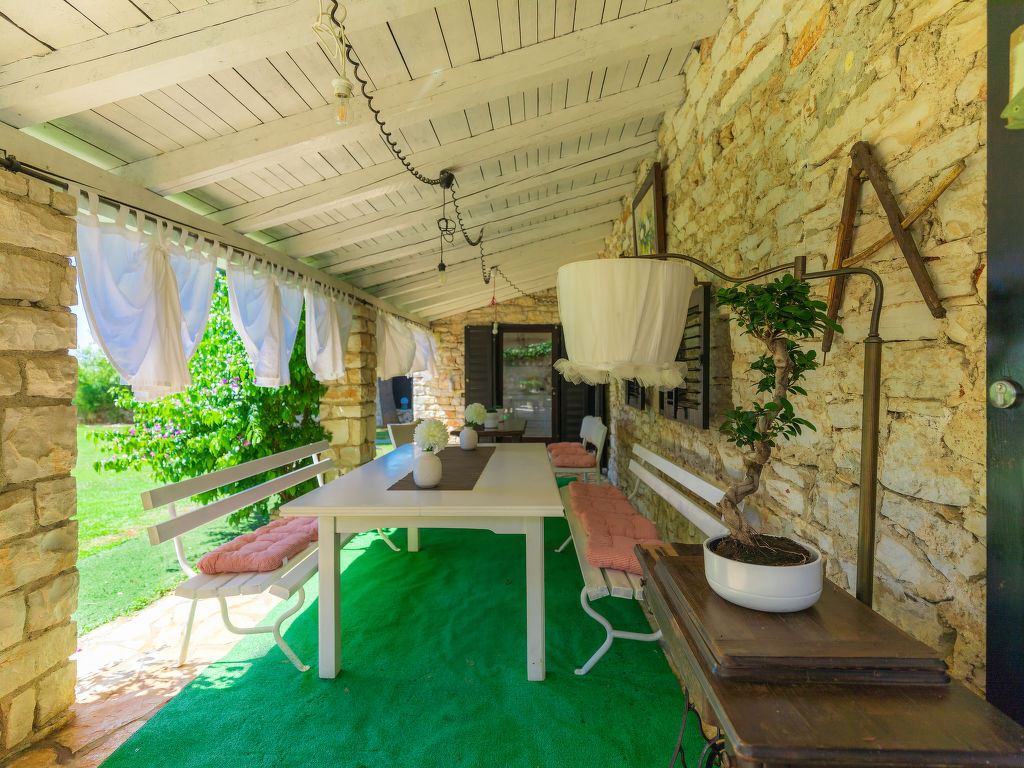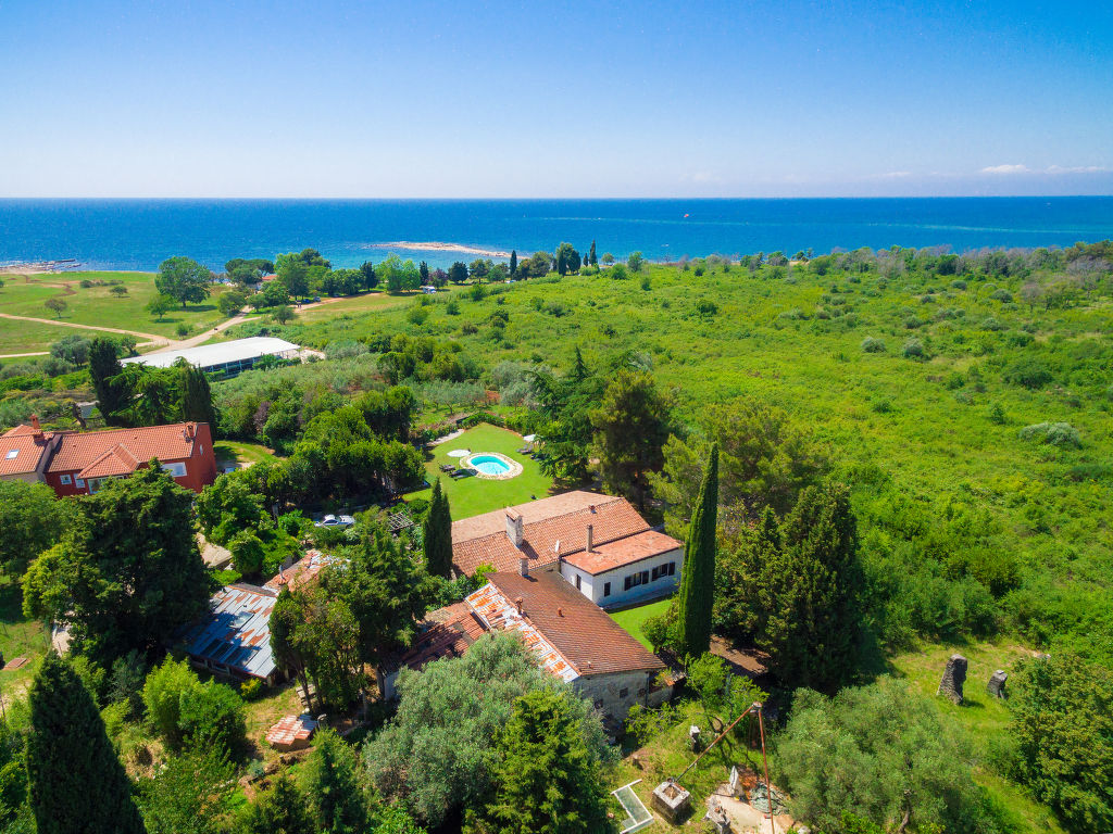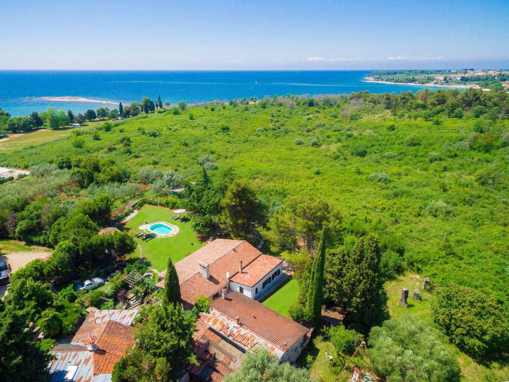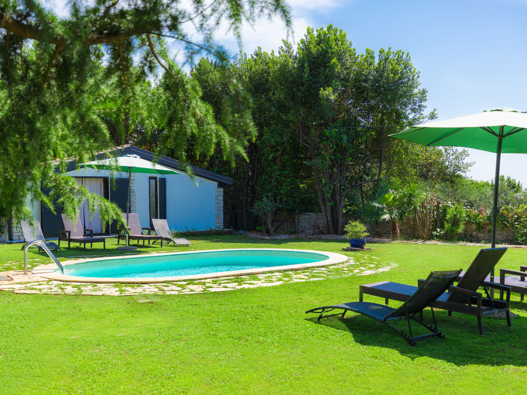 Schöne Villa "Moira". 2 km vom Zentrum von Umag, sonnige Lage, 160 m vom Meer, 160 m vom Strand, im Grünen. Zur Alleinbenutzung: Grundstück 1'600 m2 (eingezäunt), schöner, gepflegter Garten mit Rasen, Schwimmbad nicht einsehbar (25 m2, 140 cm tief, 04.05.-10.10.). Grill. Im Hause: Internetzugang, Waschmaschine. Parkplatz beim Haus auf dem Grundstück. Einkaufsgeschäft 150 m, Restaurant 50 m, Kieselstrand 160 m, Felsstrand 250 m. Golfplatz 2.5 km, Tennis 70 m, Wanderwege ab Haus, Radweg 200 m. Die Fehrienunterkunft besteht aus dem Haupthaus und 3 kleinen, alleinliegenden Häusern, die als eine Einheit vermietet werden.