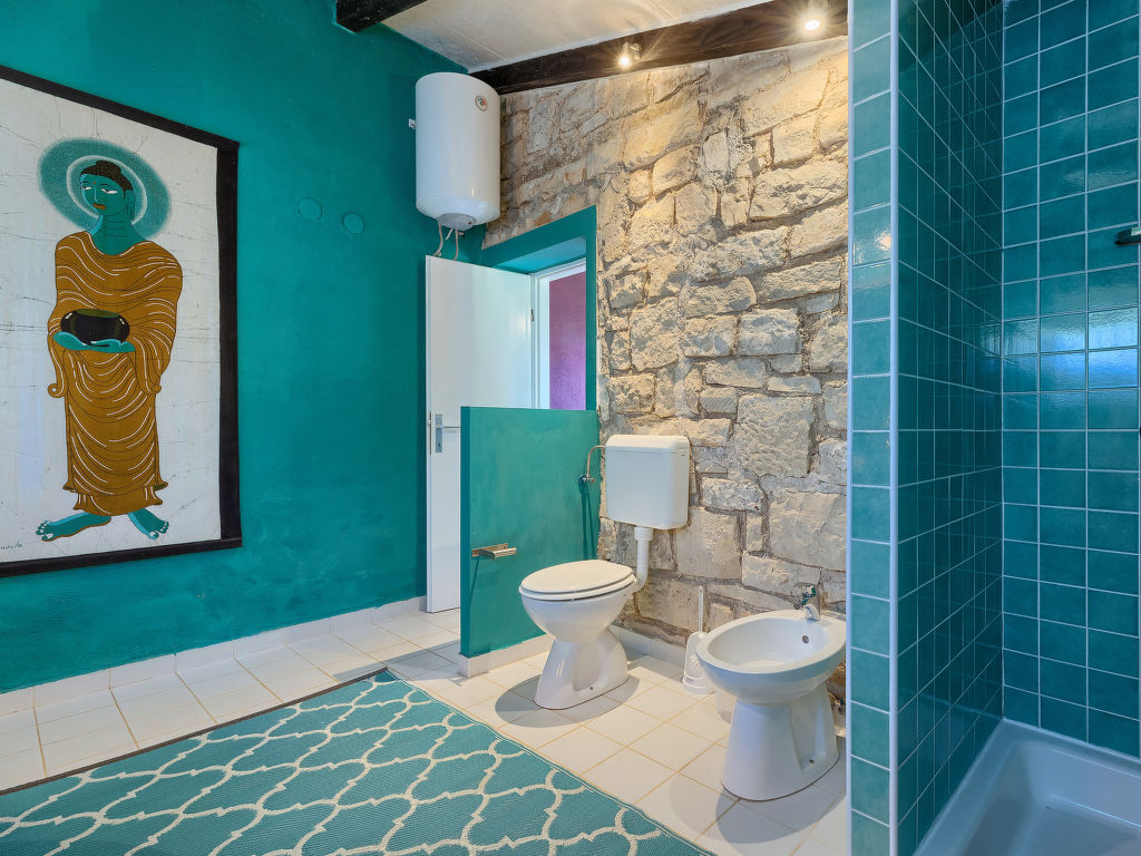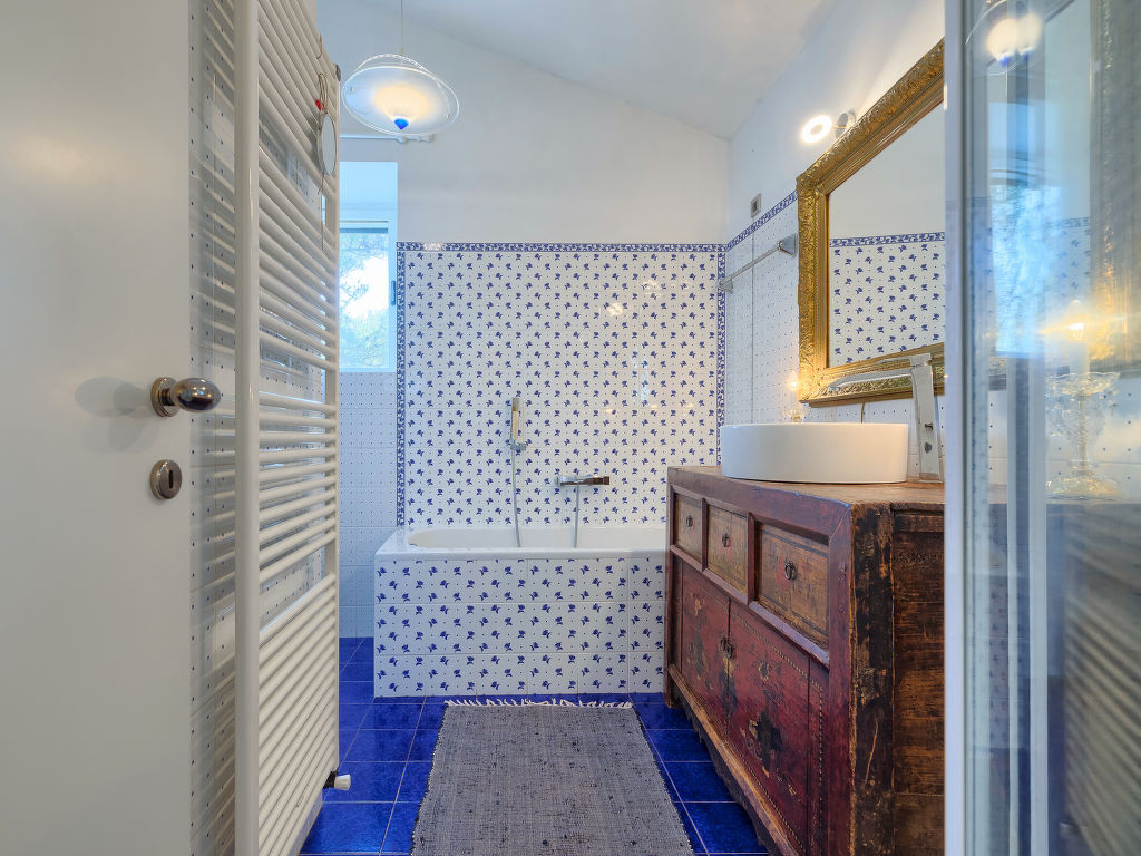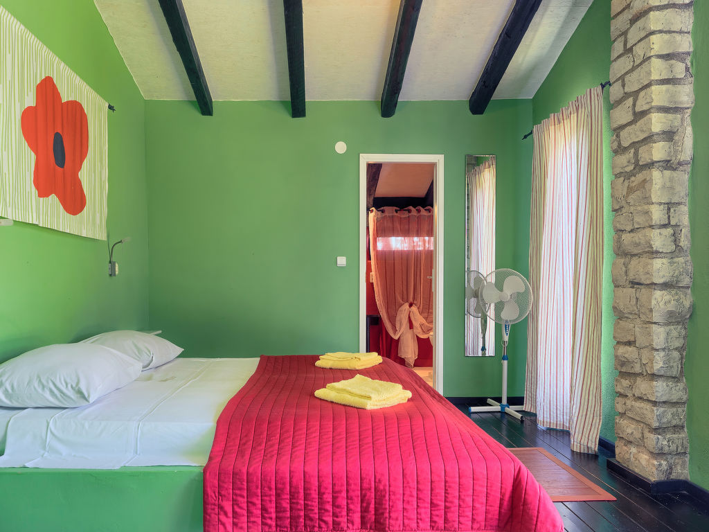 5-Zimmer-Villa 265 m2. Komfortabel eingerichtet: Wohn-/Esszimmer mit offenem Kamin und Sat-TV (Flachbildschirm), Klimaanlage. Ausgang zur Terrasse. 1 Zimmer mit 1 franz. Bett (180 cm, Länge 200 cm). 1 Zimmer 25 m2 mit 1 Doppelbett (2 x 90 cm, Länge 200 cm), Dusche/WC. 1 Zimmer 25 m2 mit 1 franz. Bett (160 cm, Länge 200 cm), Dusche/Bidet/WC. 1 Zimmer 20 m2 mit 1 franz. Bett (180 cm, Länge 200 cm), Dusche/WC. Offene Küche (4 Kochplatten, Backofen, Geschirrspüler, Tiefkühler). Sep. WC, Bad/Dusche/Bidet/WC. Terrasse 40 m2, überdacht. Terrassenmöbel, Liegestühle. Sicht auf das Meer und das Schwimmbad. Zur Verfügung: Safe. Internet (Wireless LAN, gratis). 1 Haustier/Hund erlaubt. Das Haupthaus mit Wohn-/Essbereich, eine offene Küche und ein Schlafzimmer. 3 separate Häuser mit je 1 Schlafzimmer.