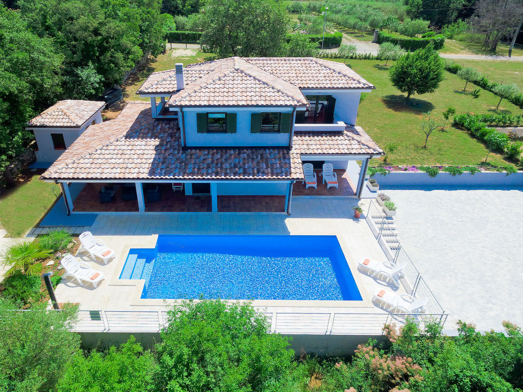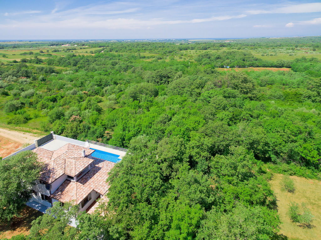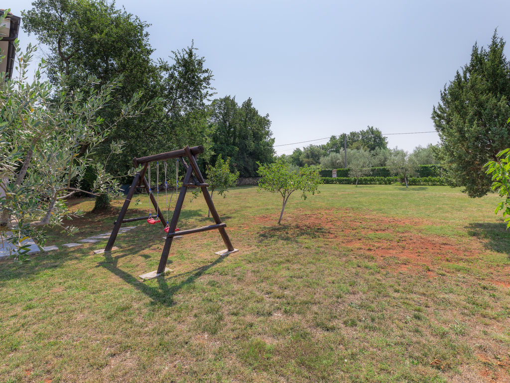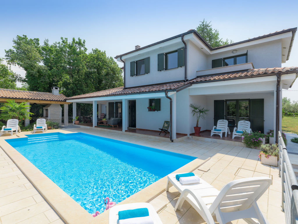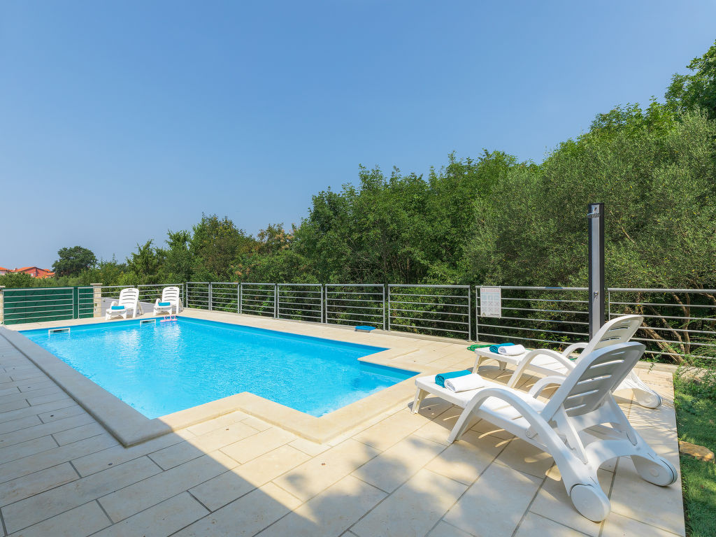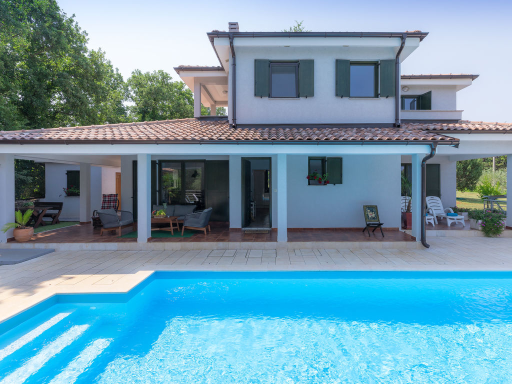 Murine: Einfamilienhaus "Fratrici", auf 2 Stockwerken. Im Weiler Fratrici, 1 km vom Zentrum von Murine, 2.5 km vom Zentrum von Umag, ruhige, sonnige Lage, 2.5 km vom Meer, 2.5 km vom Strand, in einer Sackgasse. Zur Alleinbenutzung: Grundstück 1'700 m2 (eingezäunt), Garten mit Rasen und Pflanzen, Schwimmbad eckig (8 x 4 m, 100 - 140 cm tief, 27.04.-26.10.) mit Innentreppe. Aussendusche, Gartenmöbel, Grill (Schaukel). Im Hause: Internetzugang, Waschmaschine. Parkplatz (für 3 Autos) beim Haus auf dem Grundstück. Einkaufsgeschäft, Restaurant 500 m, Kieselstrand 2.5 km, Felsstrand 2.5 km. Tennis 2.5 km, Wanderwege ab Haus, Radweg 200 m.