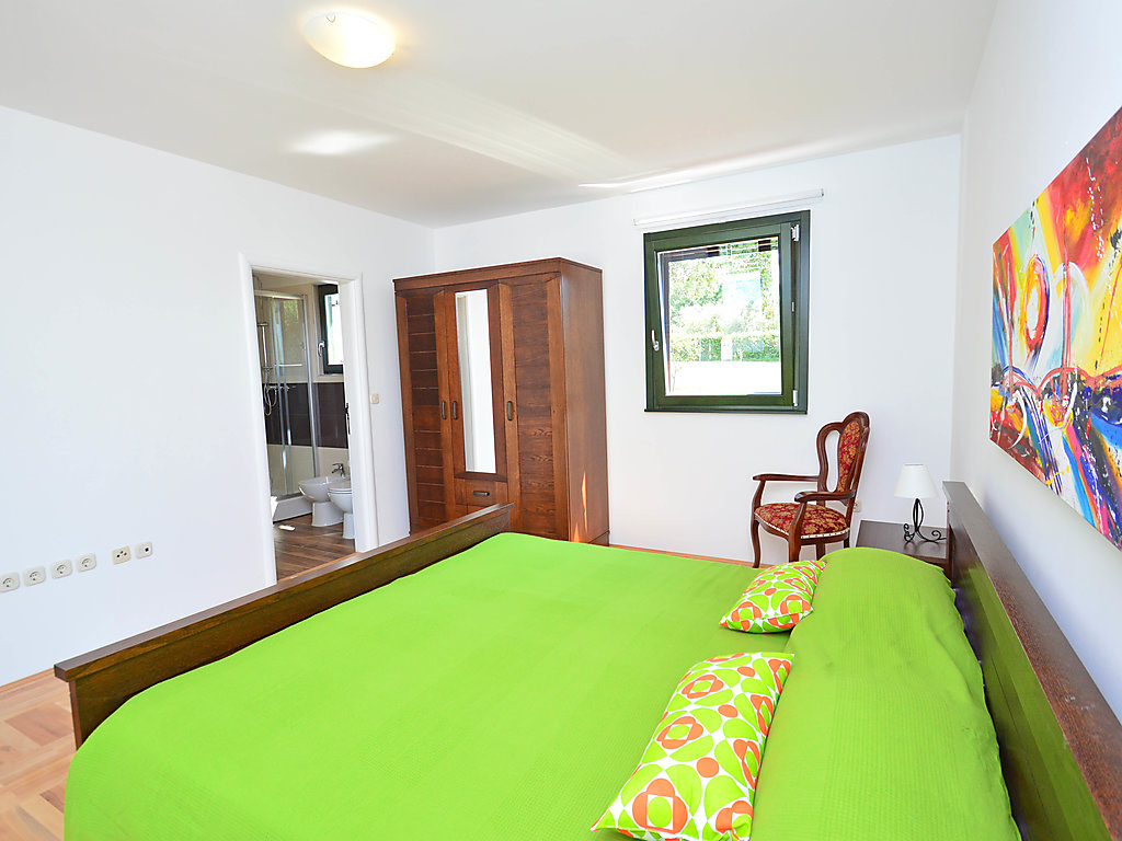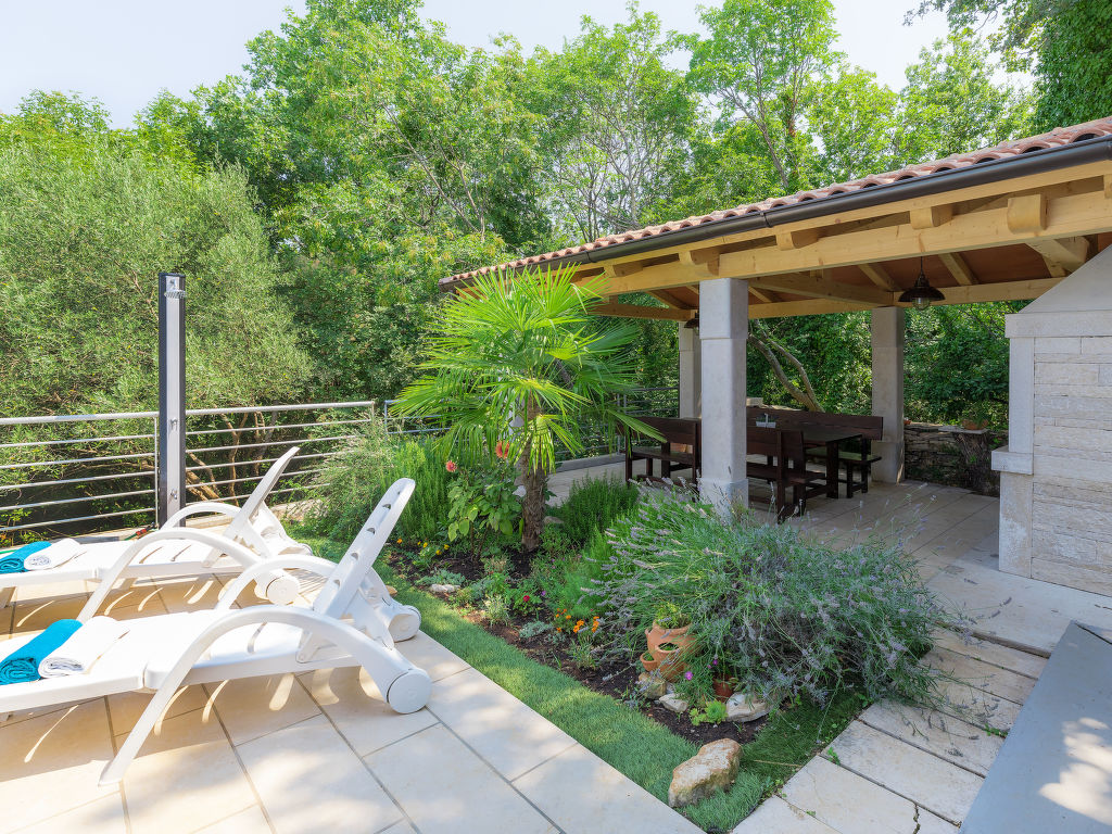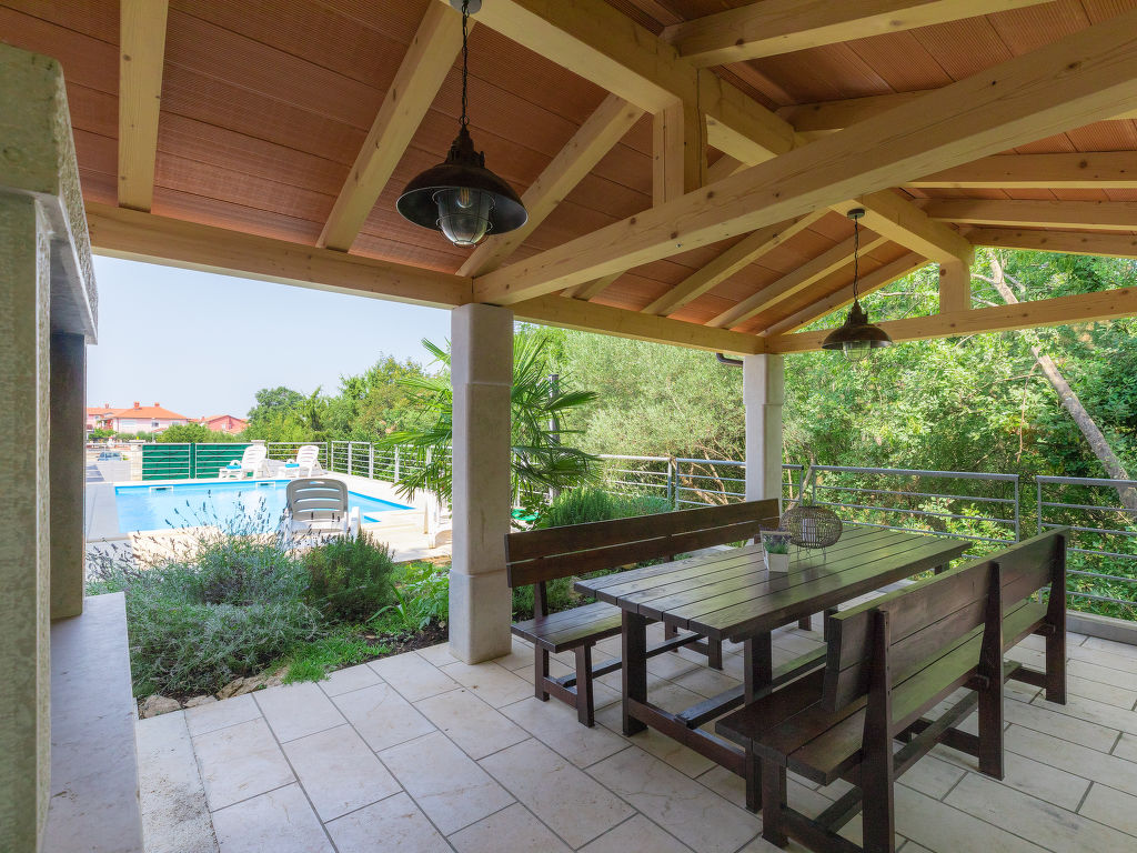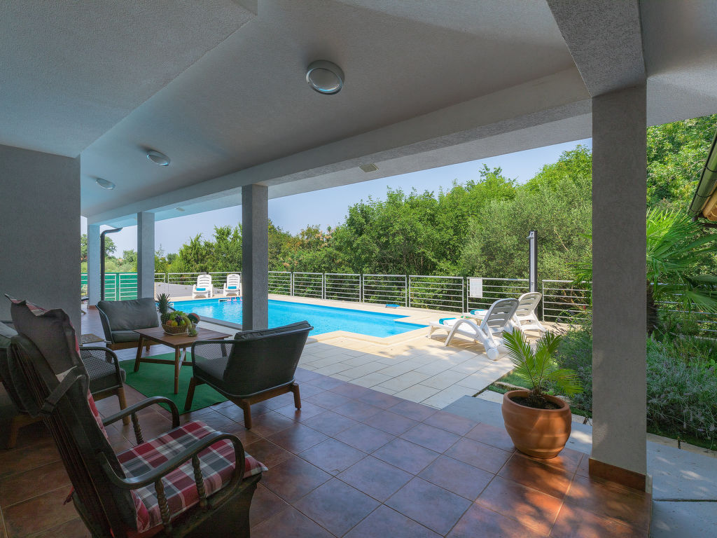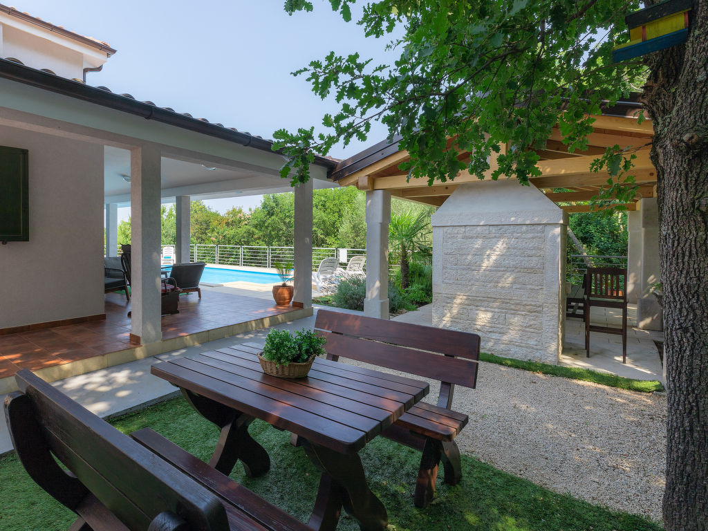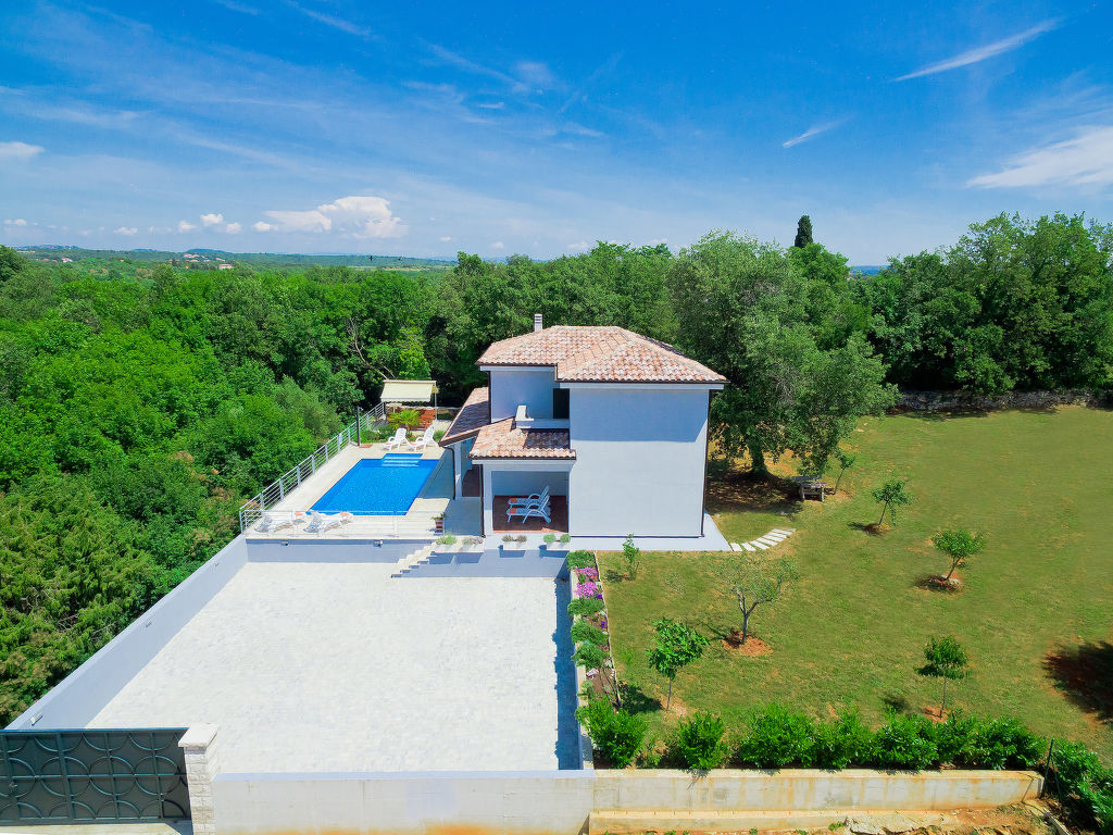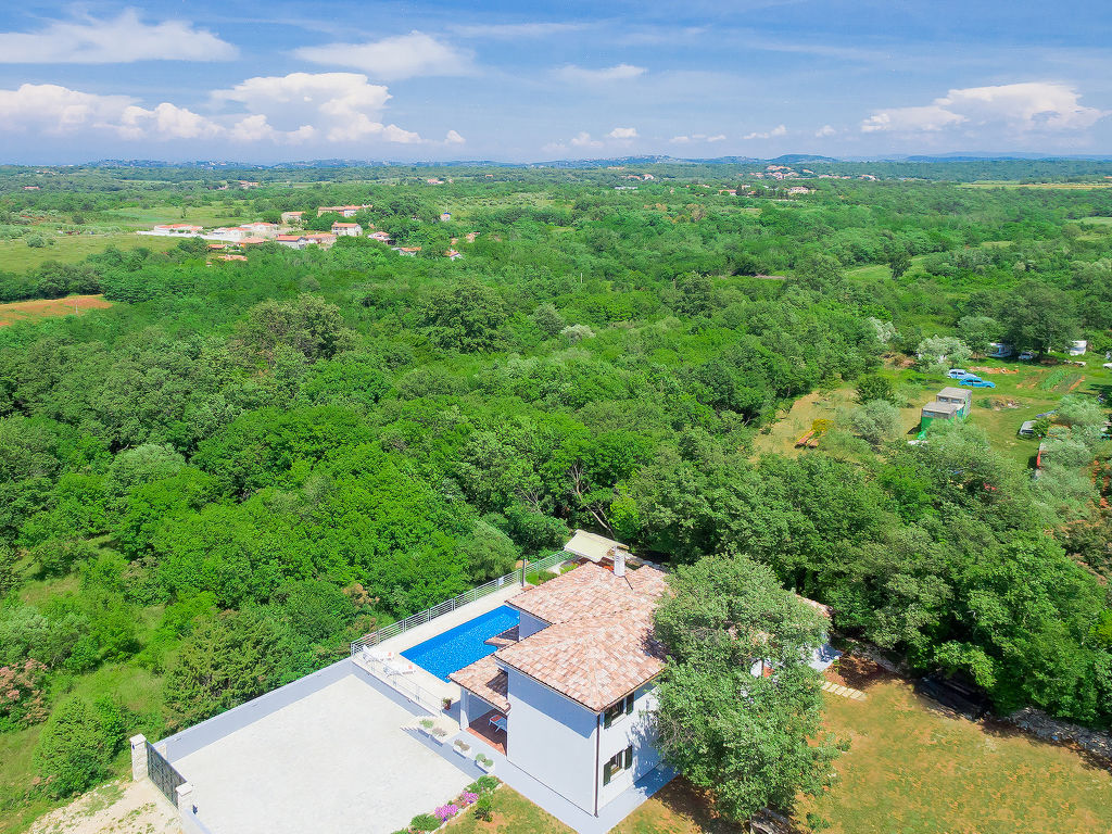 Murine: Einfamilienhaus "Fratrici", auf 2 Stockwerken. Im Weiler Fratrici, 1 km vom Zentrum von Murine, 2.5 km vom Zentrum von Umag, ruhige, sonnige Lage, 2.5 km vom Meer, 2.5 km vom Strand, in einer Sackgasse. Zur Alleinbenutzung: Grundstück 1'700 m2 (eingezäunt), Garten mit Rasen und Pflanzen, Schwimmbad eckig (8 x 4 m, 100 - 140 cm tief, 27.04.-26.10.) mit Innentreppe. Aussendusche, Gartenmöbel, Grill (Schaukel). Im Hause: Internetzugang, Waschmaschine. Parkplatz (für 3 Autos) beim Haus auf dem Grundstück. Einkaufsgeschäft, Restaurant 500 m, Kieselstrand 2.5 km, Felsstrand 2.5 km. Tennis 2.5 km, Wanderwege ab Haus, Radweg 200 m.