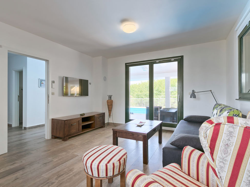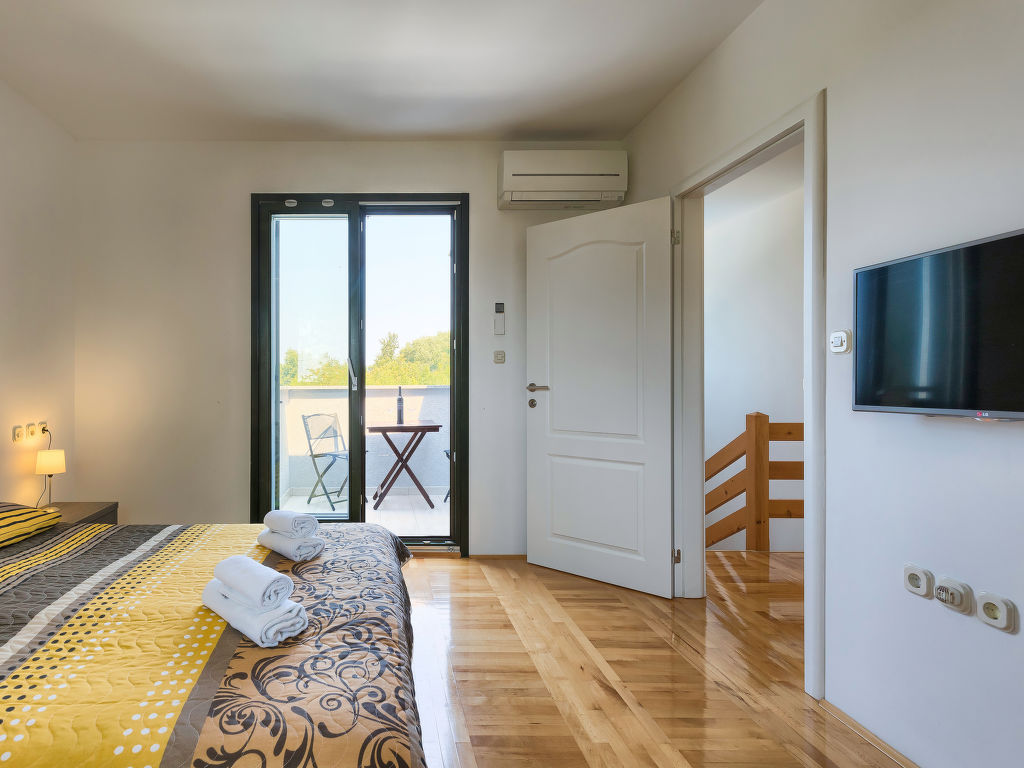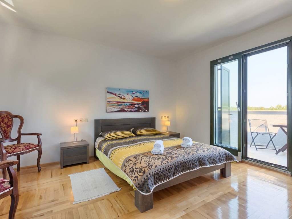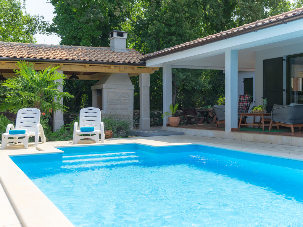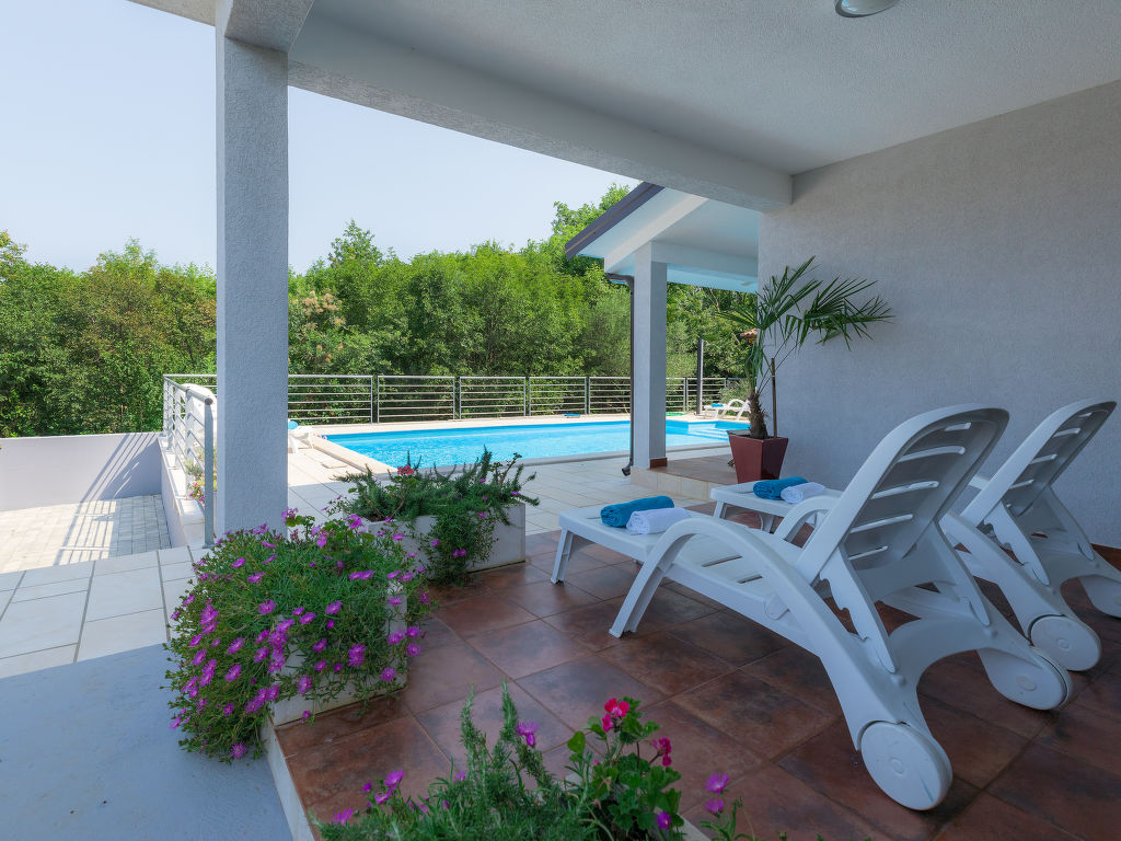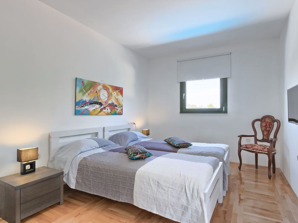 Murine: Einfamilienhaus "Fratrici", auf 2 Stockwerken. Im Weiler Fratrici, 1 km vom Zentrum von Murine, 2.5 km vom Zentrum von Umag, ruhige, sonnige Lage, 2.5 km vom Meer, 2.5 km vom Strand, in einer Sackgasse. Zur Alleinbenutzung: Grundstück 1'700 m2 (eingezäunt), Garten mit Rasen und Pflanzen, Schwimmbad eckig (8 x 4 m, 100 - 140 cm tief, 27.04.-26.10.) mit Innentreppe. Aussendusche, Gartenmöbel, Grill (Schaukel). Im Hause: Internetzugang, Waschmaschine. Parkplatz (für 3 Autos) beim Haus auf dem Grundstück. Einkaufsgeschäft, Restaurant 500 m, Kieselstrand 2.5 km, Felsstrand 2.5 km. Tennis 2.5 km, Wanderwege ab Haus, Radweg 200 m.