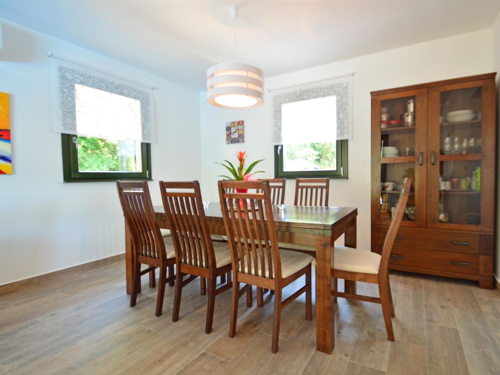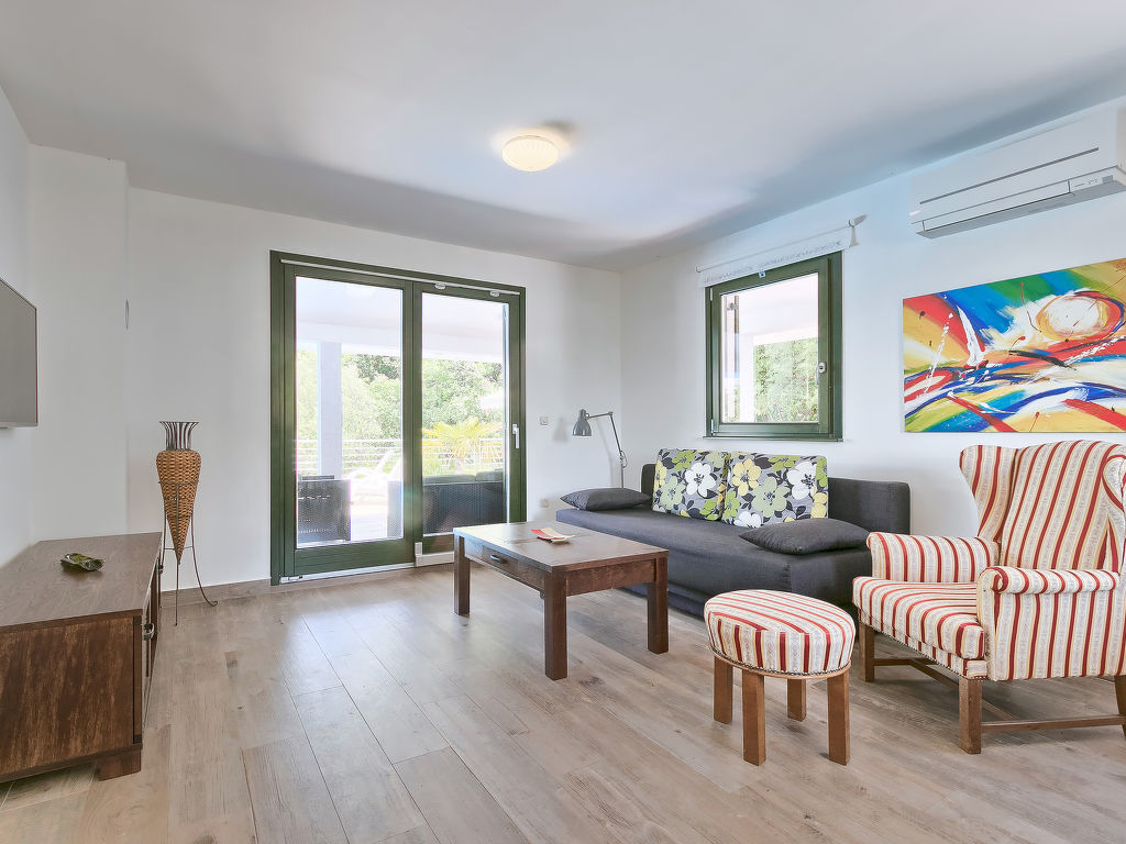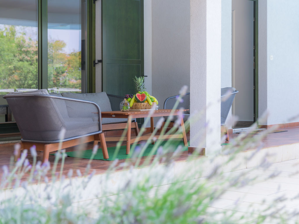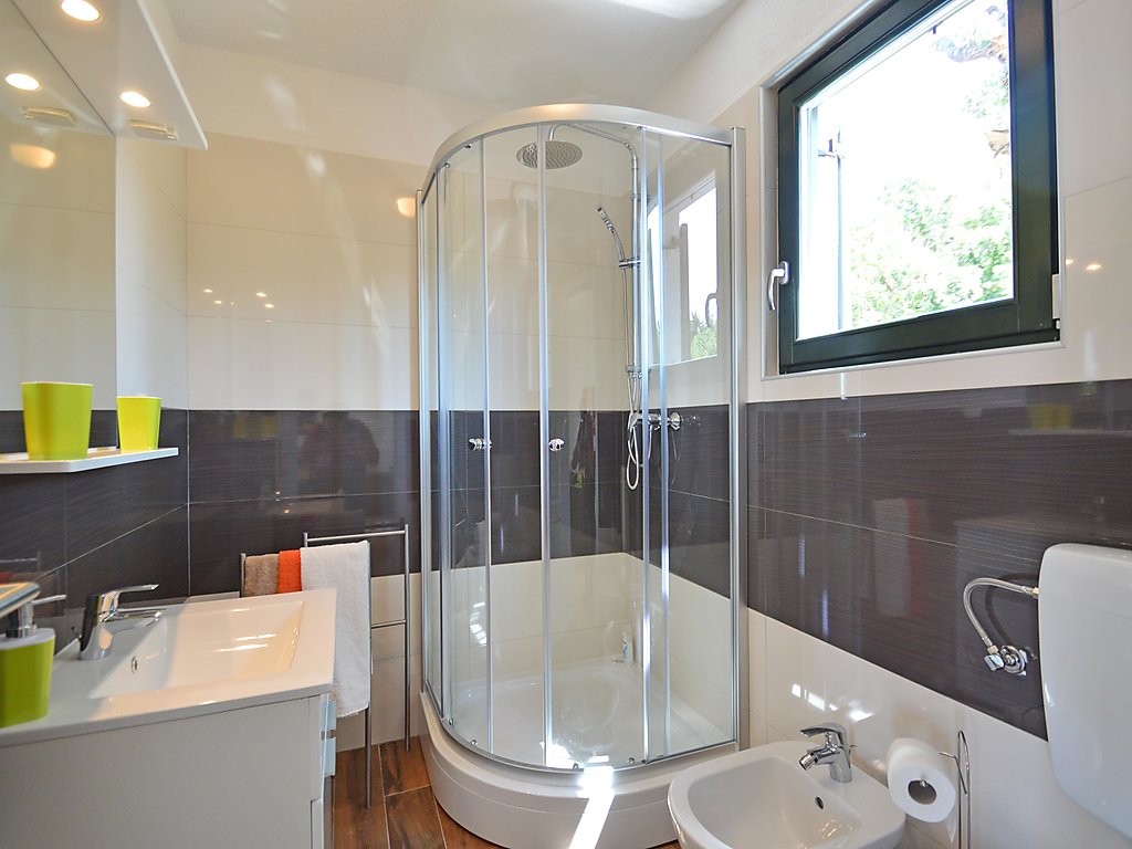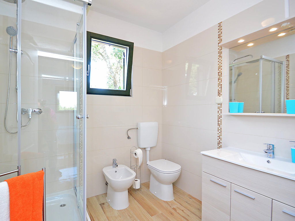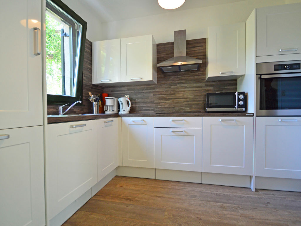 4-Zimmer-Haus 139 m2 auf 2 Stockwerken. Wohn-/Esszimmer mit Sat-TV (Flachbildschirm), Klimaanlage. Ausgang zur Terrasse. 1 Zimmer mit 1 franz. Bett (180 cm, Länge 200 cm), Dusche/Bidet/WC, Sat-TV und Klimaanlage. Ausgang zur Terrasse. Offene Küche (Backofen, Geschirrspüler, 4 Glaskeramikherd Platten, Mikrowelle, Tiefkühler, elektrische Kaffeemaschine). Sep. WC. Obergeschoss: 1 Zimmer mit 1 franz. Bett (160 cm, Länge 200 cm), Dusche/Bidet/WC, Sat-TV und Klimaanlage. Ausgang zur Terrasse. 1 Zimmer mit 1 Doppelbett (2 x 90 cm, Länge 200 cm), Dusche/Bidet/WC, Sat-TV und Klimaanlage. Ausgang zur Terrasse. Terrasse 40 m2, überdacht, Terrasse 10 m2, überdacht. Terrassenmöbel, Liegestühle. Sicht auf das Schwimmbad und den Wald. Zur Verfügung: Safe, Babybett (extra). Internet (Wireless LAN, gratis). 2 Terrassen 6 m2.