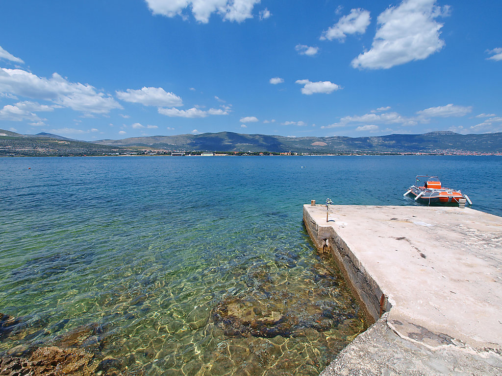 Arbanija (Čiovo) 4 km von Trogir: Mehrfamilienhaus "Mornar". 550 m vom Zentrum von Arbanija, sonnige Lage, 20 m vom Meer, 20 m vom Strand, Strasse zu überqueren, an einer Strasse. Zur Mitbenutzung: Grundstück 466 m2, Schwimmbad eckig beheizt (7 x 3 m, 24 m2, 126 - 176 cm tief, saisonale Verfügbarkeit: 01.Apr.-15.Okt.) mit Innentreppe. Terrasse (30 m2), Grill. Im Hause: Internetzugang. Zur Verfügung: Boot (extra). Parkplatz beim Haus auf dem Grundstück. Einkaufsgeschäft, Restaurant 550 m, Kieselstrand, Felsstrand, betonierter Strand 20 m. Bitte beachten: private Bootsanlegestelle (extra) auf Anfrage. Motorboot des Hausbesitzers kann gemietet werden (auf Anfrage, extra). Bitte beachten: Lizenz erforderlich.