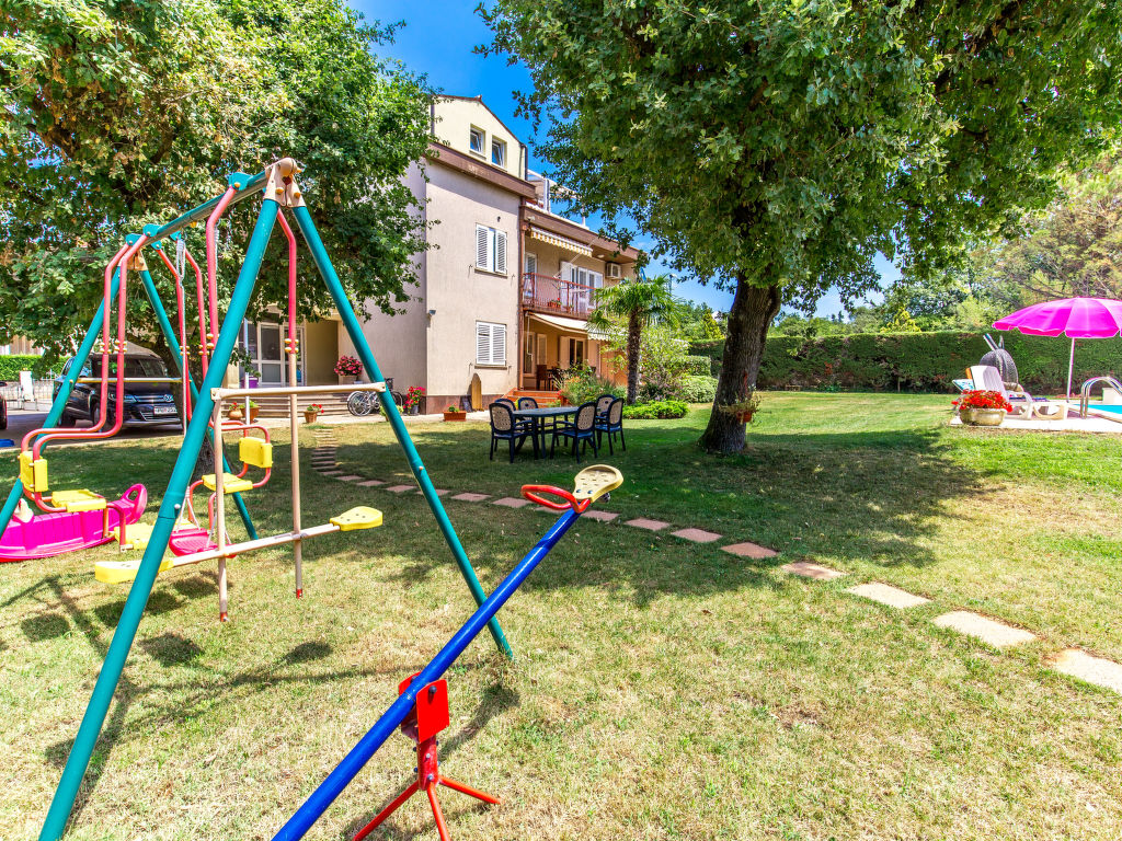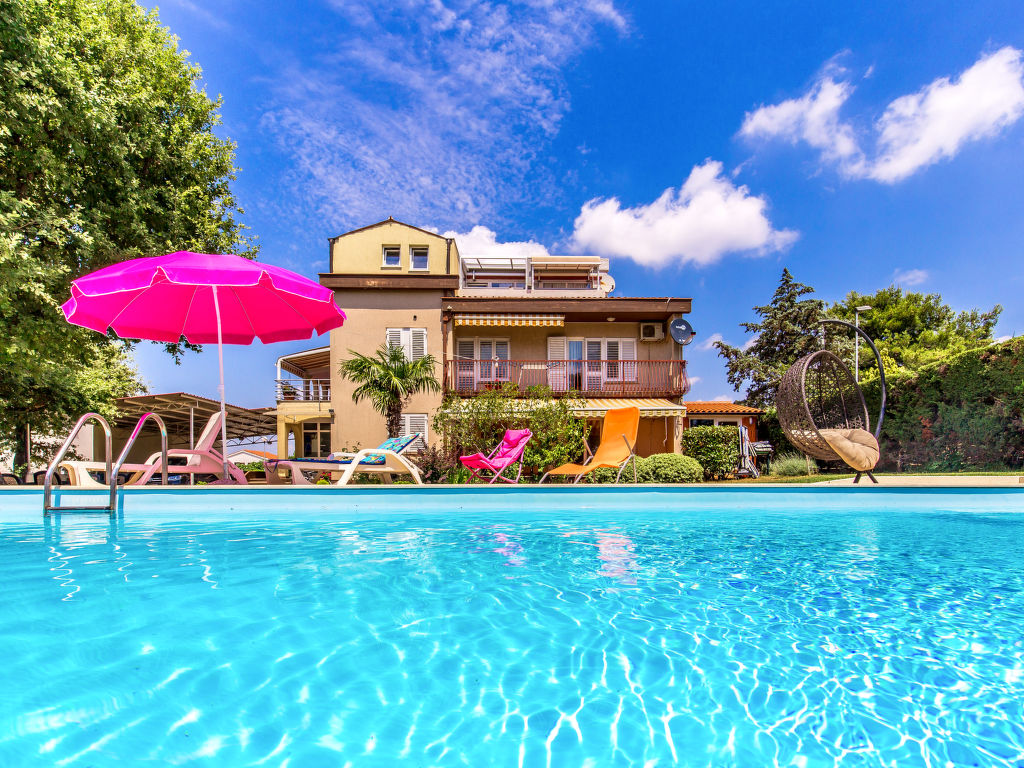 Schönes Dreifamilienhaus "Silva". 350 m vom Zentrum von Peroj, 2 km vom Zentrum von Fažana, sonnige Lage, 800 m vom Meer, 800 m vom Strand. Zur Mitbenutzung: Grundstück 1'000 m2 (eingezäunt). Zur Alleinbenutzung: schöner Garten 600 m2 mit Rasen und Pflanzen, Schwimmbad eckig (10 x 5 m, 140 cm tief, 27.04.-12.10.) mit Innentreppe. Aussendusche, Gartenmöbel (Schaukel). Im Hause: Internetzugang. Zur Verfügung: Fahrräder (3). Parkplatz (überdacht) beim Haus auf dem Grundstück. Einkaufsgeschäft 300 m, Restaurant 500 m, Kieselstrand, Felsstrand 800 m. Golfplatz 2 km, Tennis 3 km, Reitstall 3 km, Wanderwege ab Haus 500 m, Radweg 550 m. Nahe gelegene Sehenswürdigkeiten: NP Brijuni 2 km, Amphitheater 13 km.