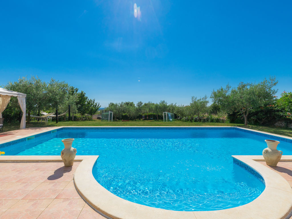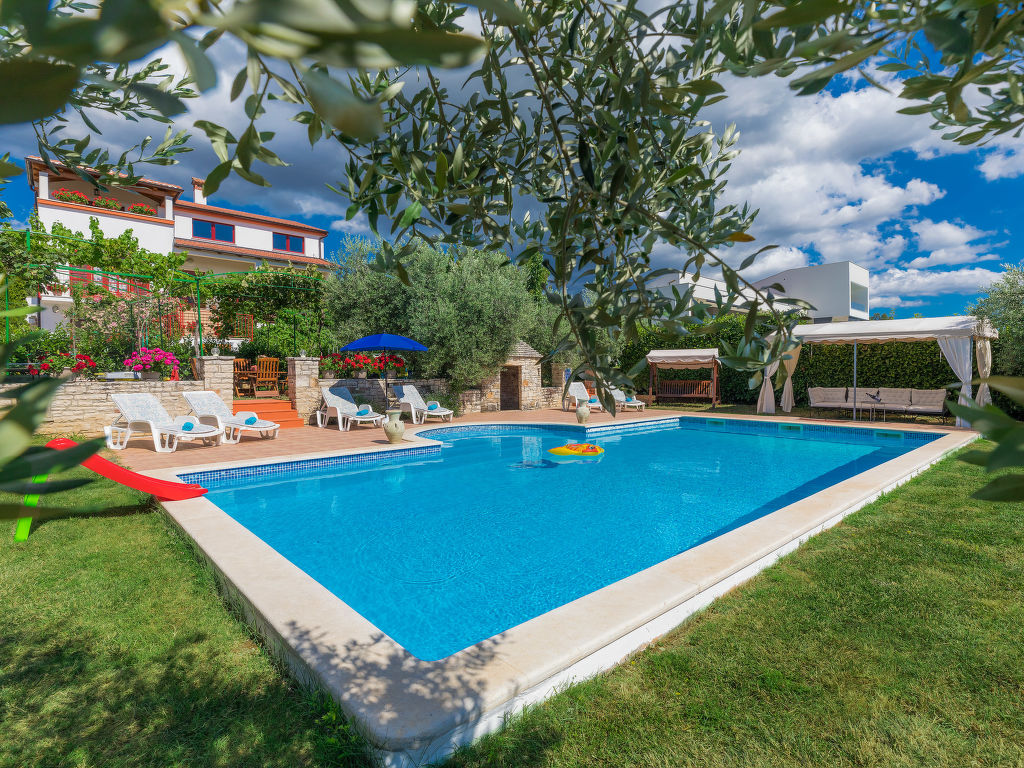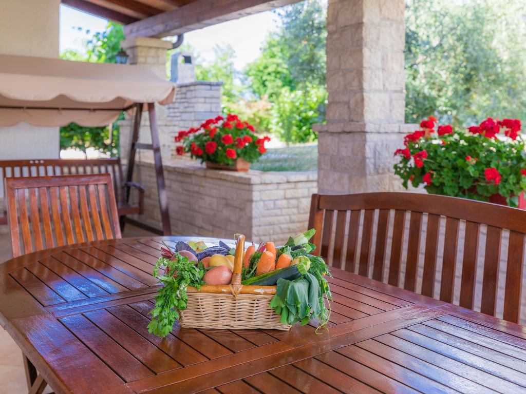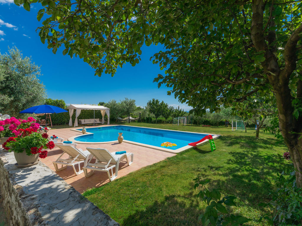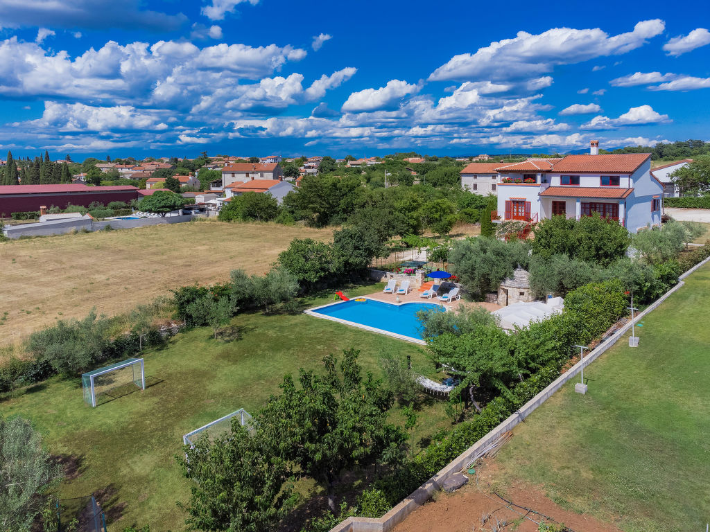 Mehrfamilienhaus "Ivan & Tina". 500 m vom Zentrum von Kanfanar, 17 km vom Zentrum von Rovinj, 17 km vom Meer. Zur Mitbenutzung: Grundstück 3'000 m2 mit Rasen und Bäumen, Schwimmbad eckig (10 x 5 m, 135 cm tief, saisonale Verfügbarkeit: 01.Mai.-02.Okt.) mit Innentreppe. Aussendusche, Tischtennis, Boccia, Volleyball, Badminton, Laube, Terrasse, Gartenmöbel, Grill (Rutschbahn, Schaukel, Sandkasten). Im Hause: Internetzugang, Tischfussball, Trampolin, Einstellraum für Fahrräder. Parkplatz auf dem Grundstück. Einkaufsgeschäft 400 m, Kieselstrand 17 km. Nahe gelegene Sehenswürdigkeiten: Lim valley 6 km. Der Besitzer organisiert Angeltouren und Bootsausflüge und vermietet ein Boot (Bezahlung und Absprache vor Ort).