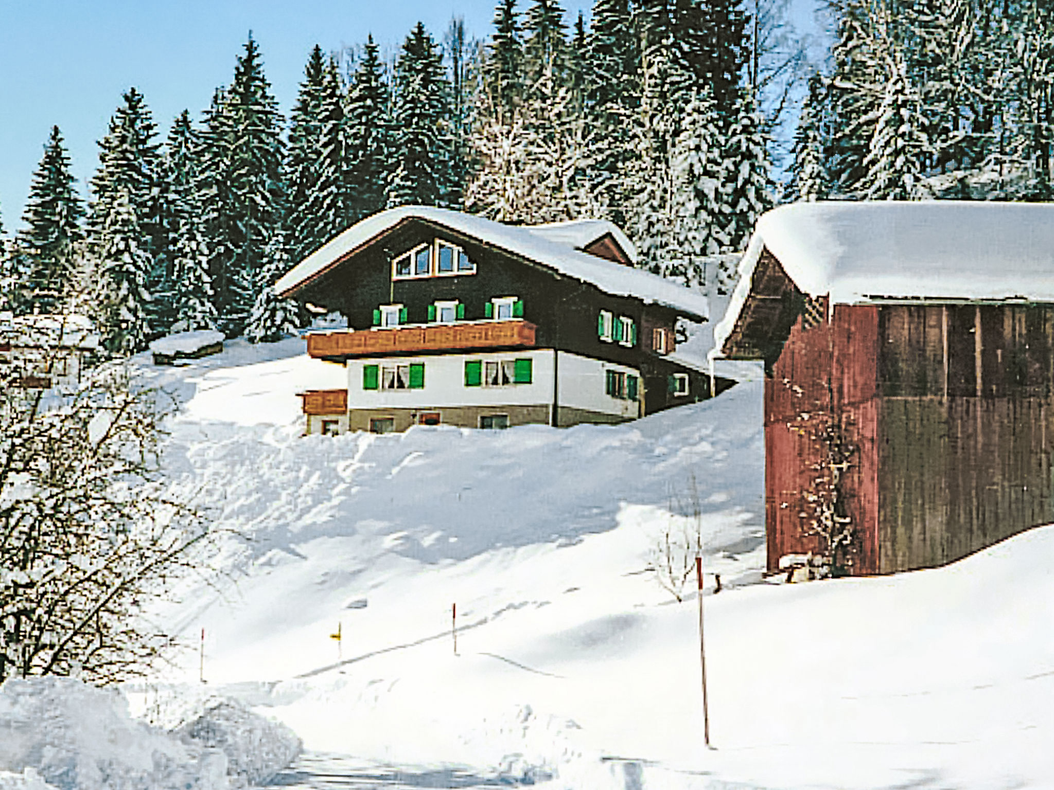Bartholomäberg 4 km von Schruns: Zweifamilienhaus "Mangeng", 1'000 m.ü.M.. 5.5 km vom Zentrum, ruhige, sonnige Lage, direkt am Waldrand. Zur Mitbenutzung: Sitzplatz, Gartenmöbel. Im Hause: Zentralheizung. Im Winter bitte Schneeketten mitbringen. Parkplatz. Lebensmittelgeschäft 2.5 km, Restaurant 2.5 km, Freibad 5.5 km, Hallenbad 5.5 km. Tennis 2.5 km, Gondelbahn 5.5 km, Skibushaltestelle 2.5 km, Langlaufloipe 5.5 km. Bekannte Skigebiete sind gut erreichbar: Silvretta Montafon 5.5 km, Golm 6 km. Bitte beachten: Fahrzeug empfohlen.