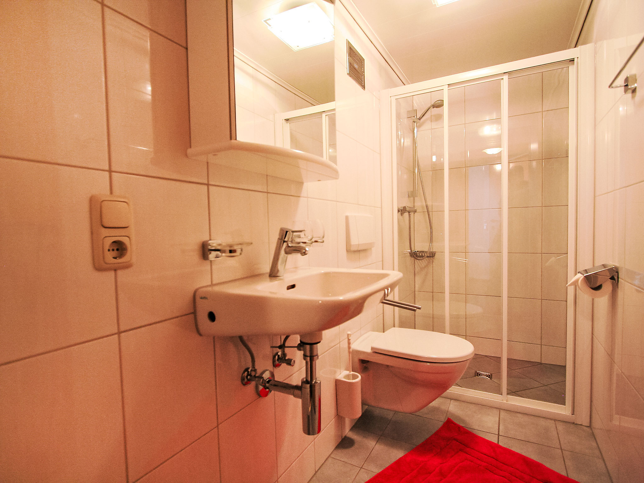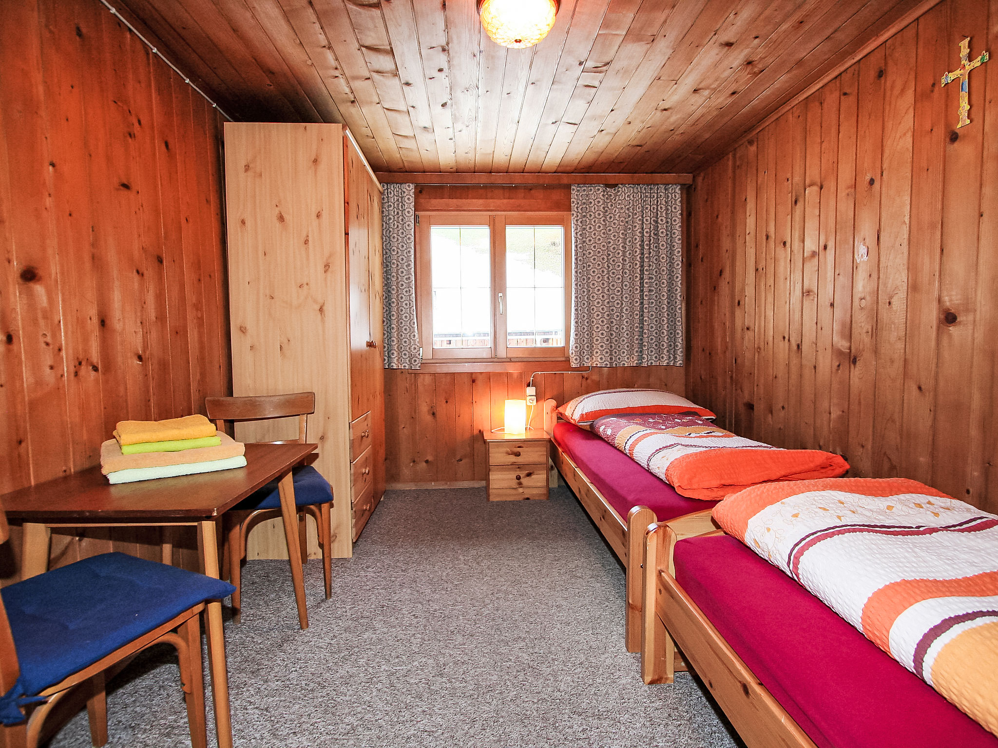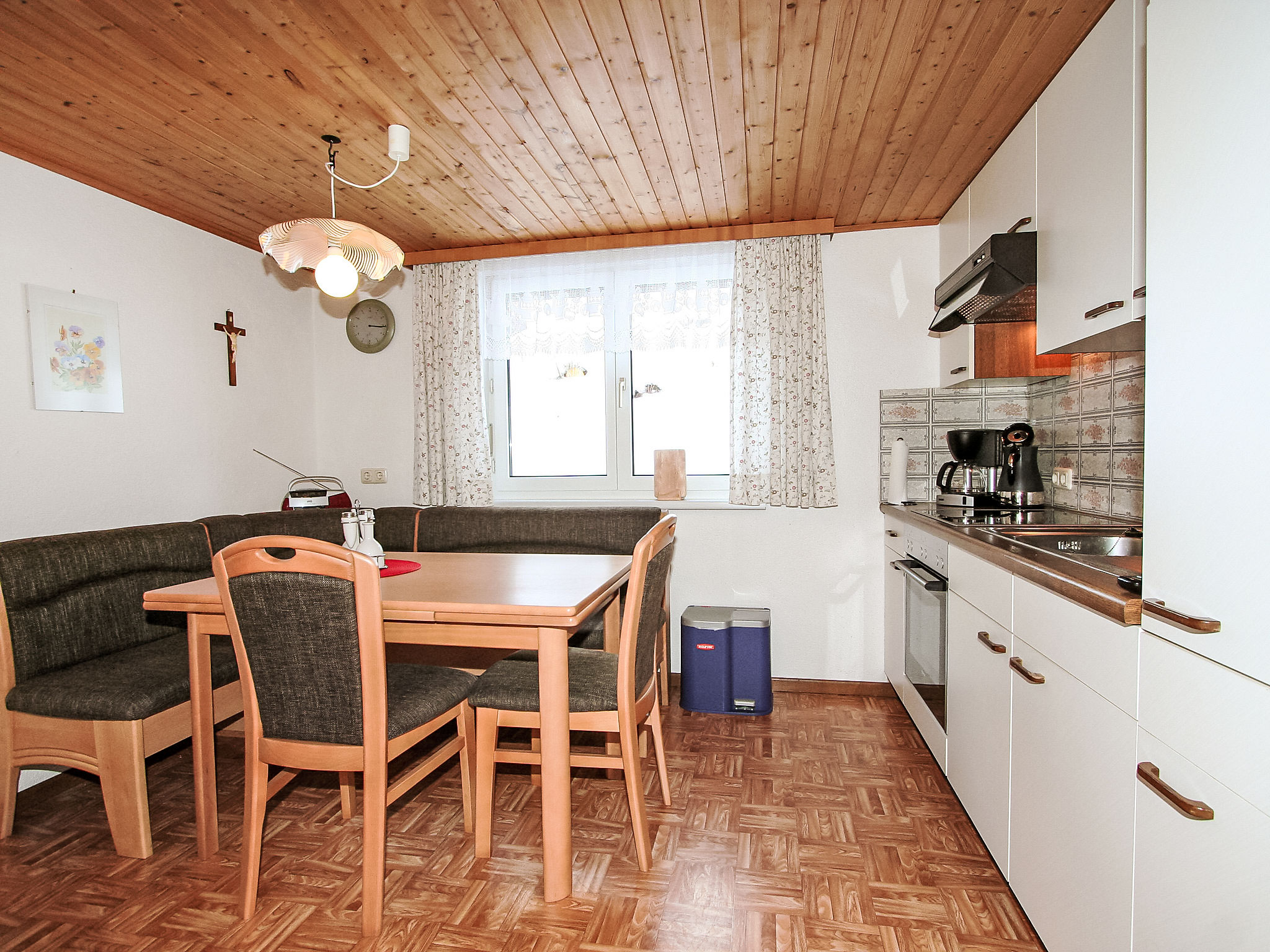 3-Zimmer-Wohnung 45 m2 im 1. Stock. 1 Doppelzimmer. 1 Zimmer mit 2 Betten. Wohnküche (Backofen, 4 Glaskeramikherd Platten) mit Essecke und Sat-TV (Flachbildschirm), Radio. Dusche/WC. Zur Verfügung: Internet (Wireless LAN, extra). Ein kleiner Balkon zur Alleinbenutzung ist über den Hausgang erreichbar.