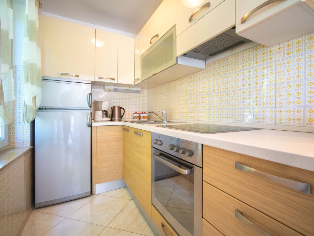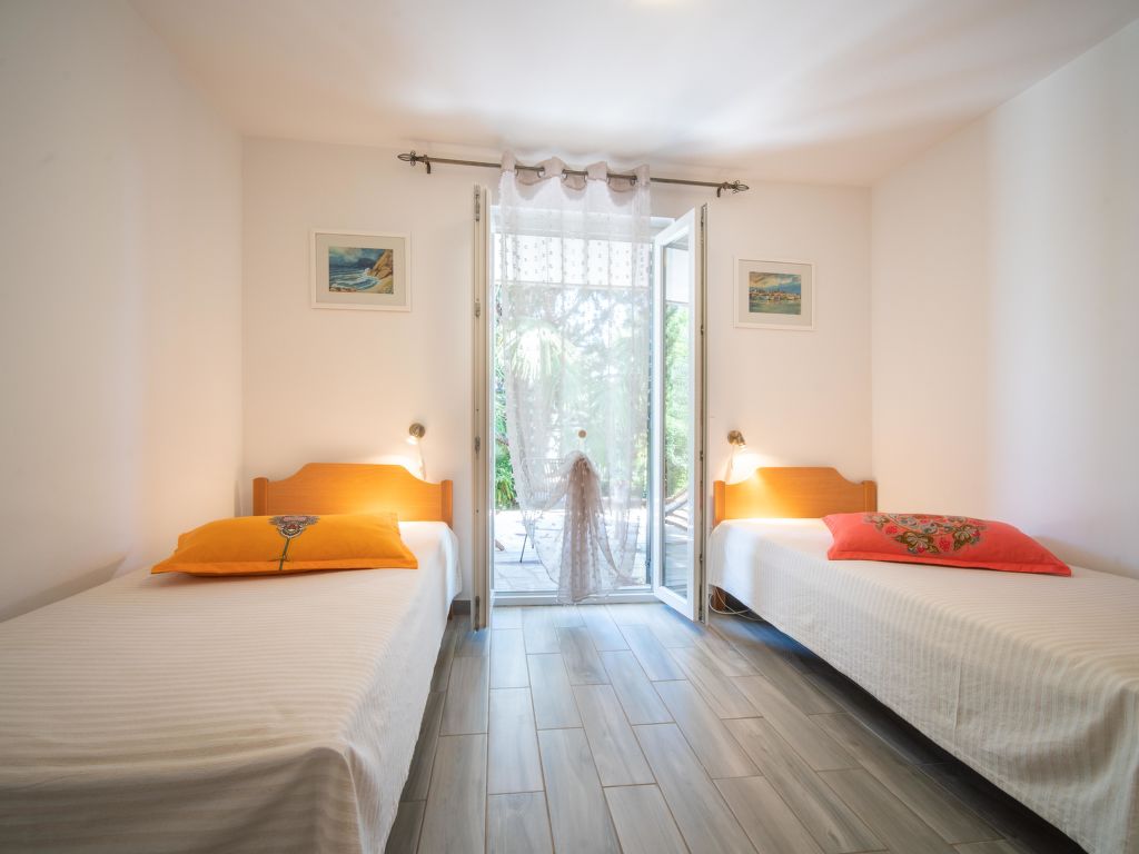 Doppelhaus "Vesna", auf 2 Stockwerken, umgeben von Bäumen. 700 m vom Zentrum, ruhige, erhöhte Lage, 120 m vom Meer, 120 m vom Strand, im Grünen, Richtung Süden. Zur Alleinbenutzung: Grundstück (eingezäunt) mit Pflanzen und Bäumen, Naturgarten. Aussendusche, Grill, Parkplatz beim Haus auf dem Grundstück. Einkaufsgeschäft, Restaurant 700 m, Café, Kieselstrand 400 m, Felsstrand 120 m, Strandbad 400 m.