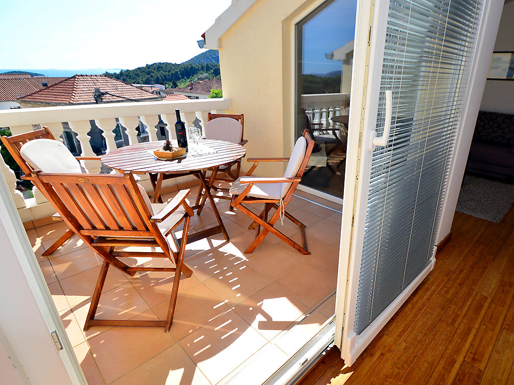 3-Zimmer-Wohnung 60 m2. Abgeschrägt, modern und gemütlich eingerichtet: Dachgeschoss: Wohn-/Esszimmer, Deckenhöhe 160 - 260 cm mit 1 Diwanbett, Sat-TV, Flachbildschirm, DVD und Klimaanlage. Ausgang zur Terrasse. 1 Zimmer, Deckenhöhe 160 - 260 cm mit 1 franz. Bett (160 cm, Länge 200 cm). 1 Zimmer, Deckenhöhe 160 - 260 cm mit 2 Betten (90 cm, Länge 200 cm). Offene Küche (Geschirrspüler, 2 Glaskeramikherd Platten, Mikrowelle, Tiefkühler) mit Klimaanlage. Dusche/WC. Klimaanlage (extra). Terrasse 8 m2. Terrassenmöbel. Sicht auf das Meer. Zur Verfügung: Waschmaschine, Safe. Internet (Wireless LAN, gratis).