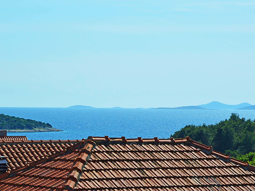 Sovlje 5 km von Vodice: Dreifamilienhaus "Cvita". Ruhige, sonnige, erhöhte Lage, 300 m vom Meer, 300 m vom Strand. Zur Mitbenutzung: Grundstück 680 m2 (eingezäunt). Gartenmöbel, Grill, Kinderspielplatz (Schaukel, Sandkasten). Im Hause: Internetzugang. Parkplatz beim Haus auf dem Grundstück. Einkaufsgeschäft 1.5 km, Restaurant, Café 80 m, Kieselstrand, betonierter Strand 300 m.