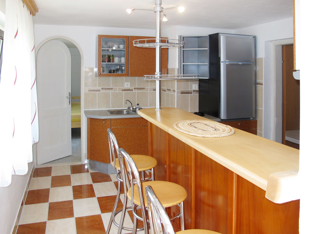 Mehrfamilienhaus "Rovanjska". 300 m vom Zentrum von Rovanjska, 8 km vom Zentrum von Starigrad-Paklenica, am Hang, 10 m vom Meer, 10 m vom Strand, in einer Sackgasse. Zur Mitbenutzung: Grundstück 500 m2, Pflanzen und Bäumen. Aussendusche, Grill. Im Hause: Internetzugang. Öffentliche Parkplätze auf der Strasse. Einkaufsgeschäft 300 m, Felsstrand 10 m.